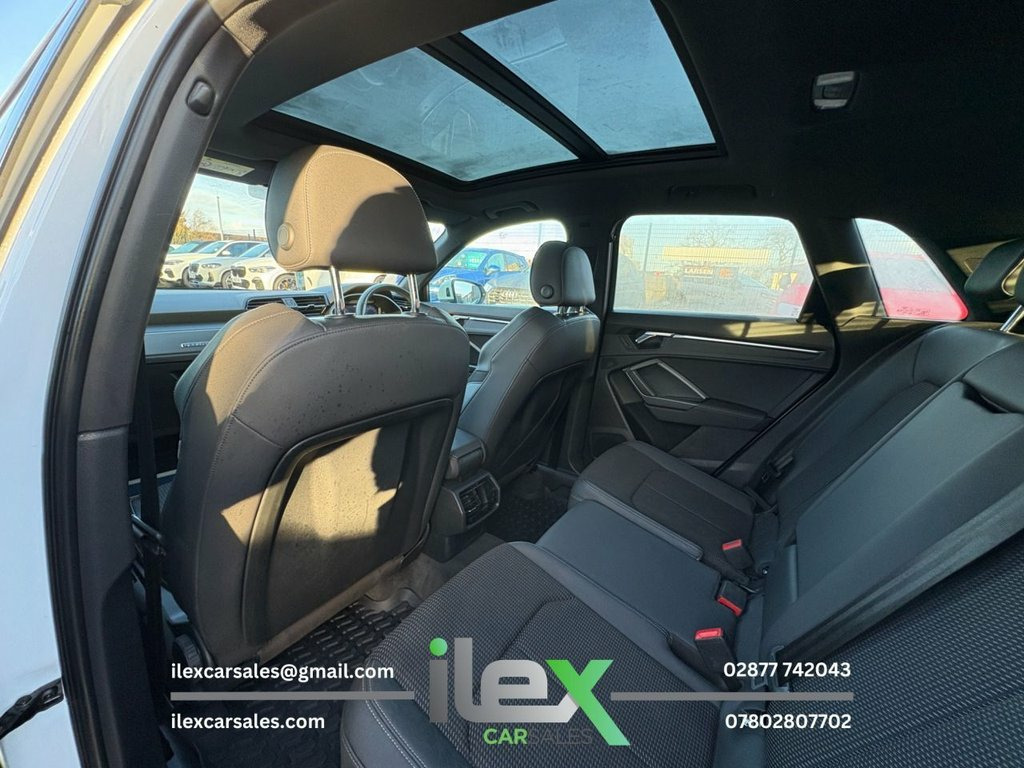 2019 Audi Q3 2.0 TDI 40 S line S Tronic quattro A premium compact SUV finished in White, combining Audi's sharp S line styling, smooth S Tronic automatic gearbox, and sure-footed quattro all-wheel drive. Practical, powerful and packed with modern tech — a superb all-rounder. Highlights: 2.0 TDI Diesel | S Tronic Automatic | quattro AWD 190PS | 80,899 Miles S line Styling Pack | Sport Suspension Audi Virtual Cockpit (10.25") MMI Navigation Plus with 10.1" Touchscreen Wireless Apple CarPlay | Audi Smartphone Interface Dual-Zone Climate Control Power Tailgate LED Headlights with Dynamic Rear Indicators Rear Parking Sensors | Cruise Control Privacy Glass | 19" S line Alloys Price: £17,995 Finance & Warranty Options Available Part-Exchange Welcome Ilex Car Sales 416 Ballyquin Road, Dungiven, Derry, BT47 4NQ 02877 742043 | 07802 807702 www.ilexcarsales.co.uk – View all available stock 1 x USB-C and 1 x USB-A Port with Charge, 19in Alloy Wheels - 5-Twin-Spoke Dynamic, 3-Spoke Leather Multi-Function Steering , 6 Passive Loud Speakers, 6-Airbag System, Adjustable Rear Seat Bench-Backrest with, Aluminium Look Interior Elements, Aluminium Roof Rails, Aluminium Window Trims, Ambient Lighting Pack, Anti Theft Locking Wheel Bolts, Anti-Theft Alarm, Audi Connect Infotainment Services Plus , Audi Connect Safety and Service - e-call, Audi Drive Select, Audi Pre-Sense Front with Pedestrian and, Audi Side Assist, Audi Smartphone Interface Includes Wirel, Audi Virtual Cockpit - 10.25in Display, Auto Dimming and Frameless Rear View Mir, B and C-Pillar Trim in High-Gloss Black, Bluetooth