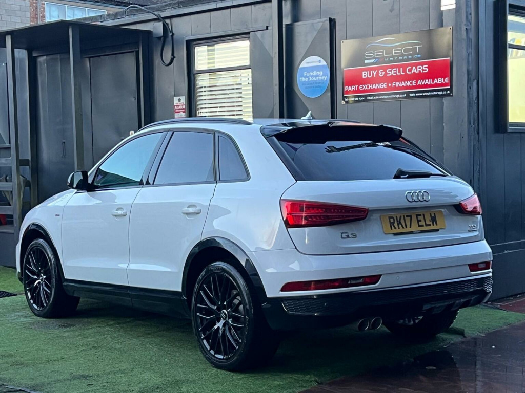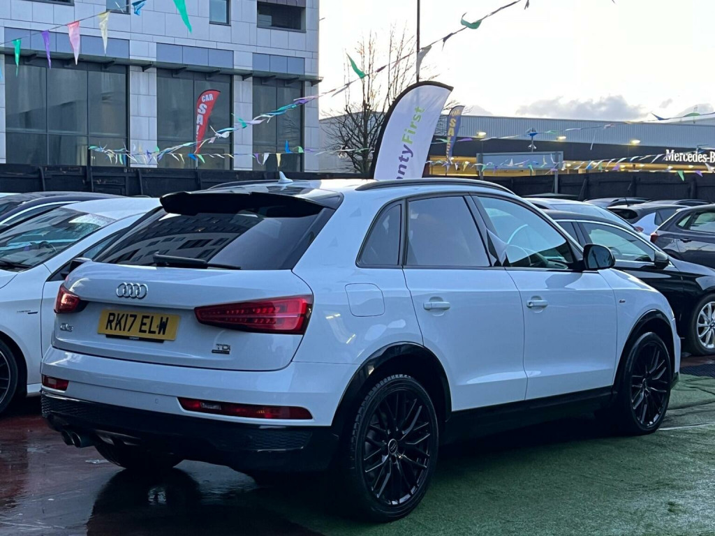 SELECT MOTORS (GB) IS DELIGHTED TO OFFER YOU THIS STUNNING AUDI Q3 2.0 TDI BLACK EDITION 5DR IN WHITE COLOUR AND COMPLEMENTED WITH 19IN 10 Y SPOKE SPOKE DESIGN ALLOY WHEELS. THIS VEHICLE HAS A HUGE SPECIFICATION WHICH INCLUDES THE FOLLOWING; SATELLITE NAVIGATION SYSTEM, FRONT AND REAR PARKING SENSORS, BLUETOOTH CONNECTIVITY FOR PHONE AND MEDIA, DAB-FM/AM RADIO, BOSE SURROUND SOUND SYSTEM, 6.5IN DISPLAY SCREEN COLOUR, AUDI DRIVER SELECT, POWER OPERATED TAILGATE, CRUISE CONTROL, USB CONNECTION, TYRE PRESSURE WARNING SYSTEM. THIS VEHICLE IS ULEZ EXEMPT. WE ARE OFFERING NATIONWIDE DELIVERY ON ALL VEHICLE (PLEASE GET IN TOUCH DIRECTLY FOR DETAILS). WE CAN ALSO CONDUCT VIRTUAL VIEWINGS AND ACCOMMODATE ANY REQUESTS YOU MAY HAVE. ALL OUR ADVERTISED STOCK IS TEST-DRIVEN, INSPECTED BY OUR MECHANIC TO MAKE SURE OUR CUSTOMERS DRIVE AWAY WITH THE BEST QUALITY CARS. WE CAN PROVIDE A VIDEO WALK AROUND THIS VEHICLE UPON REQUEST. ALL OF OUR VEHICLES ARE SUPPLIED WITH A 3 MONTHS WARRANTY WITH EXTENDED OPTION. 12 MONTHS FREE AA BREAKDOWN COVER. FINANCE AVAILABLE.