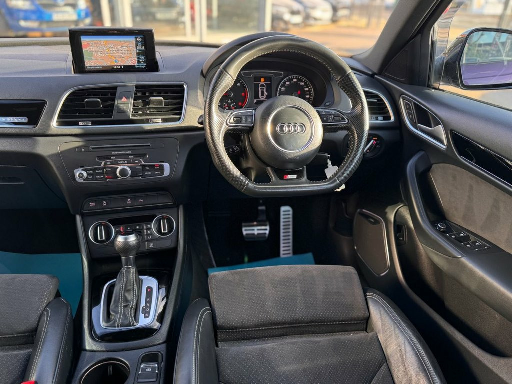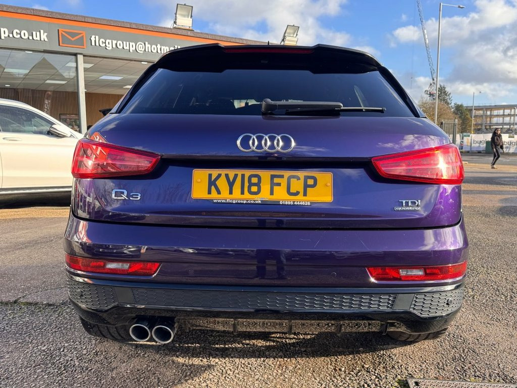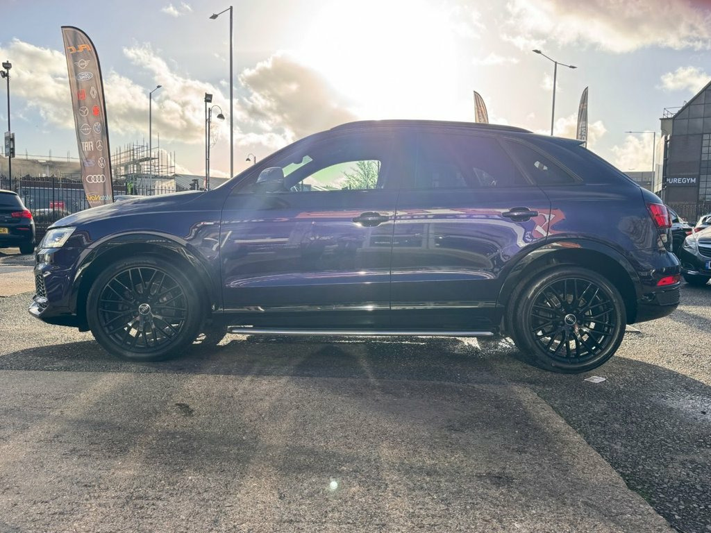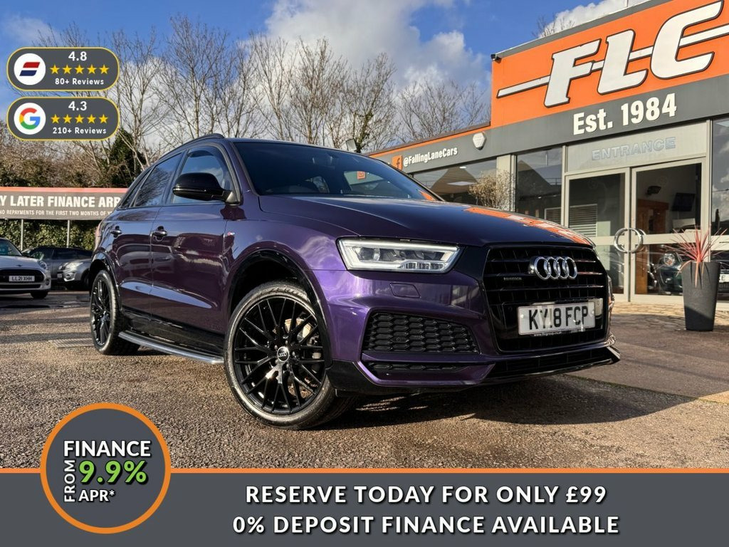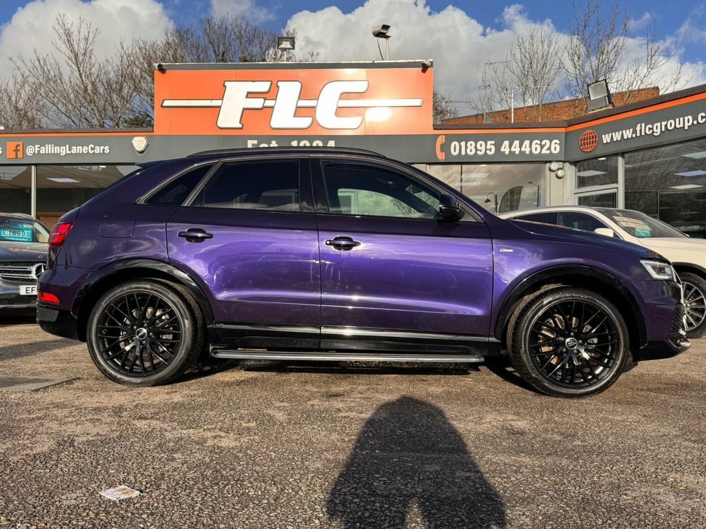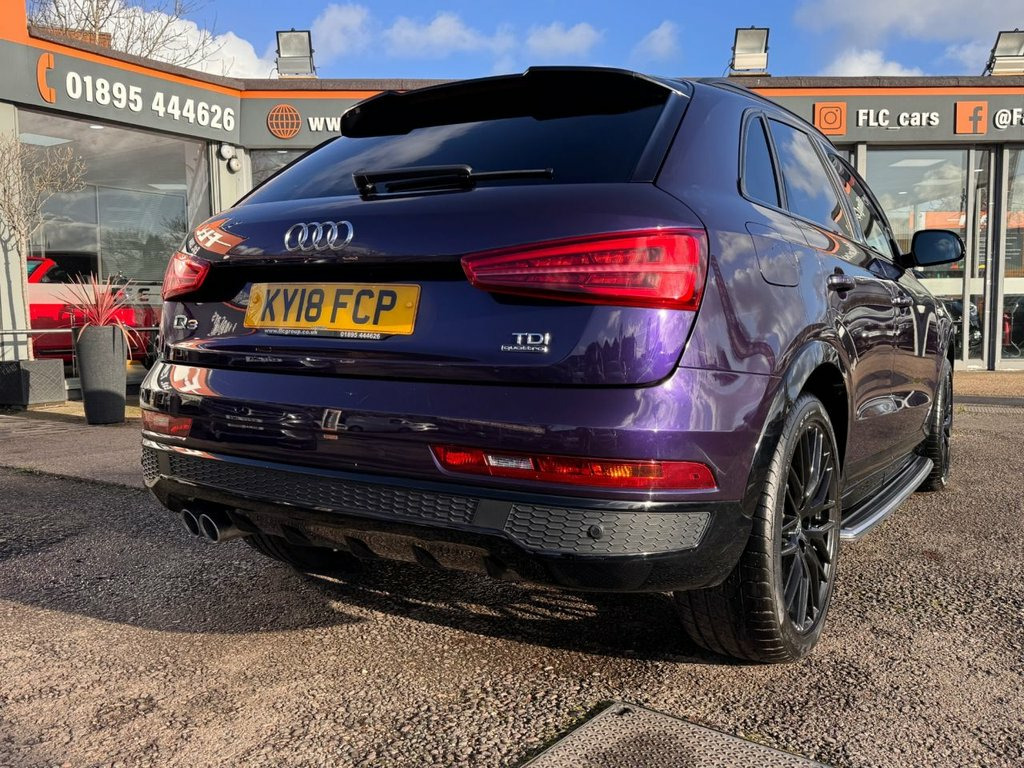 FLC is proud to present this Audi Q3 Black Edition, a refined SUV that blends sophistication with practicality. Finished in the standout Velvet Purple and set on 19" 10-Y-Spoke Gloss Black Alloy Wheels, this Q3 commands presence with its sleek styling, bold stance, and black styling pack. This example is in excellent overall condition, supported by 7 Audi Service records - recently carried out at 68,831 miles, a valid MOT until December 2026 - no advisories, and displaying only minor age-related blemishes. Inside, the interior reflects Audi's reputation for quality and comfort. Featuring Sat Nav, BOSE Sound System, Dual-Zone Climate Control, Rear Parking Sensors, Auto Headlights with Headlight Washers, Bluetooth, Electric Windows & Mirrors, it offers a well-equipped, modern cabin that combines practicality with premium touches. Every detail — from the leather-trimmed flat-bottom steering wheel to the power tailgate and ambient lighting — enhances the sense of quality and convenience. Smooth, composed and enjoyable whether in town or on the motorway, this Q3 delivers a confident and refined driving experience. Its quattro drive and premium build quality offer reassurance and comfort, making it an excellent choice for drivers wanting versatility, performance, and everyday usability. All part exchanges considered – contact FLC today to arrange a viewing. Velvet Purple, Perforated Alcantara-Leather - Sports Se, Satellite Navigation System - SD Card Ba, Voice Control System, 19in Alloy Wheels - 10-Y-Spoke Design - , 6.5in Colour Display Screen, BOSE Surround Sound System, Audi Parking System Plus, Black Roof Rails, 4-Way Electric Lumbar Support for Front , AMI - Audi Music Interface, Cruise Control, Privacy Glass, S Line Sports Suspension, S Line Badges on Front Wings, Black Styling Pack with Black Roof Rails, Inlays - Piano Finish - Black, Bluetooth Interface, Flat-Bottomed 3-Spoke Perforated Leather, Full Body-colour Paint Finish with Front, Power Operated Tailgate, Anti Theft Locking Wheel Bolts, Gloss Black Door Mirrors, Anti-Theft Alarm,
