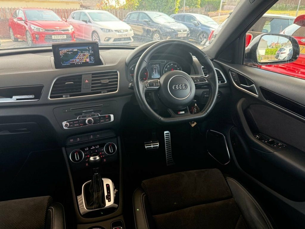 2017 Audi Q3 Black Edition 2.0 TDI Quattro. The Black Edition trim enhances its appeal, and you'll enjoy the premium BOSE Surround Sound System for an immersive audio experience. Comfort is assured with Dual Zone Electronic Climate Control, and the advanced LED headlights with dynamic rear indicators provide excellent visibility. Convenience features include a Light and Rain Sensor for automatic headlight activation and a Bluetooth interface for seamless phone connectivity. This Audi Q3 stands out with its impressive fuel economy, achieving a highlight of 51 miles per gallon, which indicates it is more economical than many similar vehicles. Furthermore, its acceleration from 0 to 60 miles per hour in just 7.9 seconds demonstrates a strong performance that surpasses many in its class. These highlights, combined with the comprehensive features and the reputable Audi brand, make this Q3 TDI Black Edition a compelling choice for those seeking a blend of style, performance, and efficiency. 19in Alloy Wheels - 10-Y-Spoke Design - , 4-Way Electric Lumbar Support for Front , 6.5in Colour Display Screen, AMI - Audi Music Interface, Anti Theft Locking Wheel Bolts, Anti-Theft Alarm, Audi Drive Select, Audi Parking System Plus, Auto-Dimming Rear-View Mirror, BOSE Surround Sound System, Black Roof Rails, Black Styling Pack with Black Roof Rails, Bluetooth Interface, Chrome-Plated Trims for Exhaust Tailpipe, Cloth Headlining in Black, Concert Radio, Cruise Control, DAB Digital Radio, Door Mirrors - Heated-Electrically Adjus, Driver - Front Passenger - Front Side an, Drivers Information System - DIS - 3.5in, Dual-Zone Electronic Climate Control, ESC - Electronic Stabilisation Control i,