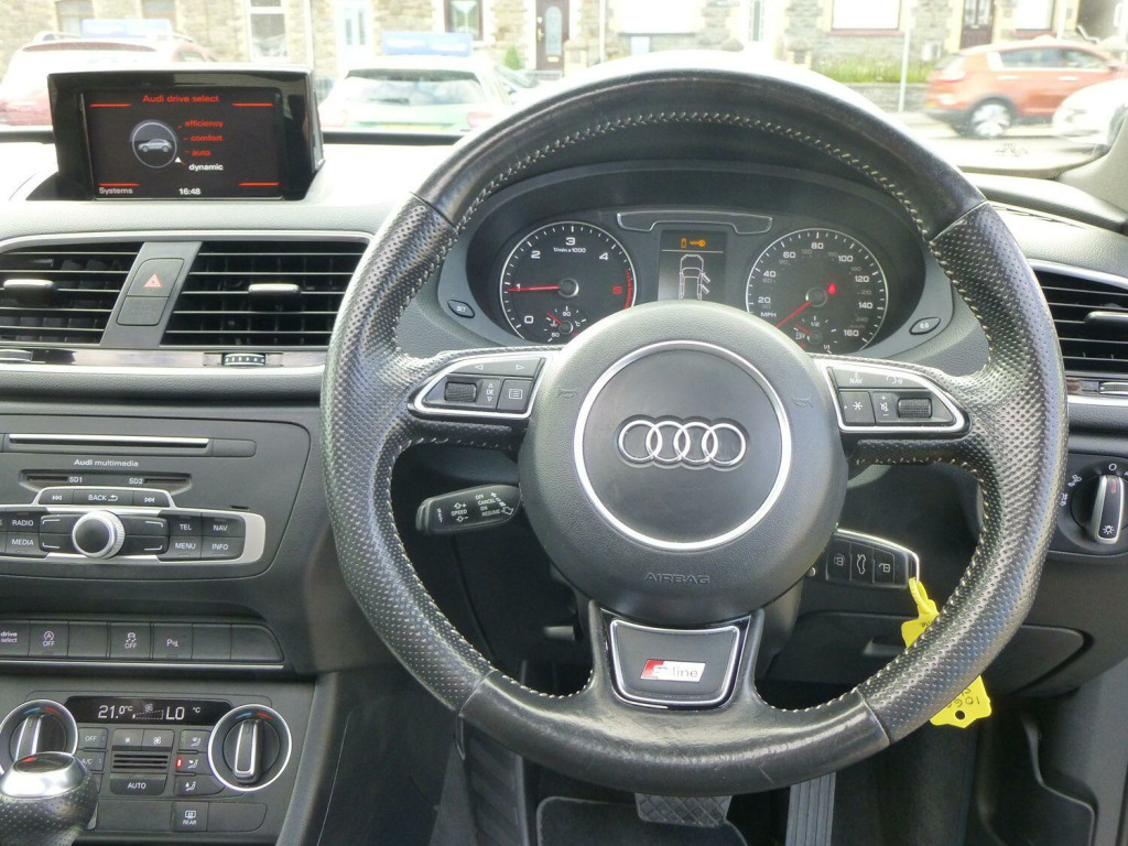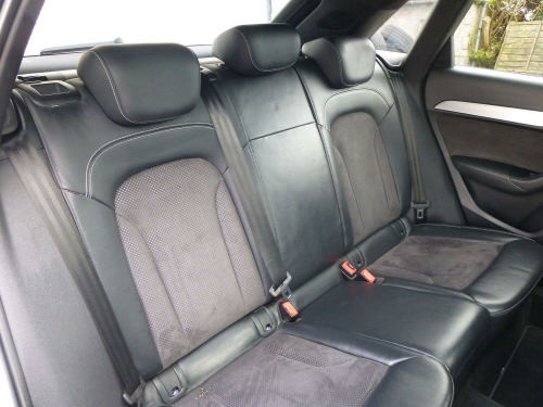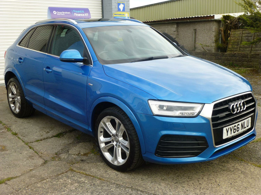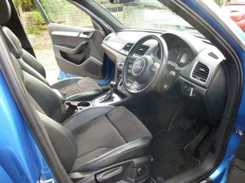 audi q3 2.0 tdi 150 bhp s-line edition euro6 ulez compliant 7 spd s-tronic automatic transmission,Bluetooth Interface,Concert Radio,DAB Digital Radio,sd card Satellite Navigation System,Towbar Preparation,6.5 inch colour Display Screen,meridian 3d surround system with 8 Passive Speakers,[AMI] Audi Music Interface,Cruise Control,[dis] Drivers Information System,Efficiency Program in the Drivers Information System,Tyre Pressure Loss Indicator,Voice Control System,Audi Drive Select,Audi Parking System Plus,Electrically Adjustable folding and Heated mirrors with Integrated LED Indicator Signals,Chrome-Plated Trims for Exhaust System,Electric Windows Front and Rear,Fog Lights with Chrome Surrounds,Full body Colour Finish on Bumpers and Wheel Arch Trims-Lower Door Trims,Heated Windscreen Washer Jets,Privacy Glass,S-Line Badges on Front Wings,S-Line Body Styling,S-Line Radiator Grille with Horizontal Struts in High-Gloss Black,Windscreen with Sunband,19 inch Alloy Wheels 5 Double-Spoke Off-Road Design,Aluminium Roof Rails,Aluminium Window Trims,Front and Rear Fog Lights,Headlight Washer System,LED Tail Lights,Light and Rain Sensor,All Weather LED Headlights,Auto-Dimming Rear-View Mirror,Cloth Headlining and Dashboard in Black,Door Sill Trims with S Line Logo,Dual Zone Electronic Climate Control,Front Centre Armrest,leather and alcantara Front Sports Seats,Gear Knob in Perforated Leather,Matt Brushed Aluminium,Power Operated tailgate, ,Reversible Luggage Compartment Floor,Split Folding Rear Backrest,Stainless Steel Loading Sill Protector,3 Spoke Multi-Function Q Design Steering Wheel,4 Way Electric Lumbar Support for Front Seats,Dynamic Suspension,Electromechanical Power Steering Speed-Sensitive Provides a Precise Steering Feel at High Speeds and Excellent Assistance when Parking.[ESP] Electronic Stability Programme,[epb] Electromechanical Parking Brake,Front Passenger Airbag Deactivation Switch,ISOFIX Child Seat Mounting,Remote Central Locking [2xkeys] Thatcham Category 1 Alarm and Immobiliser 106,000 miles with service history,7 spd s-tronic automatic transmission,fully colour coded in stunning audi [lx5l] utopia blue pearl metallic, , , , , , , , , , , , hpi report available on all vehicles,