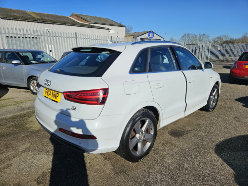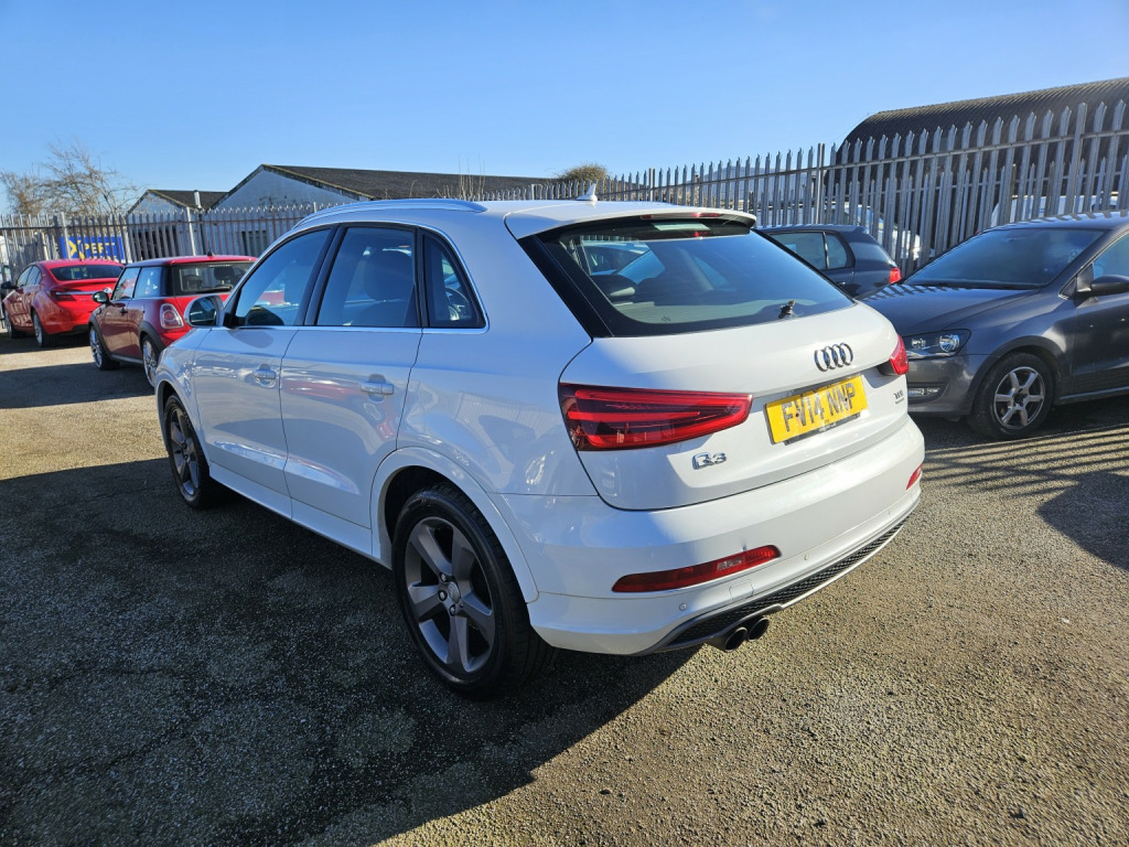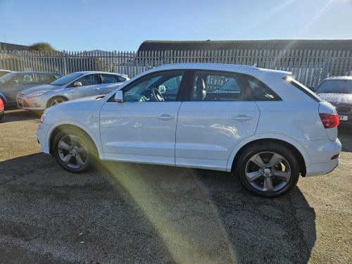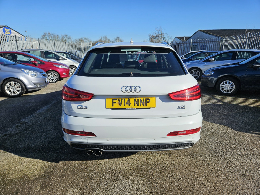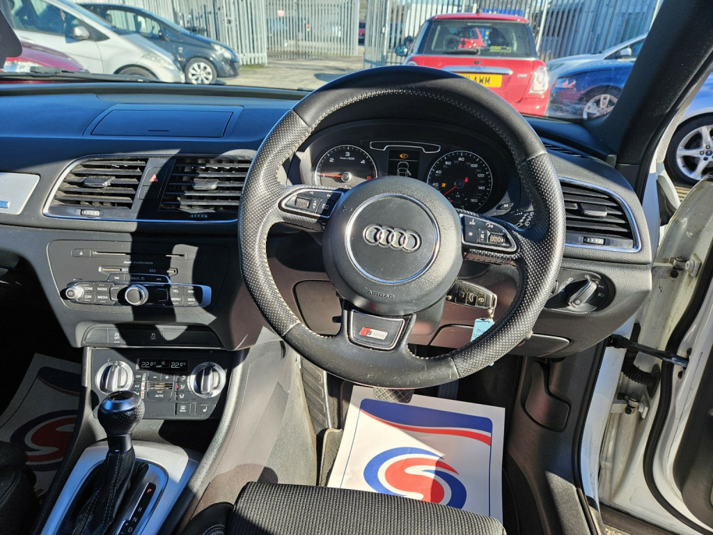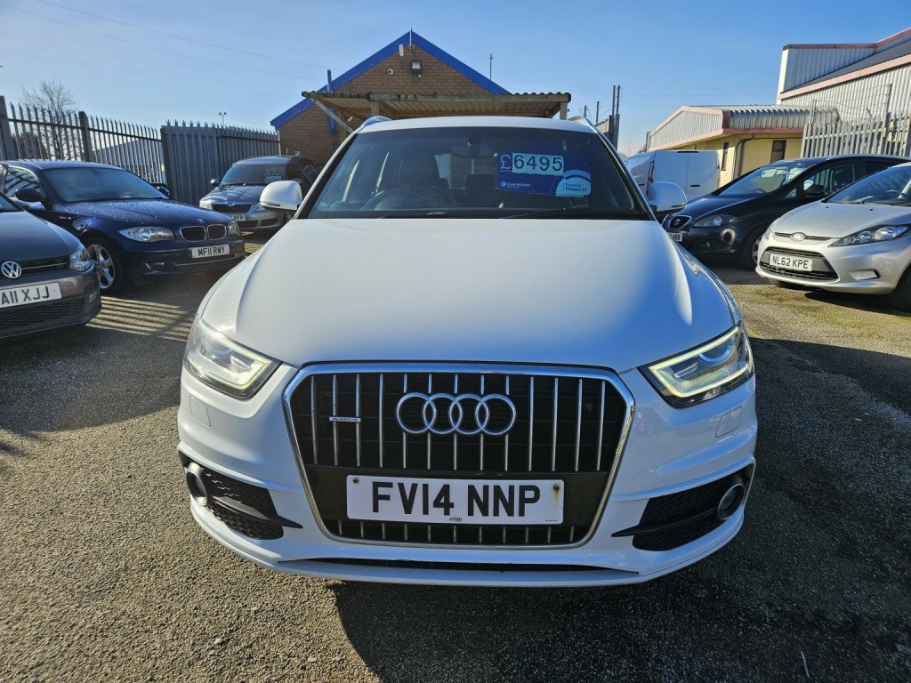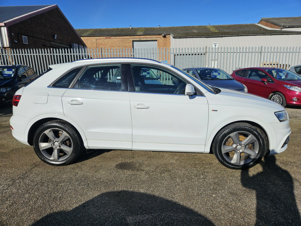 2014 AUDI Q3 S-LINE TDI AUTOMATIC , 2.0 DIESEL IN WHITE, WILL COME FRESHLY SERVICED AND WITH A NEW MOT, DRIVES FLAWLESSLY. 2 KEYS, REMOTE CENTRAL LOCKING, POWER STEERING,, ELECTRIC WINDOWS, ELECTRIC HEATED MIRRORS,, HALF LEATHER HEATED FRONT SEATS,, AIR CONDITIONING, DUAL CLIMATE CONTROL,, CD PLAYER, STEREO RADIO, USB INPUT,, BLUETOOTH PHONE CONNECTIVITY,, MULTI FUNCTION STEERING WHEEL, , REVERSE PARKING SENSORS, ALLOY WHEELS. , WE WILL NEVER CONTACT YOU TO ASK FOR A DEPOSIT OR UPFRONT PAYMENT FOR A DISCOUNT. IF YOU RECEIVE SUCH AN EMAIL, PLEASE DELETE IMMEDIATELY EVEN IF IT SAYS IT IS FROM TAYLORS AUTOS. THERE IS CURRENTLY A SCAM ACTIVE TRYING TO FOOL PEOPLE.