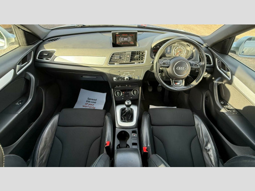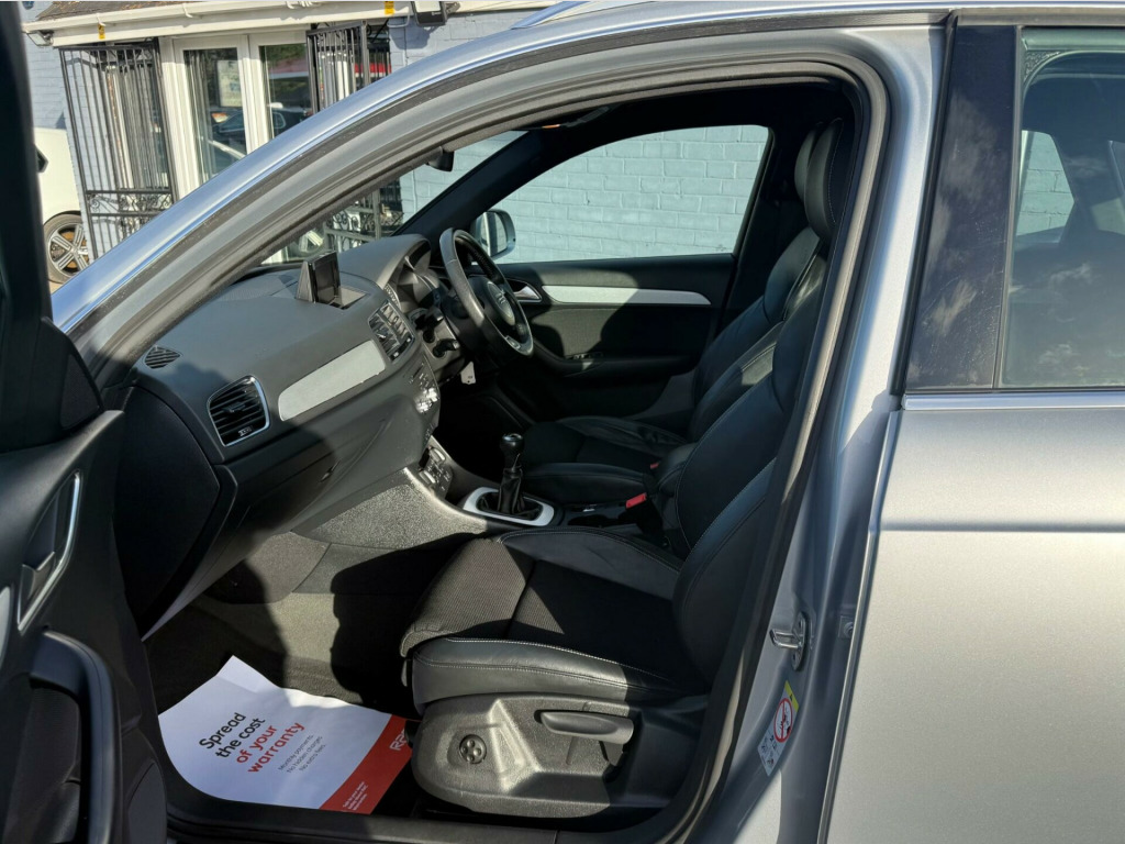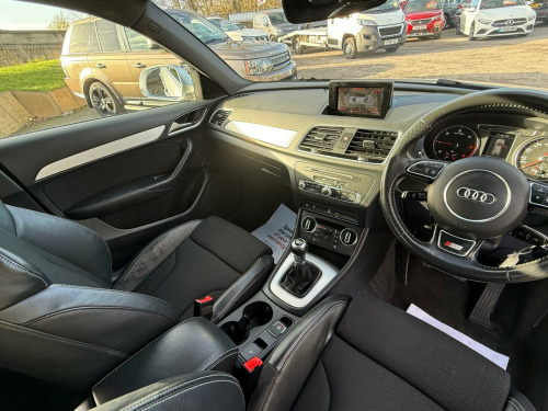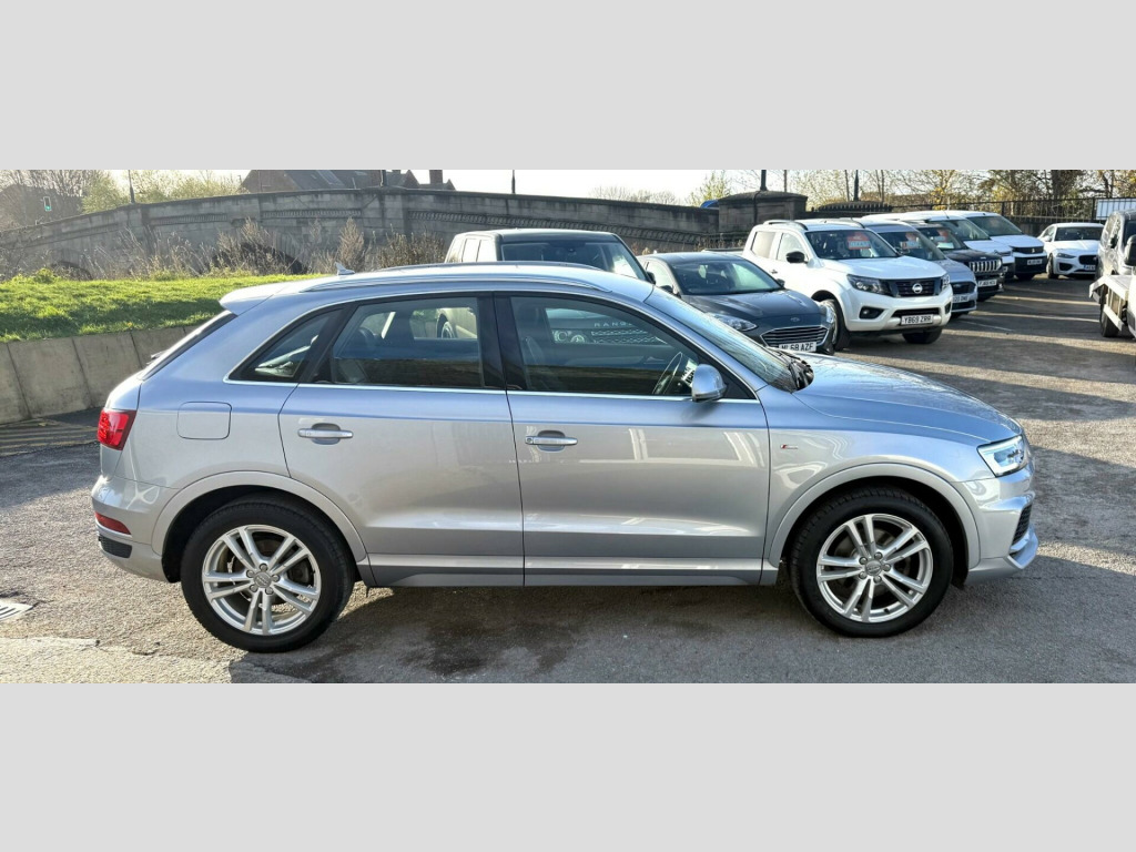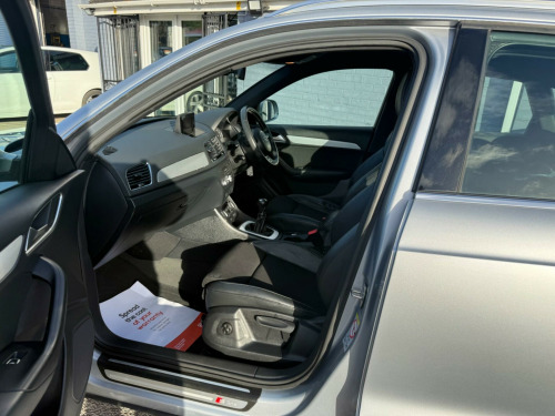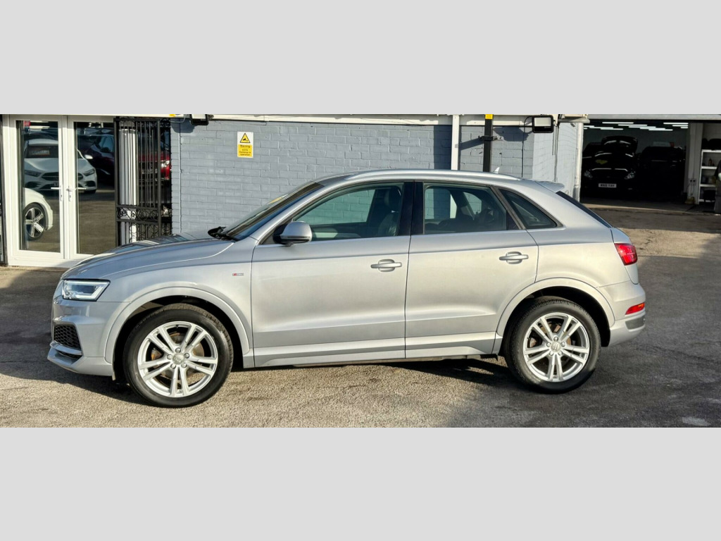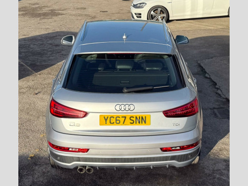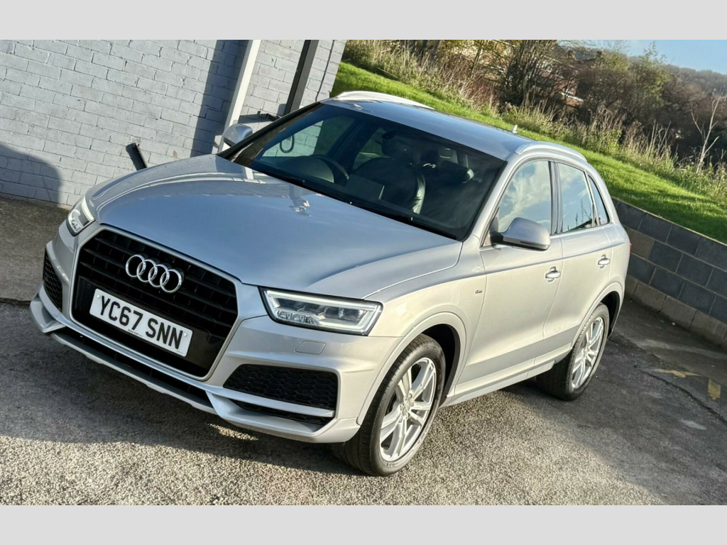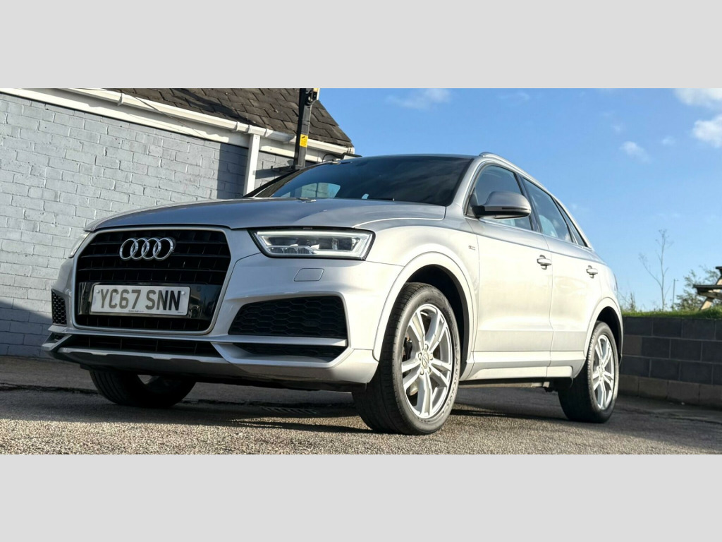 This 2017 Audi Q3 TDI S line Edition is a superb example, having been owned by only one careful keeper. This desirable compact SUV boasts a 2.0 litre diesel engine, meeting Euro 6 emission standards, and comes in the sporty S line Edition trim. You'll appreciate the convenience of the Light and Rain Sensor, which automatically activates the headlights, and the All Weather LED Headlights for enhanced visibility. Stay connected with the integrated Bluetooth Interface, and enjoy a comfortable cabin thanks to the Dual-Zone Electronic Climate Control. Parking is made effortless with the Audi Parking System Plus, featuring sensors at both the front and rear.This Audi Q3 stands out with its impressive fuel economy, achieving a remarkable 61 miles per gallon, which indicates it is more economical than many similar vehicles. Furthermore, its low CO2 emissions highlight its efficiency and environmental consideration. These factors combine to make this Q3 a practical and appealing choice for those seeking a premium compact SUV with excellent running costs and a refined driving experience. in alloy wheels - 5-twin-spoke design partly polished, 4-way electric lumbar support for front seats, 6.5in colour display screen, 8 passive speakers, ami - audi music interface, all weather led headlights, aluminium roof rails, aluminium window trims, anti theft locking wheel bolts, audi drive select, audi parking system plus, auto-dimming rear-view mirror, bluetooth interface, body coloured door mirrors, chrome-plated trims for exhaust tailpipes, cloth headlining and dashboard in black, concert radio, cruise control, dab digital radio, door mirrors - heated-electrically adjustable-folding, door sill trims with s line logo, driver - front passenger - front side and head airbag system, drivers information system - dis, dual-zone electronic climate control, dynamic suspension, efficiency program in the drivers information system - dis, electric windows - front and rear, electromechanical parking brake, electromechanical power steering - speed-sensitive provides a precise steering feel at high speeds and excellent assistance when parking., electronic stability programme - esp includes abs-ebd-asr-edl, extendable luggage compartment cover, first aid kit, floor mats - front and rear in velour, front centre armrest, front lip and rear diffuser in full paint finish, front and rear fog lights, full body-colour paint finish, gear knob - perforated leather, heated windscreen washer jets, isofix child seat mounting, inlays - matt brushed aluminium, led tail lights including led dynamic rear indicators, light and rain sensor, power operated tailgate, rear diffuser insert in platinum grey, remote central locking, reversible luggage compartment floor, s line badges on front wings, s line body styling, s line radiator grille with horizontal struts in high-gloss black, satellite navigation system - sd card based, seat belt monitoring, secondary collision brake assist, space saver spare wheel, split-folding rear seats, steering wheel - 3-spoke leather-multifunction-q-design, steering wheel - height and reach adjustable, thatcham category 1 alarm and immobiliser, tool kit and car jack, tow bar bracket preparation, tyre pressure loss indicator, voice control system, warning triangle, washer fluid level indicator, windscreen with sunband