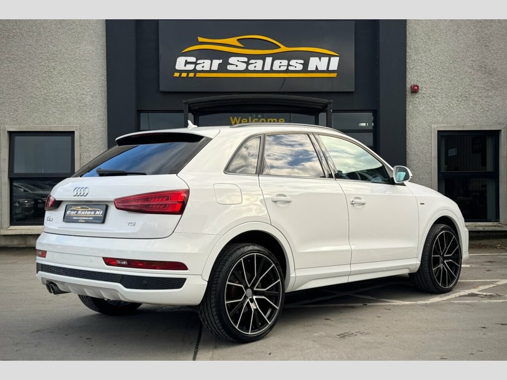 2018 AUDI Q3 S LINE EDITION 2.0 TDI 148 BHP Covered 77k Miles, Finished in White, Key Features include: 20'' Alloy wheels included in price Rear Privacy glass Black Edition Styling Front and Rear Parking sensors Half Leather S Line interior Leather Multifunctional steering wheel Dual Climate control DAB Radio / Bluetooth / Sat Nav ISOFIX Child seat points And so much more...20 Call today to arrange a test drive Tailored finance packages available to suit your needs (Excludes ROI) Comprehensive warranty on all cars Trade ins welcome Delivery to North and South of Ireland if required 18in Alloy Wheels - 5-Twin-Spoke Design , 4-Way Electric Lumbar Support for Front , 6.5in Colour Display Screen, 8 Passive Speakers, AMI - Audi Music Interface, Aluminium Roof Rails, Aluminium Window Trims, Anti Theft Locking Wheel Bolts, Anti-Theft Alarm, Audi Drive Select, Audi Parking System Plus, Auto-Dimming Rear-View Mirror, Bluetooth Interface, Body Coloured Door Mirrors, Chrome-Plated Trims for Exhaust Tailpipe, Cloth Headlining in Black, Concert Radio, Cruise Control, DAB Digital Radio, Door Mirrors - Heated-Electrically Adjus, Door Sill Trims with S Line Logo, Driver - Front Passenger - Front Side an, Drivers Information System - DIS - 3.5in, Dual-Zone Electronic Climate Control, D