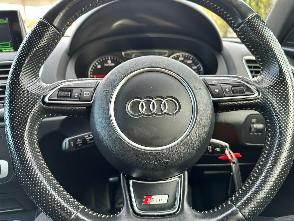 This 2017 Audi Q3 TDI S line Edition boasts a 12 month MOT offering peace of mind for the coming years. This stylish SUV features a robust 2.0 litre diesel engine paired with Audi's renowned four wheel drive system, ensuring confident handling in various conditions. As a Euro 6 compliant vehicle, it meets stringent emission standards. The S line Edition trim enhances its appeal with a sporty aesthetic and a host of practical features, including a Bluetooth interface for seamless connectivity, and a light and rain sensor that automatically activates the headlights. Experience convenience with the All Weather LED Headlights, providing excellent visibility, and the Dual Zone Electronic Climate Control for personalised comfort. Parking is made effortless thanks to the Audi Parking System Plus, which includes front and rear parking sensors. This Q3 also offers an impressive fuel economy of 57 miles per gallon, a highlight that demonstrates its efficiency compared to similar vehicles. Furthermore, its low CO2 emissions contribute to a more environmentally conscious drive. You can reserve or have a part exchange valuation on this car at http://www.advantage-vehicles.co.uk or give us a call on 01270 500999. We have just completed our own service and MOT on this vehicle and it comes with 3 months warranty as standard or you can upgrade to a 12 months AA warranty for just £299 18in Alloy Wheels - 5-Twin-Spoke Design , 4-Way Electric Lumbar Support for Front , 6.5in Colour Display Screen, 8 Passive Speakers, AMI - Audi Music Interface, All Weather LED Headlights, Aluminium Roof Rails, Aluminium Window Trims, Anti Theft Locking Wheel Bolts, Audi Drive Select, Audi Parking System Plus, Auto-Dimming Rear-View Mirror, Bluetooth Interface, Body Coloured Door Mirrors, Chrome-Plated Trims for Exhaust Tailpipe, Cloth Headlining and Dashboard in Black, Concert Radio, Cruise Control, DAB Digital Radio, Door Mirrors - Heated-Electrically Adjus, Door Sill Trims with S Line Logo, Driver - Front Passenger - Front Side an, Drivers Information System - DIS, Dual-Zone Electronic Cl