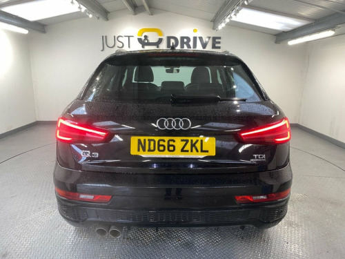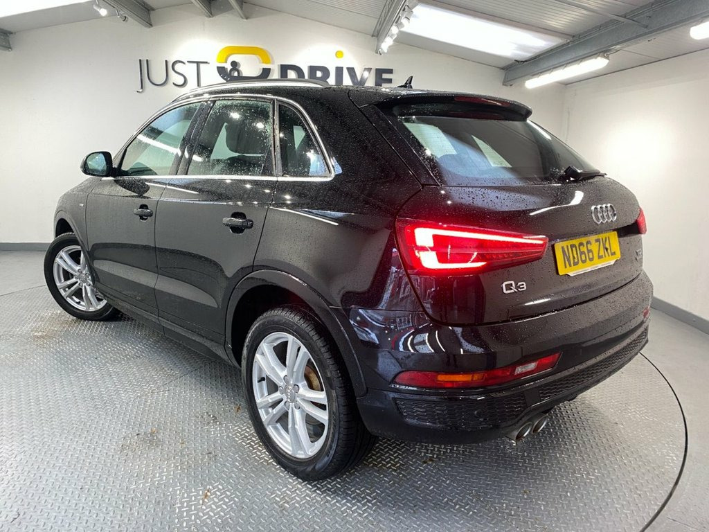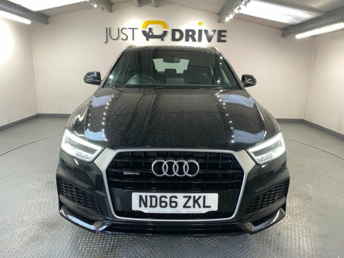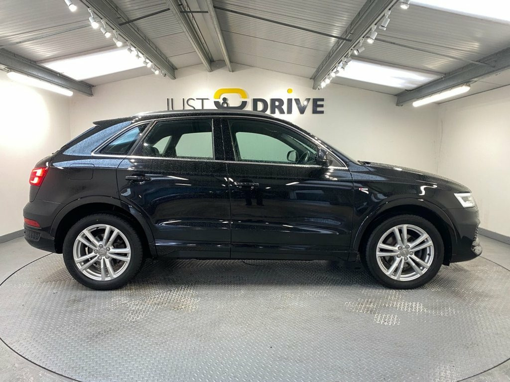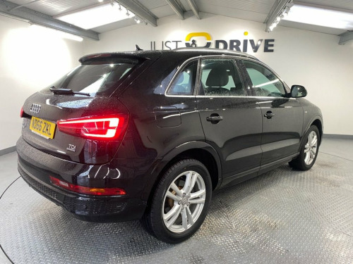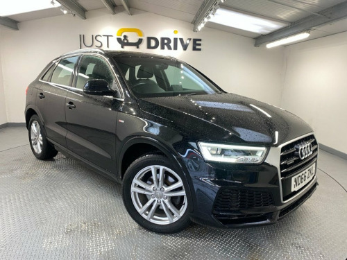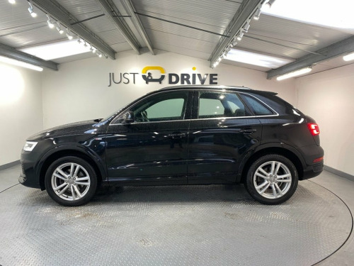 The Q3 is a tough, reliable compact SUV that's very spacious and offers a great drive. Fully colour coded in Phantom Black together with chunky 18" alloy wheels and a high level rear spoiler it certainly has a presence on the road and its sleek lines are enhanced with lots of exterior chrome trim. Inside is everything you'd expect from this quality brand - every control surface has that usual Audi feel and it's all laid out with the driver in mind. The S Line embossed sport seats are trimmed in part leather and Sprint cloth upholstery. They're clean and comfortable and there's ample room for five adults. Just a few features include Audi's multi-media system that has Bluetooth connectivity with voice control and DAB. There's also dual zone climate control, front / rear park sensors with audio / optical alert, cruise control and a leather multi-function steering wheel. The boot space is a huge 460 litres and the 2.0 TDi engine coupled with a 6 speed manual gearbox provides an impressive 148 Bhp yet can still achieve up to 61 mpg according to Audi's data and the Quattro 4WD system will cope with the most difficult terrain.. 18in Alloy Wheels - 5-Twin-Spoke Design , 4-Way Electric Lumbar Support for Front , 6.5in Colour Display Screen, 8 Passive Speakers, AMI - Audi Music Interface, All Weather LED Headlights, Aluminium Roof Rails, Aluminium Window Trims, Anti Theft Locking Wheel Bolts, Audi Drive Select, Audi Parking System Plus, Auto-Dimming Rear-View Mirror, Bluetooth Interface, Body Coloured Door Mirrors, Chrome-Plated Trims for Exhaust Tailpipe, Cloth Headlining and Dashboard in Black, Concert Radio, Cruise Control, DAB Digital Radio, Door Mirrors - Heated-Electrically Adjus, Door Sill Trims with S Line Logo, Driver - Front Passenger - Front Side an, Drivers Information System - DIS, Dual-Zone Electronic Cl