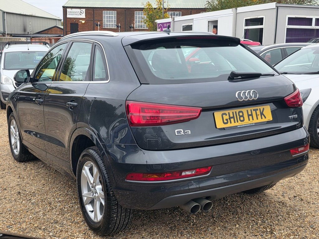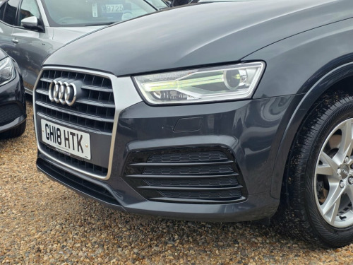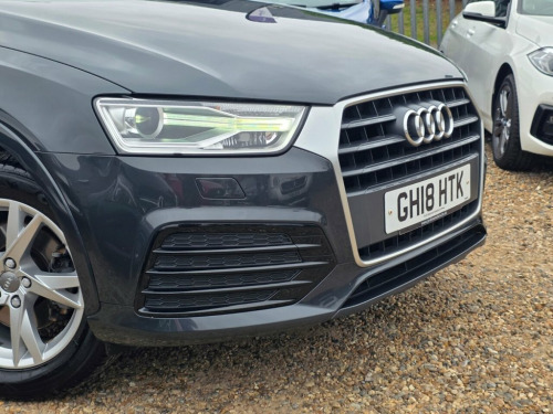 This 2018 Audi Q3 TDI S line Edition boasts a full dealership service history and a clear vehicle history check, offering you peace of mind. This stylish SUV features a powerful 2.0L Diesel engine paired with Four Wheel Drive for confident handling in all conditions. Its Euro 6 emission class ensures it meets modern environmental standards. The S line Edition trim enhances its sporty appeal, and you'll appreciate the convenience of LED Headlights with Dynamic Rear Indicators, Dual-Zone Electronic Climate Control, and the Audi Parking System Plus for effortless parking. Stay connected with the Bluetooth Interface and enjoy enhanced visibility thanks to the Light and Rain Sensor which automatically activates the headlights.  Experience impressive efficiency with a highlighted fuel economy of 53 mpg and low CO2 emissions, making this Q3 an economical choice. Its brisk acceleration, reaching 0-60mph in just 7.9 seconds, demonstrates its dynamic performance. These highlights indicate that this Audi Q3 offers a superior driving experience compared to many similar vehicles. A 3 month warranty is included for added reassurance. 18in Alloy Wheels - 5-Twin-Spoke Design , 4-Way Electric Lumbar Support for Front , 6.5in Colour Display Screen, 8 Passive Speakers, AMI - Audi Music Interface, Aluminium Roof Rails, Aluminium Window Trims, Anti Theft Locking Wheel Bolts, Anti-Theft Alarm, Audi Drive Select, Audi Parking System Plus, Auto-Dimming Rear-View Mirror, Bluetooth Interface, Body Coloured Door Mirrors, Chrome-Plated Trims for Exhaust Tailpipe, Cloth Headlining in Black, Concert Radio, Cruise Control, DAB Digital Radio, Door Mirrors - Heated-Electrically Adjus, Door Sill Trims with S Line Logo, Driver - Front Passenger - Front Side an, Drivers Information System - DIS - 3.5in, Dual-Zone Electronic Climate Control, D