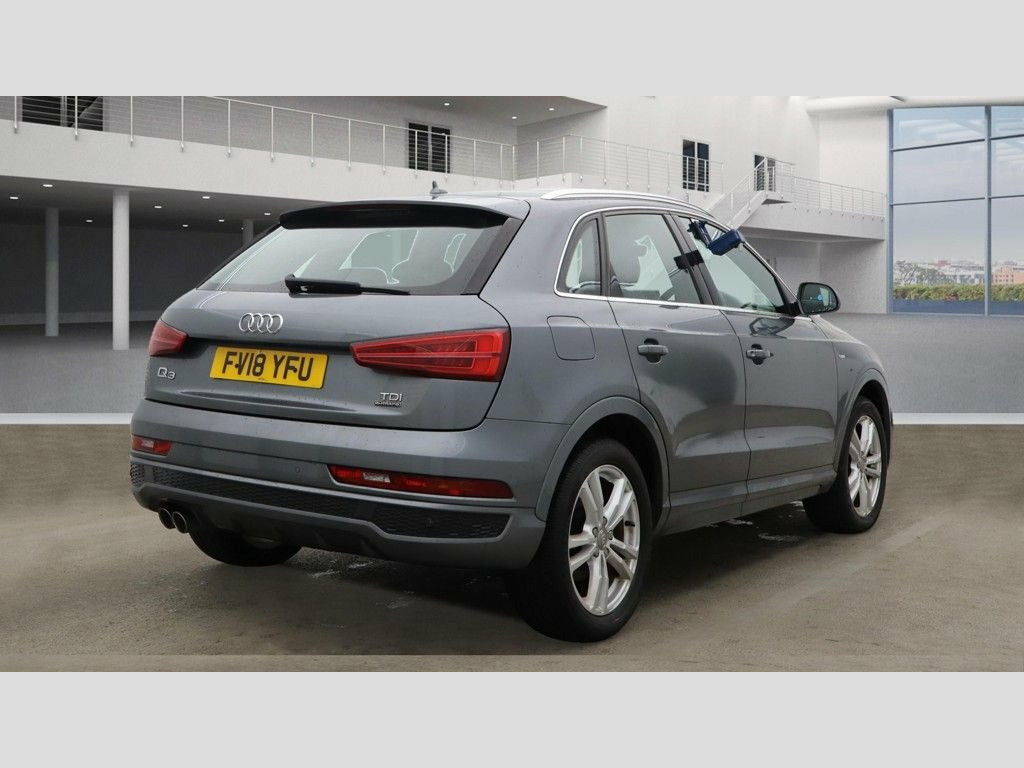 THIS AUTOMATIC AUDI Q3 TDI S LINE EDITION IS FINISHED IN A STUNNING MONSOON GREY AND BLACK HALF LEATHER INTERIOR. IT COMES WITH SERVICE HISTORY, SATELLITE NAVIGATION, 18 INCH ALLOYS, REAR PARKING SENSORS, DRIVE MODE SELECT, S LINE MULTI FUNCTION STEERING WHEEL, DUAL CLIMATE CONTROL, AIR CONDITIONING, SILVER ROOF RAILS, ELECTRIC WINDOWS, ELECTRIC DOOR MIRRORS.   •••••••••• F I N A N C E • A V A I L A B L E ••••••••••   - *** NOT SURE YOU'RE ELIGIBLE FOR CAR FINANCE? *** CHECK TODAY USING OUR FREE CAR FINANCE CHECKER ON OUR WEBSITE.*** Dace Motor Group have a dedicated team of finance experts waiting to help with your enquiry. Over the past 30 years we have forged relationships with the country's largest and best finance houses. We are specialists in Hire Purchase (HP), Personal Contract Purchase (PCP) as well as assisting those with poor credit or previous credit problems -  ••••••••••  A B O U T • U S ••••••••••   - At Dace German Car Centre, we are very proud to have been named the first Trading Standards Approved Car Retailer, with process and procedures developed with and applauded by them.  We do recommend that customers RESERVE their choice of vehicle prior to making their trip, to avoid potentially missing the car.  Visit our website https://www.dacegerm 18in Alloy Wheels - 5-Arm Off-Road Desig, 18in Alloy Wheels - 5-Twin-Spoke Design , 4-Way Electric Lumbar Support for Front , 6.5in Colour Display Screen, 8 Passive Speakers, Aluminium Roof Rails, Aluminium Window Trims, AMI - Audi Music Interface, Anti Theft Locking Wheel Bolts, Anti-Theft Alarm, Audi Drive Select, Audi Parking System Plus, Auto-Dimming Rear-View Mirror, Bluetooth Interface, Body Coloured Door Mirrors, Chrome-Plated Trims for Exhaust Tailpipe, Cloth Headlining in Black, Concert Radio, Cruise Control, Customised Paint, DAB Digital Radio, Door Mirrors - Heated-Electrically Adjus, Door Sill Trims with S Line Logo, Driver - Front Passenger - Front Side an, Drivers Information S