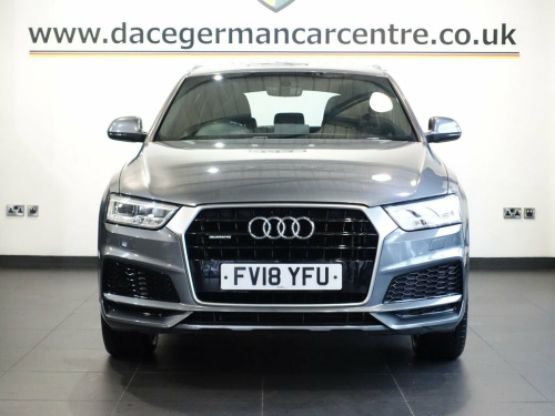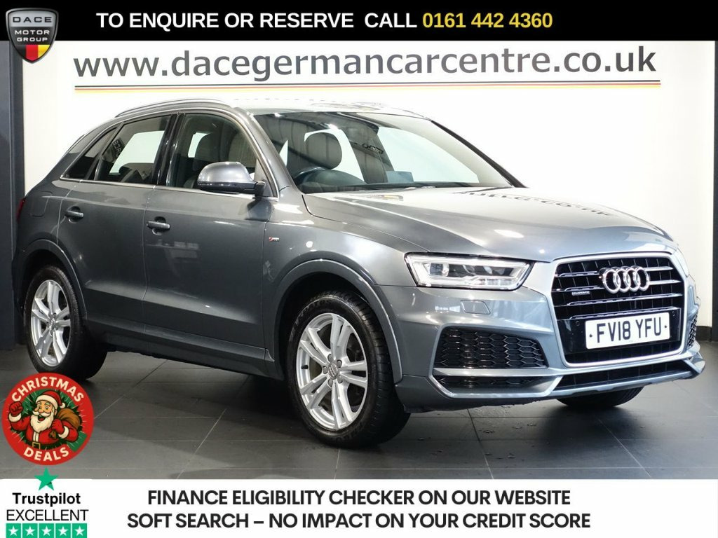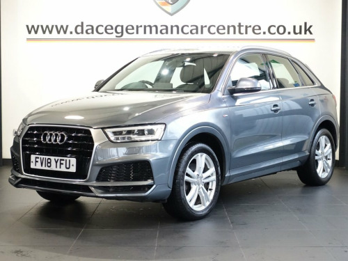 THIS AUTOMATIC AUDI Q3 TDI S LINE EDITION IS FINISHED IN A STUNNING MONSOON GREY AND BLACK HALF LEATHER INTERIOR. IT COMES WITH FULL SERVICE HISTORY, SATELLITE NAVIGATION, 18 INCH ALLOYS, REAR PARKING SENSORS, DRIVE MODE SELECT, S LINE MULTI FUNCTION STEERING WHEEL, DUAL CLIMATE CONTROL, AIR CONDITIONING, SILVER ROOF RAILS, ELECTRIC WINDOWS, ELECTRIC DOOR MIRRORS. ------------FINANCE------------ ***NOT SURE YOU'RE ELIGIBLE FOR CAR FINANCE? *** CHECK TODAY USING THE FREE CAR FINANCE CHECKER ON OUR WEBSITE.** Dace Motor Group have a dedicated team of finance experts waiting to help with your enquiry. Over the past 30 years we have forged relationships with the country's largest and best finance houses. We are specialists in Hire Purchase (HP), Personal Contract Purchase (PCP) as well as assisting those with poor credit or previous credit problems. ------------ABOUT US------------ - At Dace German Car Centre, we are very proud to have been named the first Trading Standards Approved Car Retailer, with process and procedures developed with and applauded by them. We do recommend that customers RESERVE their choice of vehicle prior to making their trip to avoid potentially missing it. Visit our website https://www.dacegermancarcentre.co.uk/ At Dace German Car Centre Stockport we carry over 700 cars in group stock. TO ENQUIRE OR RESERVE PLEASE CALL | 0161 442 4360 ------------WARRANTY------------ Unlike most car dealerships who provide limited cover warranties through 18in Alloy Wheels - 5-Arm Off-Road Desig, 18in Alloy Wheels - 5-Twin-Spoke Design , 4-Way Electric Lumbar Support for Front , 6.5in Colour Display Screen, 8 Passive Speakers, Aluminium Roof Rails, Aluminium Window Trims, AMI - Audi Music Interface, Anti Theft Locking Wheel Bolts, Anti-Theft Alarm, Audi Drive Select, Audi Parking System Plus, Auto-Dimming Rear-View Mirror, Bluetooth Interface, Body Coloured Door Mirrors, Chrome-Plated Trims for Exhaust Tailpipe, Cloth Headlining in Black, Concert Radio, Cruise Control, Customised Paint, DAB Digital Radio, Door Mirrors - Heated-Electrically Adjus, Door Sill Trims with S Line Logo, Driver - Front Passenger - Front Side an, Drivers Information S