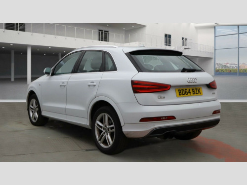 This Audi Q3 TDI S line from 2014 presents a compelling proposition with its remarkably low mileage of just 71,000 miles, a testament to its careful ownership by only two previous keepers. Under the bonnet, a capable 2.0 litre diesel engine delivers an impressive fuel economy of 54 miles per gallon, making it an economical choice for daily driving. The S line trim enhances its appeal, and you'll find convenience features such as dual zone electronic climate control to keep everyone comfortable, and rear parking sensors to aid manoeuvring. The vehicle also benefits from Bi Xenon Plus headlights with automatic activation, ensuring excellent visibility, and a Bluetooth interface for seamless mobile phone connectivity.This Q3 stands out with its favourable running costs, highlighted by its low CO2 emissions and placement within a low insurance group, indicating that ownership is likely to be more affordable. These factors, combined with its excellent fuel efficiency, demonstrate how this particular Q3 offers a more economical and cost effective driving experience compared to many other vehicles in its class. v power socket - rear centre console, 18in alloy wheels - 5-double-spoke design, 6.5in display screen, abs - anti-lock braking system, ami - audi music interface, asr - anti slip regulation, airbags - driver, airbags - front passenger, airbags - front side, airbags - head system, alarm - thatcham category 1, anti theft locking wheel bolts, automatic wipers with rain sensor, brake lights - led, bumpers - front and rear - s line design, car jack, cloth headlining in black, concert radio - mp3/cd player, dab digital radio, diffuser insert and centre front spoiler lip painted in platinum grey, door mirrors - body coloured with integrated led indicators, door mirrors - electrically adjustable and heated, door sill trims with s line logo, drivers information system - dis, dual-zone electronic climate control, dynamic suspension, ebd - electronic brakeforce distribution, edl - electronic differential lock, esp - electronic stability programme, efficiency program in the drivers information system - dis, electric windows - front and rear, electrically adjustable 4-way lumbar support, electromechanical parking brake, electromechanical power steering, exhaust tailpipe - chrome plated, first aid kit, fog lights - chrome surrounds, folding storage compartment in front centre armrest, front centre armrest - adjustable, front fog lights, front passenger airbag deactivation switch, front sports seats, front and rear floor mats, full paint finish, gear knob - perforated leather, glovebox - ventilated, headlights - automatic activation, headlights - automatic adjustment, headlights - automatic dynamic range control, headlights - bi-xenon plus, headlights - coming-leaving home function, headlights washers, heated windscreen washer jets, isofix child seat mounting for front passenger, isofix child seat preparation for rear seats with top tether, inlays - matt brushed aluminium, led daytime running lights, led rear indicators, led rear lights, mobile telephone preparation - bluetooth interface, preparation for sd card-based navigation system, radiator grille - with vertical chrome bars, rear parking sensors, rear air vents in rear centre console, remote central locking with 2 fold away keys, reversible luggage compartment floor, roof rails - aluminium, s line badges on front wings, s line body styling, sdhc card reader x2, seat belt reminder, seats - drivers manual height adjustment, seats - front sports - s line embossed, seats - sports, smoking package, space saver spare wheel, speakers x8, split-folding rear seats, stainless steel loading sill protector, steering wheel - 3-spoke leather trimmed sports, steering wheel - height and reach adjustable, steering wheel - multi-function, sunband for windscreen, tp memo - automatically saves traffic news, thatcham category 1 immobiliser, tool kit, towbar preparation, tyre pressure monitoring system, voice control - telephone, warning triangle, washer fluid level indicator, window surrounds - aluminium