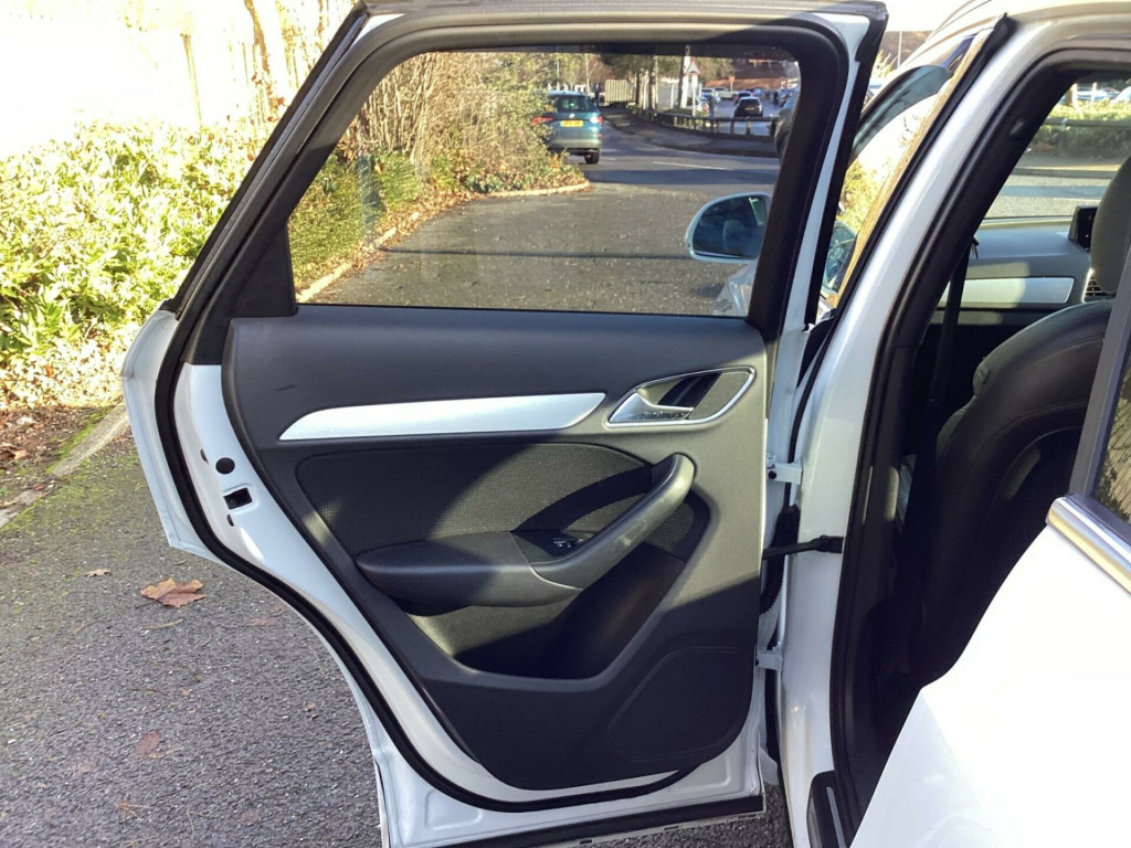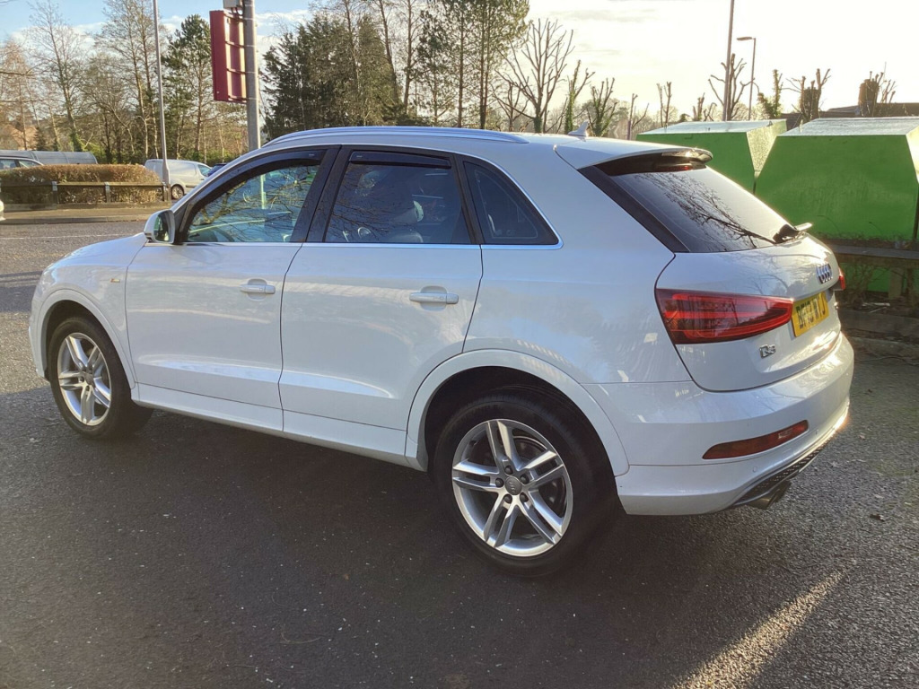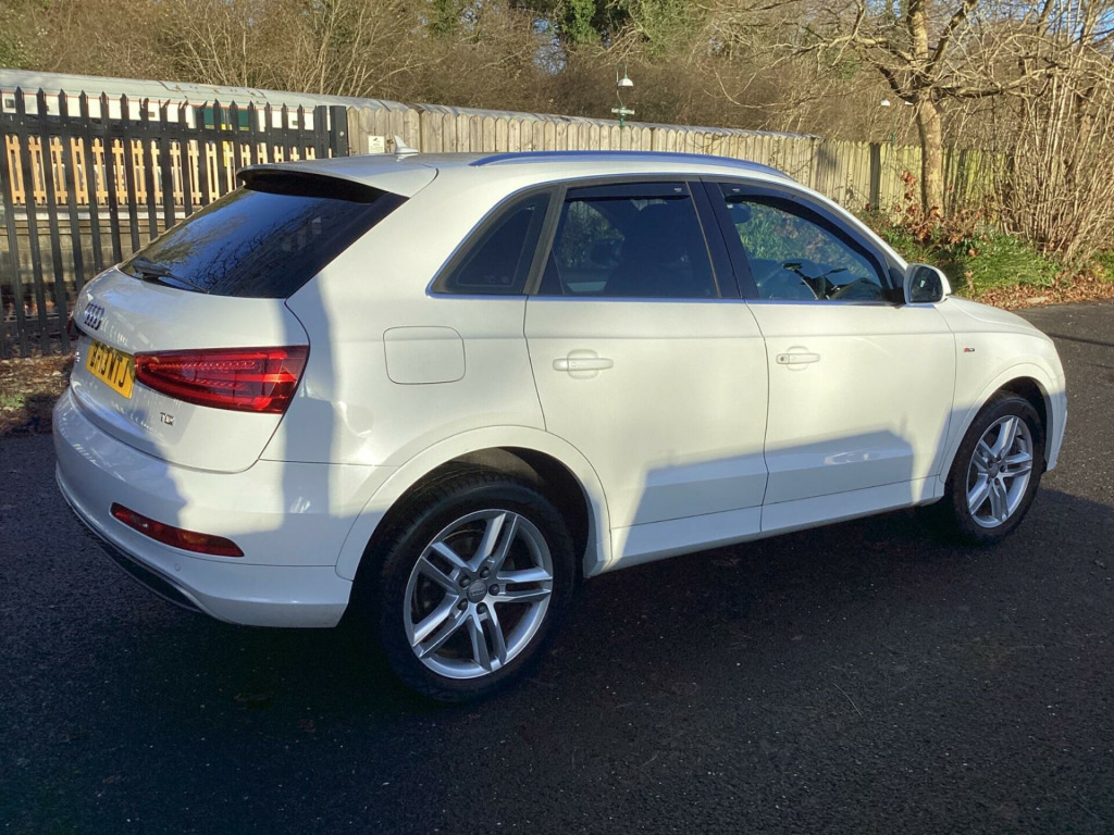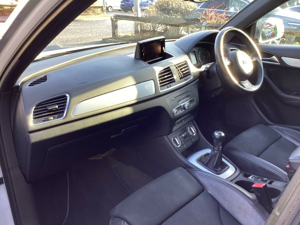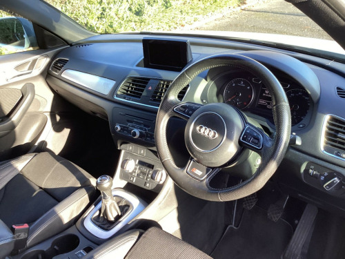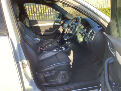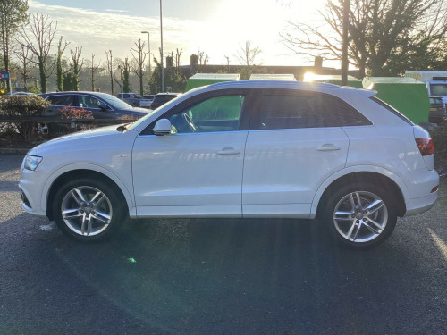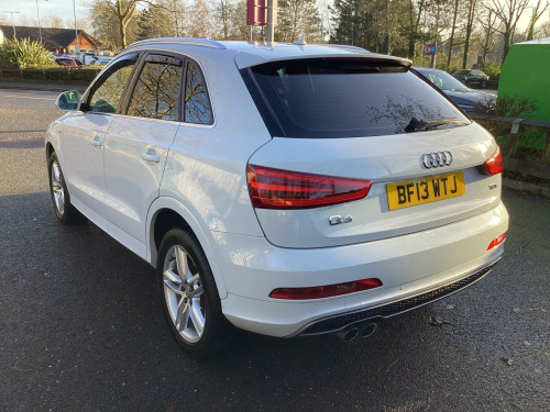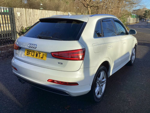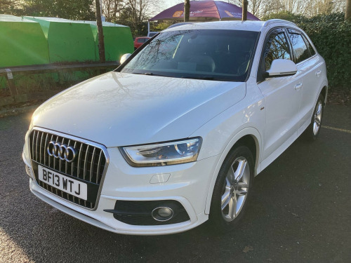 This 2013 Audi Q3 TDI S line boasts a full service history and a clear vehicle history check, offering you peace of mind. This stylish SUV features a powerful yet efficient 2.0 litre diesel engine and comes with a 12 month warranty and 12 months MOT provided on purchase. Inside, you'll find comfort and convenience with Dual-Zone Electronic Climate Control and a Bluetooth interface for seamless mobile phone connectivity. Parking is made easier with the Acoustic Parking System at the rear, and the Bi-Xenon Plus headlights provide excellent visibility.The Audi Q3 TDI S line is designed to impress with its impressive fuel economy, achieving up to 54 miles per gallon, which is a significant advantage for your running costs. Furthermore, its low CO2 emissions and low insurance group rating demonstrate how this vehicle offers a more economical and affordable ownership experience compared to many other similar cars on the market. v power socket, 18in alloy wheels - 5-double-spoke design, 6.5in display screen, abs - anti-lock braking system, ami - audi music interface, asr - anti slip regulation, acoustic parking system - rear, airbags - driver, airbags - front passenger, airbags - front side system, airbags - front side and head system, airbags - head system, alarm - thatcham category 1, aluminium roof rails, automatic wipers with rain sensor, cloth headlining in black, concert radio - mp3-cd player, door mirrors - electrically adjustable and heated, drivers information system - dis, dual-zone electronic climate control, dynamic suspension, ebd - electronic brakeforce distribution, edl - electronic differential lock, esp - electronic stability programme, electric windows - front and rear, electrically adjustable 4-way lumbar support, first aid kit, front centre armrest - adjustable, front fog lights, front passenger airbag deactivation switch, front sports seats, full paint finish, headlights - automatic adjustment, headlights - bi-xenon plus, headlights washers, isofix child seat mounting for front passenger with airbag deactivation, inlays - matt brushed aluminium, light and rain sensor package, mobile telephone preparation - bluetooth interface, power steering, remote central locking, remote central locking with 2 fold away keys, seats - drivers manual height adjustment, split-folding rear seats, steering wheel - 3-spoke s line multi-function leather, steering wheel - height and reach adjustable, steering wheel - multi-function, tyre mobility system