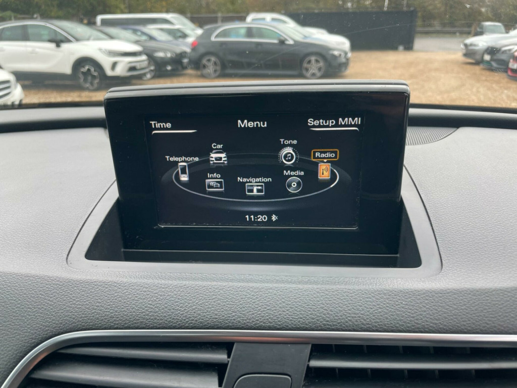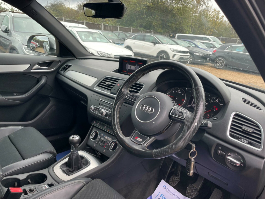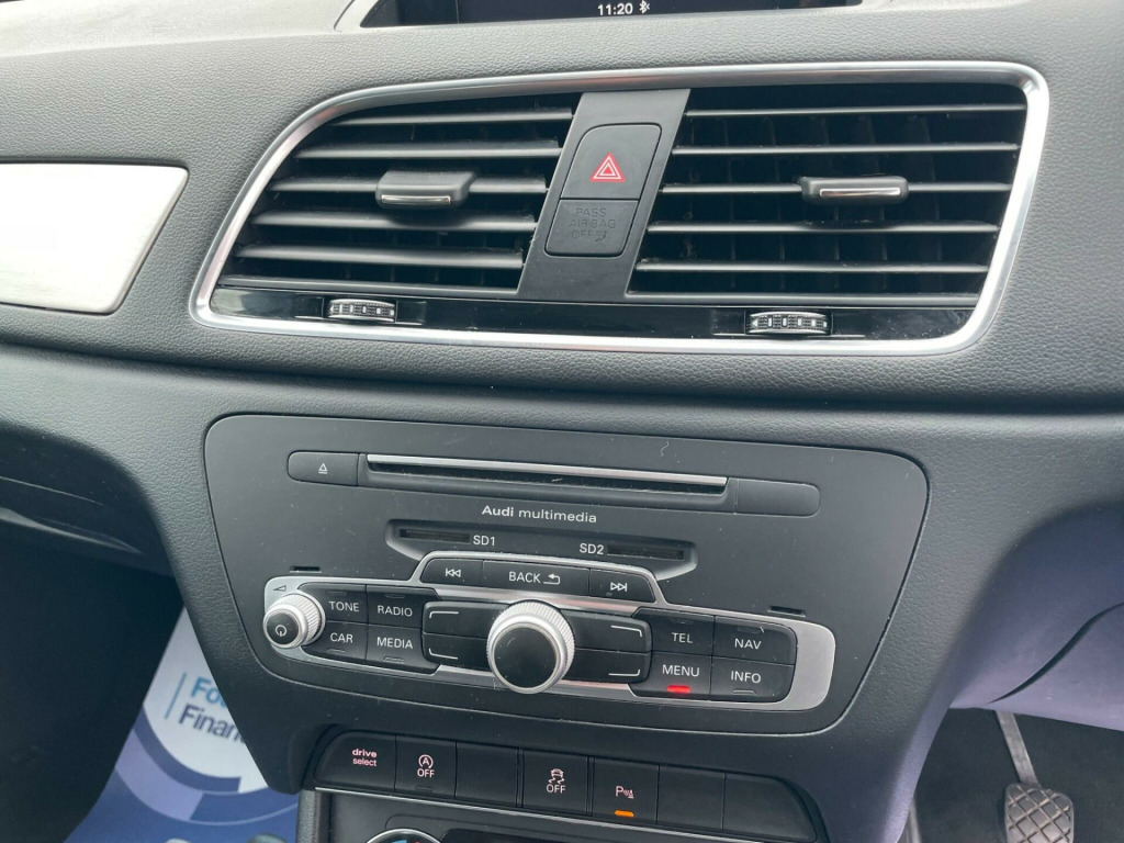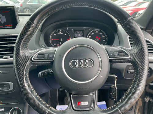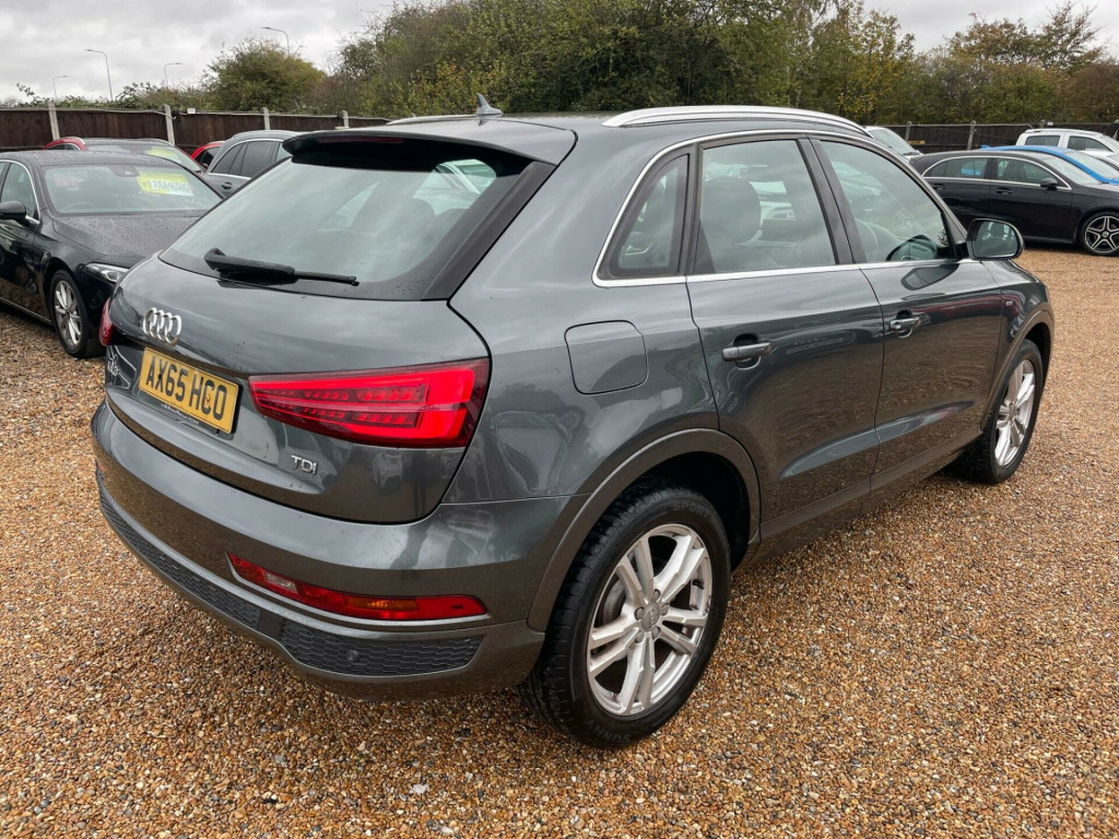 6 MONTHS NATIONWIDE WARRANTY, 12 MONTHS FREE AA BREAKDOWN COVER, Just Been Serviced, Hpi Clear, 2 keys, all previews MOTs available, we are located at CANVEY ROAD, CANVEY ISLAND, ESSEX, SS8 0QD, This 2016 Audi Q3 TDI S line boasts a clear vehicle history, offering you peace of mind. This stylish SUV features a powerful yet efficient 2.0 litre diesel engine, meeting Euro 6 emissions standards. You'll appreciate the convenience of All Weather LED headlights with automatic activation, dual zone electronic climate control to keep everyone comfortable, and rear parking sensors to aid manoeuvring. The integrated Bluetooth interface also allows for seamless mobile telephone connectivity.This Audi Q3 is designed to be economical to run, achieving an impressive 61 miles per gallon. Its low CO2 emissions and low insurance group rating further highlight its cost effectiveness compared to similar vehicles. This combination of practical features, strong fuel economy, and favourable running costs makes this Q3 a sensible choice.. 12V Power Socket - Rear Centre Console, 18in Alloy Wheels - 5-Twin Spoke Design, 6.5in Display Screen, ABS - Anti-Lock Braking System, AMI - Audi Music Interface, ASR - Anti Slip Regulation, Airbags - Driver, Airbags - Front Passenger, Airbags - Front Side, Airbags - Head System, Alarm - Thatcham Category 1, All Weather LED Headlights, Aluminium-Effect Door Mirror Housings, Anti Theft Locking Wheel Bolts, Audi Drive Select, Automatic Wipers with Rain Sensor, Brake Lights - LED, Bumpers - Front and Rear - S Line Design, Car Jack, Cloth Headlining in Black, Concert Radio - MP3/CD Player, DAB Digital Radio, Dashboard - Black, Diffuser Insert and Centre Front Spoiler Lip Painted in Platinum Grey, Door Mirrors - Automatic Kerb View Dipping Function When Reversing, Door Mirrors - Body Coloured with Integrated LED Indicators, Door Mirrors - Heated-Electrically Adjustable-Folding, Door Sill Trims with S Line Logo, Drivers Information System - DIS, Dual-Zone Electronic Climate Control, Dynamic Rear Indicators, Dynamic Suspension, EBD - Electronic Brakeforce Distribution, EDL - Electronic Differential Lock, ESP - Electronic Stability Programme, Electric Windows - Front and Rear, Electrically Adjustable 4-Way Lumbar Support, Electromechanical Parking Brake, Electromechanical Power Steering, Exhaust Tailpipe - Chrome Plated, First Aid Kit, Floor Mats - Front and Rear in Velour, Folding Storage Compartment in Front Centre Armrest, Front Centre Armrest - Adjustable, Front Fog Lights, Front Passenger Airbag Deactivation Switch, Full Paint Finish, Gear Knob - Perforated Leather, Headlights - Automatic Activation, Headlights - Automatic Adjustment, Headlights - Automatic Dynamic Range Control, Headlights - Coming-Leaving Home Function, Headlights Washers, Heated Windscreen Washer Jets, ISOFIX Child Seat Mounting for Front Passenger, ISOFIX Child Seat Preparation for Rear Seats with Top Tether, Inlays - Matt Brushed Aluminium, LED Daytime Running Lights, LED Rear Indicators, LED Rear Lights, Manual Front Seat Adjustment, Mobile Telephone Preparation - Bluetooth Interface, Power Operated Tailgate, Preparation for SD Card-Based Navigation System, Radiator Grille - with Vertical Chrome Bars, Rear Parking Sensors, Remote Central Locking with 2 Fold Away Keys, Reversible Luggage Compartment Floor, Roof Rails - Aluminium, S Line Badges on Front Wings, S Line Body Styling, SDHC Card Reader x2, Seat Belt Reminder, Seats - Front Sports - S Line Embossed, Secondary Collision Brake Assist, Smoking Package, Space Saver Spare Wheel, Speakers x8, Split-Folding Rear Seats, Stainless Steel Loading Sill Protector, Steering Wheel - 3-Spoke Leather-MultiFunction-Q-Design, Steering Wheel - Height and Reach Adjustable, Steering Wheel - Multi-function, Sunband for Windscreen, TP Memo - Automatically Saves Traffic News, Tool Kit, Towbar Preparation, Tyre Pressure Monitoring System, Voice Control - Telephone, Warning Triangle, Washer Fluid Level Indicator, Window Surrounds - Aluminium.