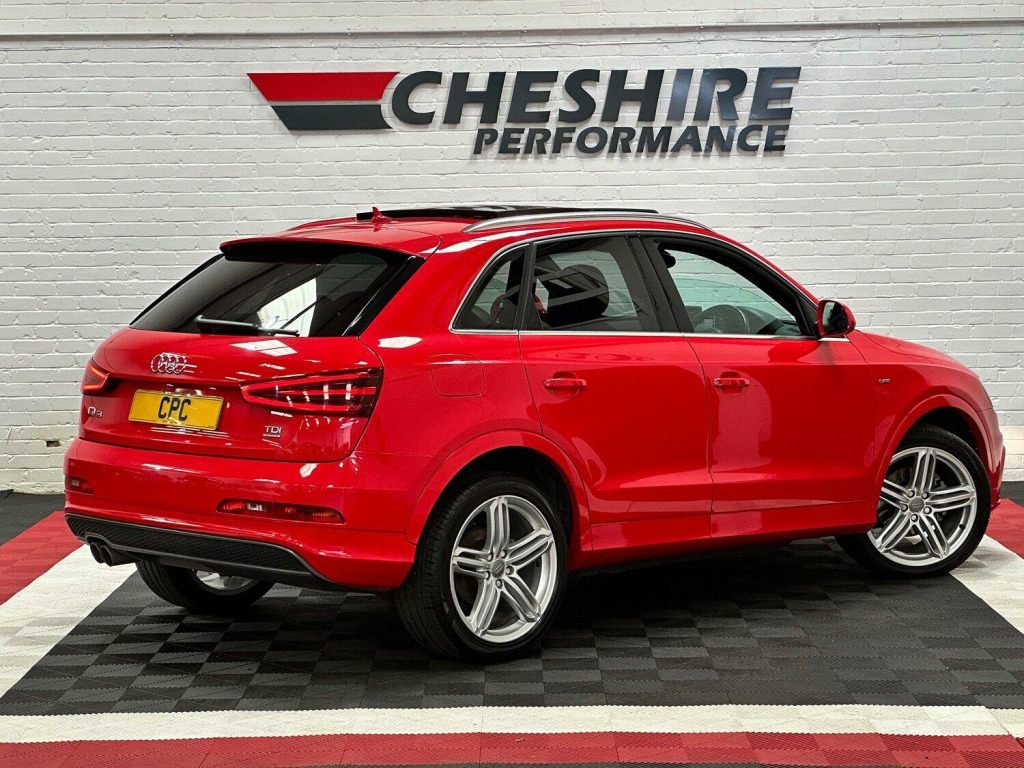2014 64 AUDI Q3 2.0 TDI S LINE PLUS QUATTRO 5DR. , This Vehicle Comes With Warranty As Standard, Please Call Us For More Details!, , Stunning Example With Only 3 Previous Keepers From New Presented In Audi Misano Red Paintwork With Contrasting Black Half Leather And Alcantara Seats Complete With 19 Inch Alloy Wheels Finished In Silver Paintwork. , Well Maintained Example Covering 105,000 Miles From New, Backed Up With Full Service History Which Has Been Carried Out By A Mix Of Main Dealer And Independent Garages With Invoices To Show. Important Timing Belt And Water Pump Has Been Replaced In Accordance To The Vehicles Maintenance Schedule Using Genuine Parts Along With A Clutch + Flywheel Replacement At Audi, Very Clean Throughout With Excellent Bodywork, Unmarked Interior And Outstanding Wheels, New Owner Won’t Be Disappointed. This Vehicle Comes With Two Keys. , Cambelt + Water Pump Replaced 2024 + Clutch / Dual Mass Flywheel Replaced At 72k At Audi Main Dealer With Invoices Present, Highly Maintained Example. , Its 2.0 Litre Turbo Diesel Engine Produces 175Bhp And 380Nm Of Torque. This Is Matched With Its 6 Speed Manual Gearbox Which Makes For A Superb Drive!, , Outstanding Spec Includes. *Audi Misano Red Paintwork. *Black Half Leather And Alcantara Heated Seats. *19 Inch Alloy Wheels Finished In Silver Paintwork. *Electronic Tilt And Slide Panoramic Sunroof. *Multi Function Steering Wheel. *Cruise Control. *Climate Control With A.C, *Parking Sensors. *Electric Adjustable Wing Mirrors. *Heated Wing Mirrors. *Automatic Headlights. *Automatic Windscreen Wipers. *Satellite Navigation System. *DAB Radio. *CD Player. *SD Input. *Bluetooth Connectivity. *Electronic Parking Brake. *Auto Hold. *Split Folding Rear Seats. , Excellent Standard Spec Includes, Height Adjustable Seats, Electric Mirrors, Window Lock, Fog Lights, Auto Dimming Rear View Mirror, Front And Rear Interior Lights, Rear Heated Screen, Cup Holders, Traction Control, 12V, Isofix And Much More. , Genuine Miles Backed Up With Full Service History and Previous MOT Certificates To Verify Miles, Part Exchange Welcome Contact Us For A Fair And No Obligation Valuation. , All Our Vehicles Have Been Road Tested With Multi Point Checks And We Welcome RAC Or AA Inspections, For Your Added Peace Of Mind All Of Our Vehicles Are HPI Clear. , We Can Provide A Decision Within 30 Minutes Please Call Us To Discuss Your Requirements, Our Finance Partners Include Close Brothers | CF247 | Motonovo | Evolution And Others. , We Offer Full Dealer Facilities Including A Comfortable Customer Office An Indoor Viewing Area And We Accept All Methods Of Payment, We Are Open 7 Days A Week Please Call Ahead To Ensure The Vehicle Of Interest Is Still Available, Sales 0161 336 2007 Or General Enquiries 0161 335 0008. , Every effort has been made to ensure the vehicle has been described accurately in accordance with its age and mileage, The data above details the usual specification of the most recent model of this vehicle and may vary for the actual vehicle for sale. , Please always check the vehicle specification prior to purchase. If You Have Any Questions Please Get In Touch And We Will Be Happy To Help. , All Our Vehicles Come With Warranty Included, Extended Warranty Options Available, We Offer Finance With Competitive HP And PCP Deals Available, Visit Our Website To Use Our Online Calculator And Apply Online Today!