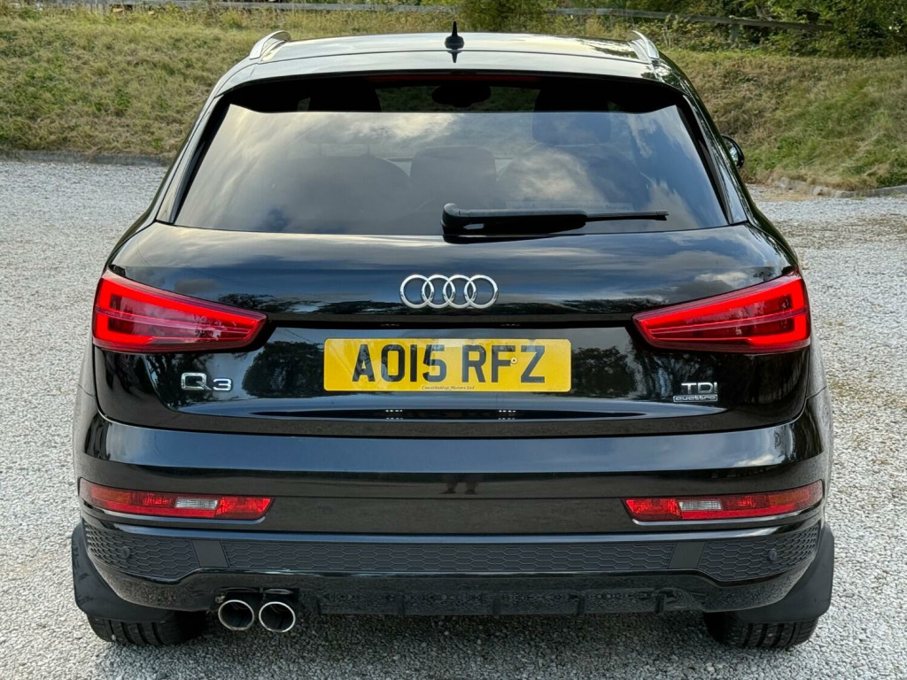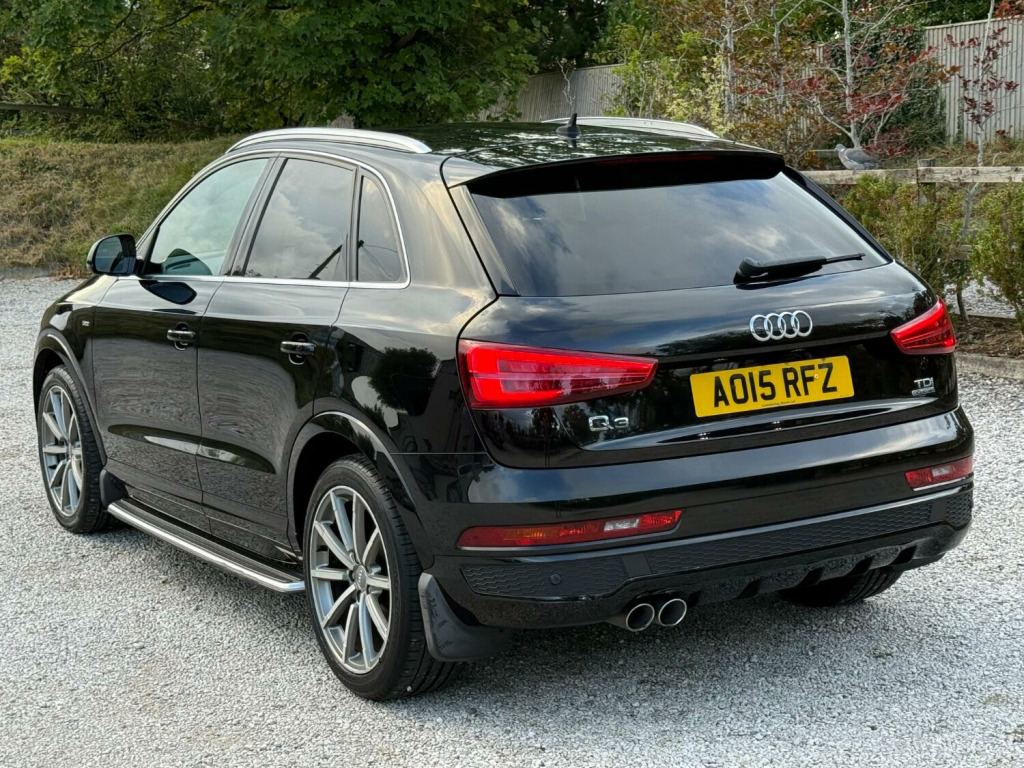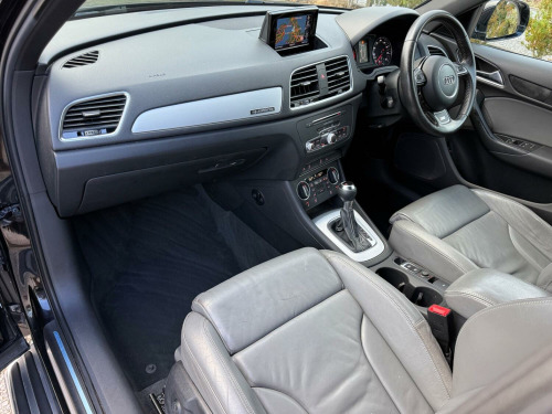 2015 Audi Q3 2.0TDi S-Line Plus Quattro S-Tronic Auto. 126,000 Miles. Metallic Mythos Black. Great Spec Includes: Four Wheel Drive, Full Grey Leather Interior, Navigation, DAB Radio, Bluetooth, Heated Seats, Dynamic Sweeping Indicators, Side Steps, Parking Sensors, Power Tailgate, Privacy Glass, Cruise Control +++ Lots More! Great Value For One Of These Cars! Part Exchange Welcome