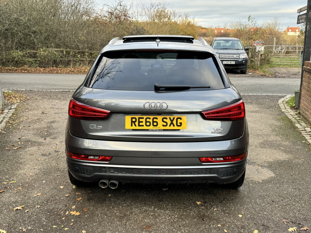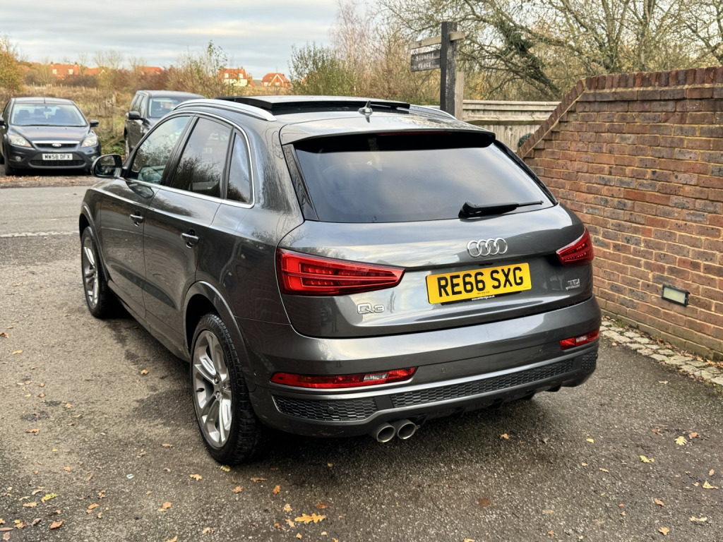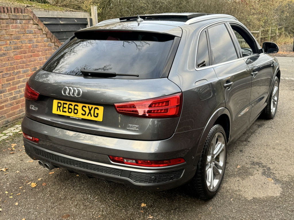 Direct Car Sales are excited to offer a 2016 AUDI Q3, a grey diesel vehicle with a 1968cc engine. This car has a rare specification, with over £8,800 of additional features. It has had two previous owners and has a full service history, with the most recent service taking place in November 2025. , The car is equipped with a range of features, including a pan roof, Bose sound system, and Comfort package plus. It also has a reversing camera and park assist, making parking and manoeuvring easier. The towing pack is also included, along with 19-inch alloy wheels. The cars interior features perforated heated sports seats, keyless start and stop, and privacy glass. The LED interior light pack and flat bottom steering wheel add to the cars comfort and style. , This AUDI Q3 is a four-wheel drive vehicle, with a diesel automatic transmission. We are offering low-rate finance options, making it more affordable for you to own this car. The car also comes with a three-month warranty, providing you with peace of mind. If you have a vehicle to part-exchange, we welcome this as part of the purchase. , Our goal is to provide you with a straightforward and honest description of this vehicle, and we believe it represents a great opportunity for someone looking for a reliable and well-equipped car with affordable monthly payments.