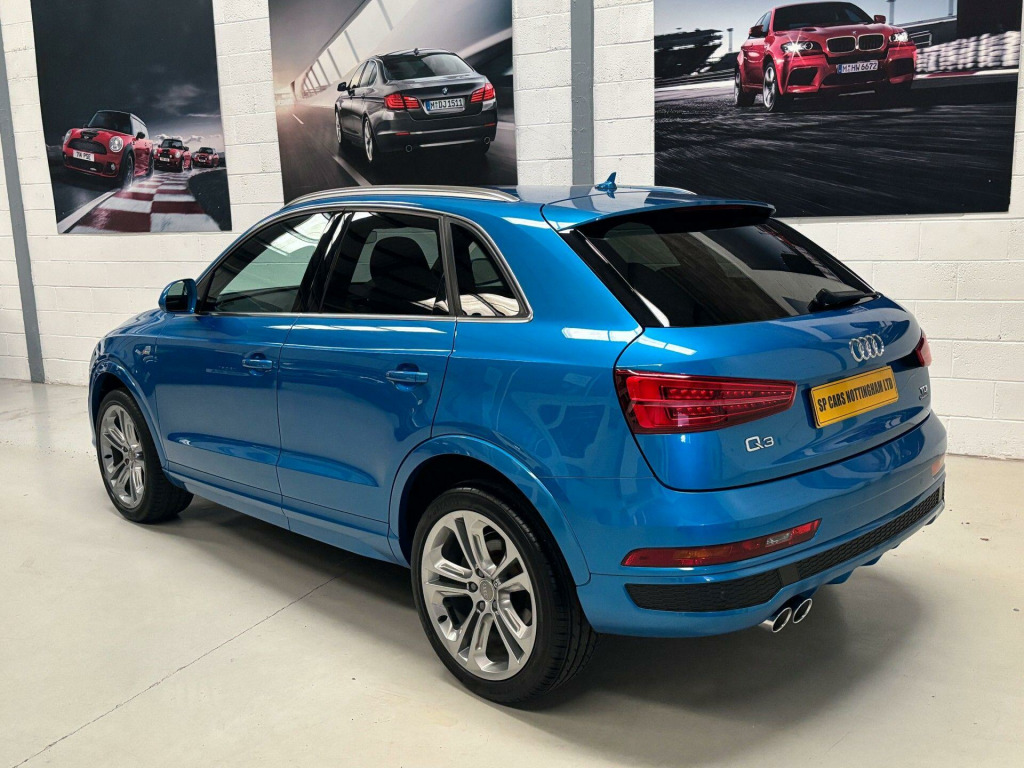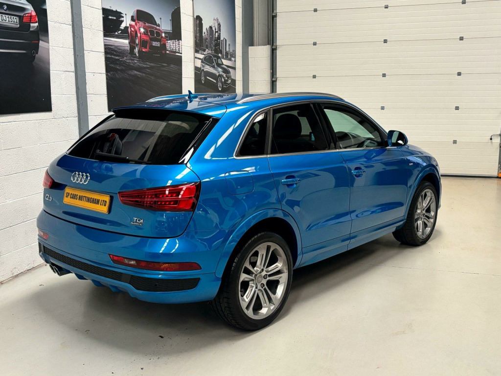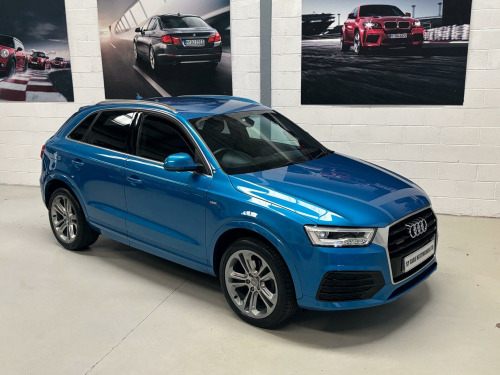 NOW SOLD // SP Cars are excited to offer this exceptional 2016/66 Audi Q3 2.0 TDI S line Plus quattro Euro 6 (s/s) 5dr SUV, presented in metallic Hainan Blue. Just One previous owner from new, Only 55,600 miles with full service history and receipts at 3k, 20k, 24k, 29k, 36k, 43k and 55k on 18th August 2025. Hpi Clear. New cambelt and waterpump fitted on 19th Sept 2023 at 43k. MOT until 31st August 2026. EURO 6 Emissions and ULEZ Compliant. All part exchanges considered. Check out our 5* reviews and a full walkaround video on our website www.spcars.net. We are FCA regulated and can arrange competitive finance packages to suit your needs. We have the V5, complete handbook pack, 2 keys, locking wheel nut, spare wheel, tool kit and all service invoices. Viewing is by appointment only please. Please ring before travelling to avoid disappointment. Check Out This Spec, Satellite Navigation System - SD Card Based, Audi Parking System Plus, Comfort Package, Leather/Alcantara Seats With Embossed S-Line, Heated Seats, 19in Alloy Wheels - 5-Segment-Spoke Design, Privacy Glass, Audi Drive Select, Rear Parking Sensors, Parking Sensors - Front, DAB Digital Radio, Mobile Telephone Preparation - Bluetooth Interface, Voice Control - Telephone, Power Operated Tailgate, Door Mirrors - Automatic Kerb View Dipping Function When Reversing, Cruise Control, AMI - Audi Music Interface, Electrically Adjustable 4-Way Lumbar Support, ABS - Anti-Lock Braking System, 6.5in Display Screen, Concert Radio - MP3/CD Player, ASR - Anti Slip Regulation, All Weather LED Headlights, Dynamic Suspension, Door Mirrors - Heated-Electrically Adjustable-Folding, Door Sill Trims with S Line Logo, EDL - Electronic Differential Lock, Dual-Zone Electronic Climate Control, Dynamic Rear Indicators, ESP - Electronic Stability Programme, Auto-Dimming Rear-View Mirror, 12V Power Socket - Rear Centre Console, Folding Storage Compartment in Front Centre Armrest, Front Centre Armrest - Adjustable, Front Passenger Airbag Deactivation Switch, S Line Body Styling, Front Fog Lights, Headlights - Coming-Leaving Home Function
