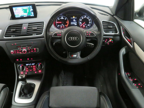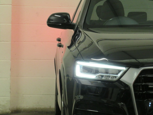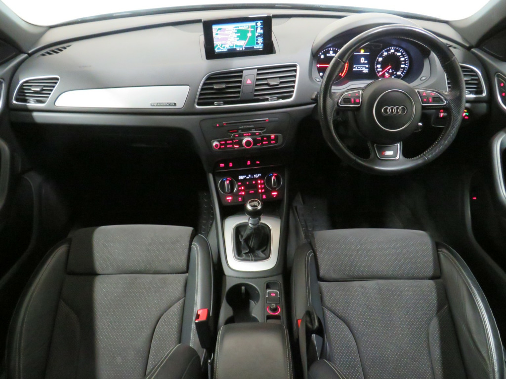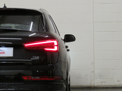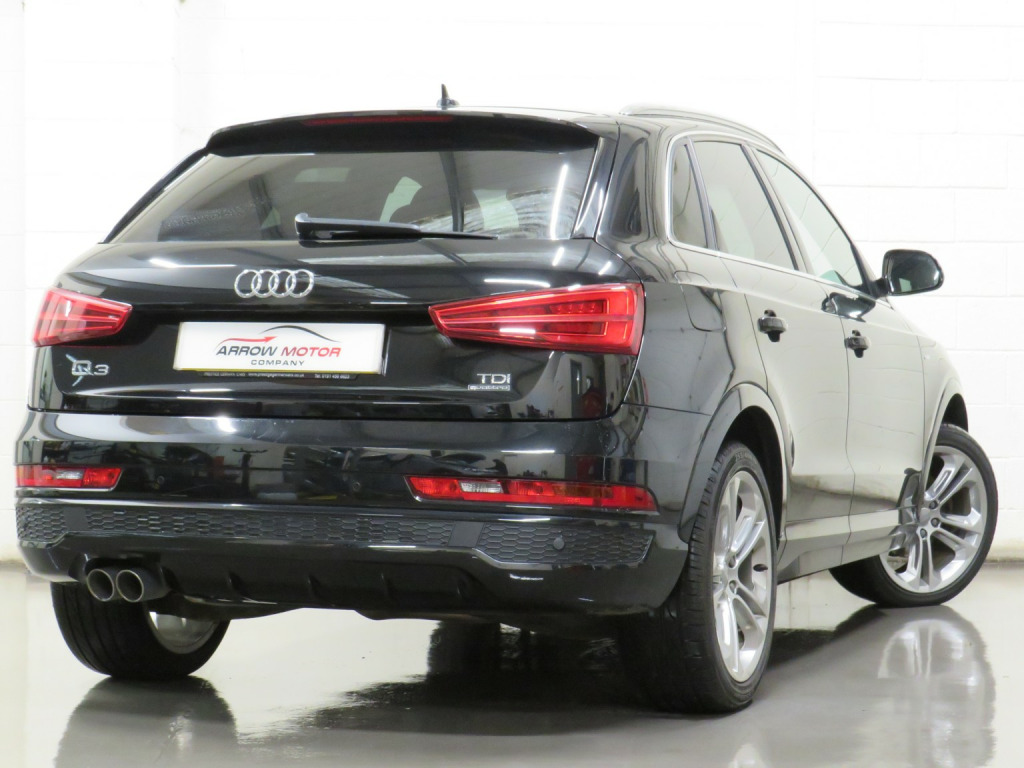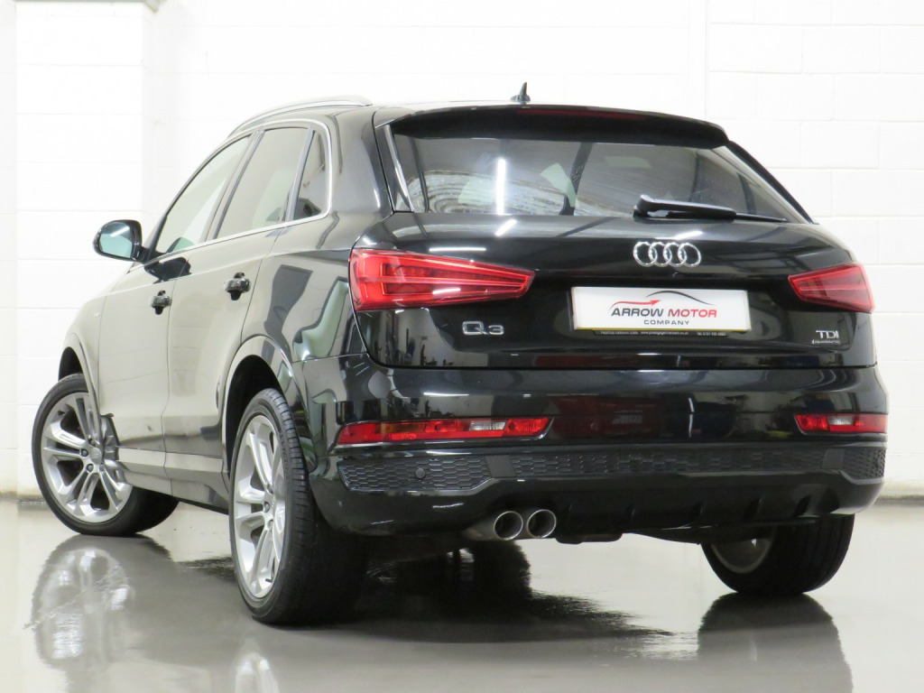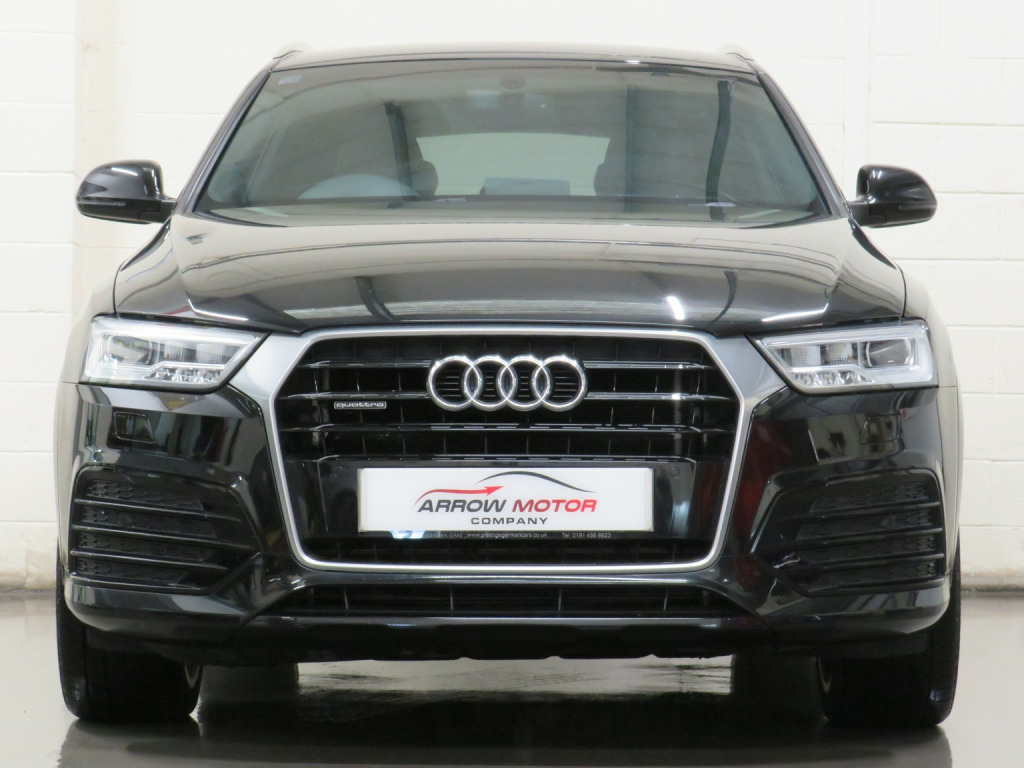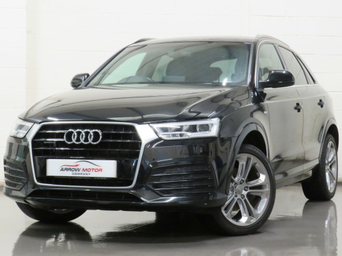 Arrow Motor Company are pleased to present this fantastic Audi Q3 S-line Plus Quattro, finished in the stunning Metallic Mythos Black Paintwork with a Black Leather and Alcantara interior. Equipped with Audis 2.0-Litre Diesel Engine capable of producing 181bhp whilst providing the most economical of drivers with an incredible 50.4mpg, with potential to rise to 57.6mpg in Extra-Urban environments. This vehicle also benefits from the following impressive list of features…, , …↓ ↓ ↓ ↓ ↓ ↓ ↓ ↓ ↓ ↓ ↓ ↓ ↓ ↓ ↓ ↓ ↓ ↓ ↓ ↓ ↓…, , …Interior Features…, , Satellite Navigation System | 6.5-Inch Electrically Deployable Driver Information System Display | Dual Zone Climate Control | Front and Rear Ultrasonic Parking Sensor Display | 4x Adjustable Black Leather Stitched S-Line Branded Heated Comfort Seats | DAB Radio | Surround Sound Speaker System | Bluetooth Connectivity | Cruise Control | Audi Media Interface Port | Voice Command | Comfort Mode | Dynamic Mode | Efficiency Mode | CD Player | Black Leather Stippled Multifunctional S-Line Steering Wheel | Electrically Operated Cockpit Boot Controls | Automatic Headlight Switch | Electric Hand Brake | Central Cockpit Display | Front and Rear Electric Windows | Electrically Adjustable Heated Folding Wingmirror Controls | Black Leather Sliver Plated Shifter | Chrome S-Line Branded Door Sills | Multifunctional Trip Computer | Eco Stop/Start System | CD Player | 2x SD Port | 12v Port | Front and Rear Interior Illumination | Central Media Control Dial | Auto Illuminating Vanity Mirrors | Folding Rear Seats | ISOFIX |, , …Exterior Features…, , 19-Inch 10x2-Spoke Metallic Silver Alloy Wheels | Front and Rear Ultrasonic Parking Sensors | Gloss Black Diffuser | Roof Spoiler | Twin Chrome Exhausts | Chrome Roof Rails | Silver Lined Front Grill | Silver Roof Rails | Shark Fin Arial | Wing Mirror Mounted Indicators | Heated Rear Window | Flared Wheel Arches | Body Coloured Wing Mirrors | Body Coloured Roof | Body Coloured Door Handles |