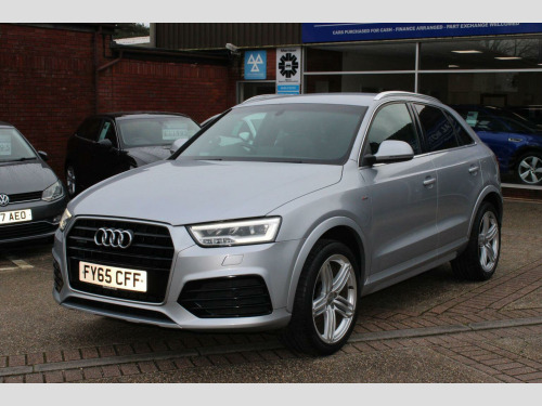 Central Motors are proud to offer this lovely 2015-65 plate Audi Q3 2.0 TDI S line Plus. This four wheel drive model is equipped with a 2.0 litre diesel engine and meets Euro 6 emissions standards. Its provenance is further enhanced by a full service history, with the most recent service completed on 22 September 2025, and an MOT valid until June 2026. For your peace of mind, a 6 month warranty is included. Notable features include All Weather LED Headlights, front and rear parking sensors for effortless manoeuvring, dual zone electronic climate control to ensure comfort for all occupants, and a Bluetooth interface for seamless mobile phone connectivity. We have all handbooks, wallet & 2 keys. The car comes with 6 months warranty which can be used nationwide & extended up to 24 months at additional cost. This Audi Q3 stands out with its impressive fuel economy, achieving a highlight of 54 miles per gallon, which indicates it is more economical than many similar vehicles. Furthermore, its low insurance group rating suggests that running costs will be more affordable compared to other cars in its class. With only 56,785 miles on the clock, this Q3 offers a superb combination of Audis renowned quality, practical features, and cost effective ownership.