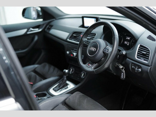 Audi Q3 S Line Plus Auto Diesel Quattro - Graphite Grey 19" Alloys, Privacy Glass Tinted Windows, Front & Rear Parking Sensors, Xenon Lights with LED DRL's, Satellite Navigation, Bluetooth, AUX / USB, Media Interface, DAB Digital Radio, Climate Control AC, Steering Wheel Mounted Shifters, Cruise Control, Auto Lights, Auto Wipers, Auto Dimming Rear View , Black Edition Mats & Many More Fitted Features. Phone Lines Open 7 Days a Week. Free Local Deliveries on all Seen & Purchased Vehicles. Full Video Presentations Available on all Cars. Full Warranties available up to 2 Years with Zero Excess at Trade Cost. Low Rate PCP & HP Finance Available on Most Cars Up to 10 Years Old - Can Assist with Part Exchange. We Are FCA Regulated with Indoor Viewing Available. All Vehicles HPI Clear. We aim to offer the highest market part exchange value -------------- Available Now this Audi Q3 S Line Plus Auto Diesel has covered 72k Miles in Pearl Phantom Black with Black Half Leather S Line Interior. Documented Service History & Freshly Serviced for Sale. All Vehicles Subject to Full Health Check and/or Fresh MOT Before or at Point of Sale - LOW RATE FINANCE AVAILABLE TERMS APPLY // Consumer Credit Licence Number: 793202 // Any Further Questions Relating to this Car Please Call 0161 641 0078 or 07974600500 12V Power Socket - Rear Centre Console, 6.5in Display Screen, 7-Digit Postcode Recognition, ABS - Anti-Lock Braking System, AMI - Audi Music Interface, ASR - Anti Slip Regulation, Airbags - Driver, Airbags - Front Passenger, Airbags - Front Side, Airbags - Head System, Alarm - Thatcham Category 1, Anti Theft Locking Wheel Bolts, Automatic Wipers with Rain Sensor, Brake Lights - LED, Bumpers - Front and Rear - S Line Design, Car Jack, Cloth Headlining in Black, Concert Radio - MP3/CD Player, DAB Digital Radio, Diffuser Insert and Centre Front Spoiler, Door Mirrors - Body Coloured with Integr, Door Mirrors - Electrically Adjustable a, Door Sill Trims with S Line Logo, Drivers Information Syste