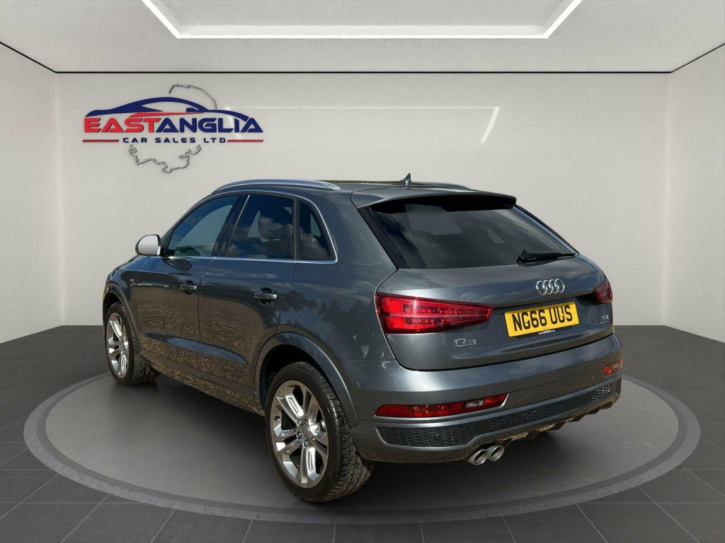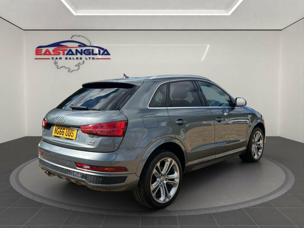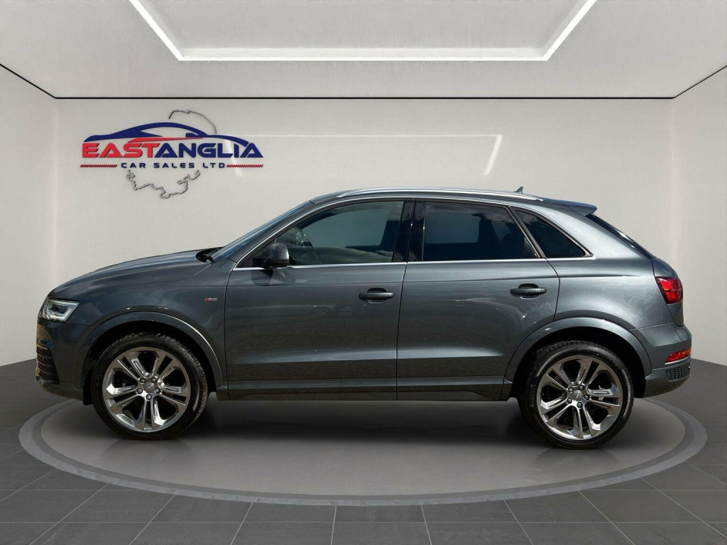 At East Anglia Car Sales we are proud to present this 2016/66 Audi Q3 2.0 TDI (184 BHP) Quattro S-Line with S-Tronic automatic gearbox. Finished in metallic grey with black interior. Supplied with a service and MOT plus 3 months warranty. Any inspection welcome of this very well cared for car. Fitted with Sat Nav, heated front seats, DAB radio, front and rear parking sensors plus climate control. Call now to arrange a viewing or book a test drive! , Part exchange is welcome and finance options are available. We are a family run business on the coast of Suffolk near Woodbridge and have been sourcing and supplying quality used cars and light commercial vehicles since 2013. We were gratefully awarded *AutoTrader Highly Rated for Customer Service in 2022!*, We understand the process of buying a new car can be challenging, therefore we pride ourselves in delivering the best customer service making it easy for you to choose your next car for the best price! We give you peace of mind with all of our vehicles as along with every sale, we include a premium nation-wide warranty with a chance to increase this up to 36 months on sale. Looking for finance? One of our team members can give you a finance quote tailored to you!, Got a car you want to sell? At East Anglia Car Sales we understand that selling a car can be an overwhelming process... Thats why we allow all part exchange vehicles, We use our evaluation software via Auto Trader which gives an up to date market value for your part exchange vehicle,, we handle all the unnecessary paper work for you. Any of our vehicles can be secured by a refundable deposit. This is only subject to a refund if the buyer pays the deposit prior to viewing and on viewing is not happy with the sale.