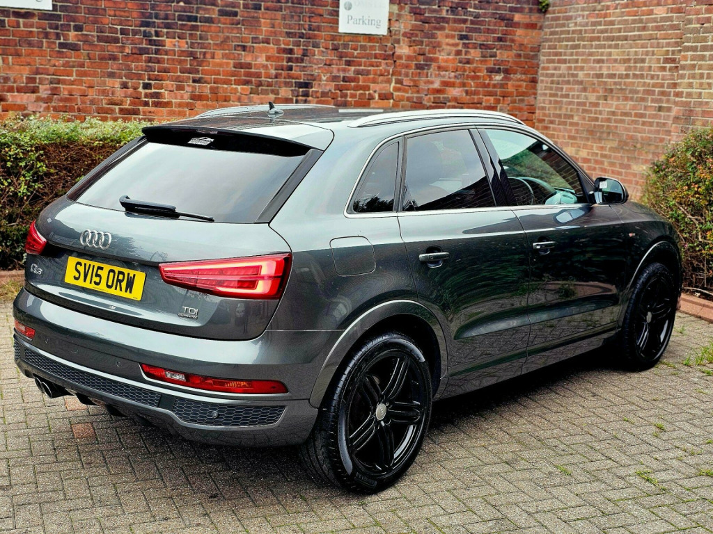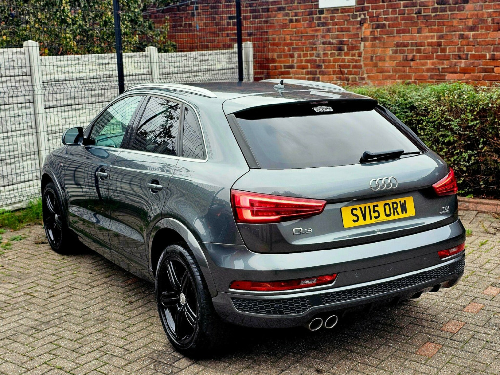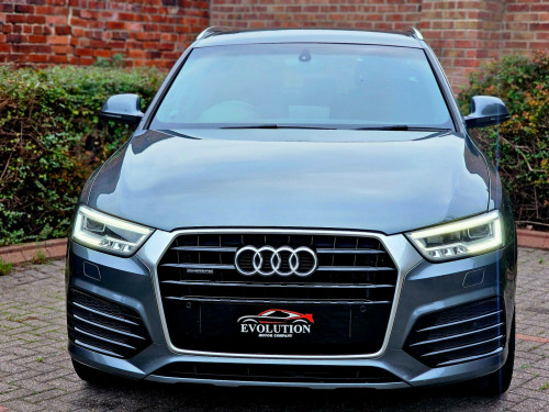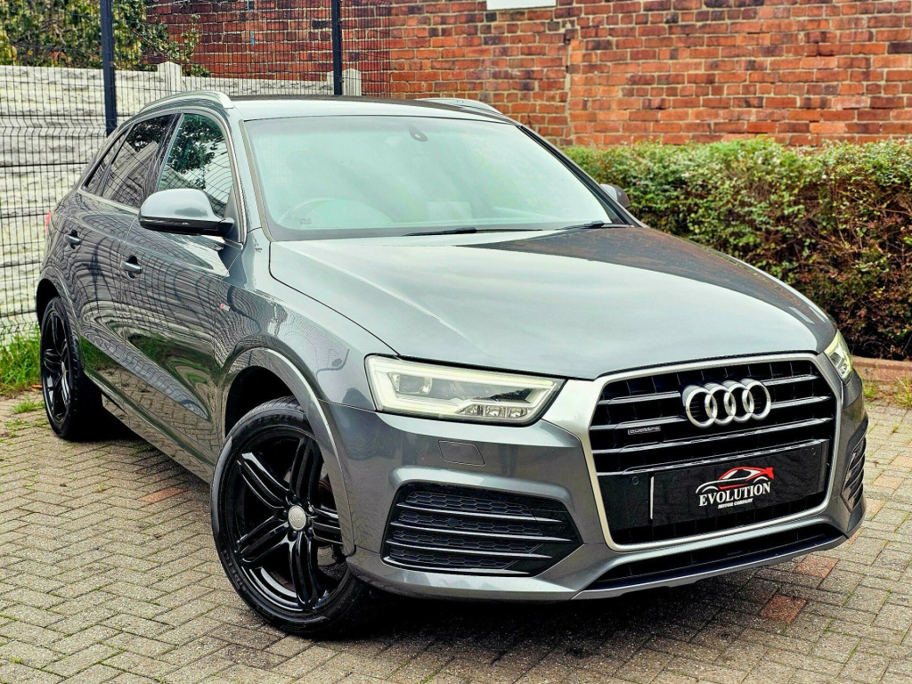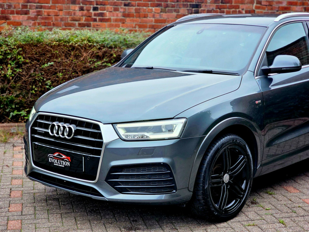 This Audi Q3 TDI S line Plus from 2015 offers a sophisticated driving experience with its powerful 2.0L Diesel engine and Four Wheel Drive system. Finished in a striking colour and featuring the desirable Audi Exclusive Black Styling Package, this Euro 6 compliant model also boasts the S line Plus trim for an enhanced aesthetic. Inside, you'll find the LED Interior Light Package for a premium ambiance, while the Audi Parking System Plus with Park Assist, including front and rear sensors, makes manoeuvring effortless. The heated, electrically adjustable, folding, and auto dimming driver's door mirror adds further convenience.The performance of this Q3 is noteworthy, achieving 0-60mph in just 7.6 seconds, demonstrating its dynamic capability. This acceleration figure highlights how this vehicle offers a more responsive drive compared to many others in its class. Furthermore, the inclusion of Audi Hill Hold Assist provides added confidence when starting on inclines, ensuring a smoother and safer journey.Why Buy From Us? Competitive Finance Rates - Affordable finance options available to suit your budget. Viewing by Appointment Only - Schedule a test drive with our expert sales team. Nationwide Delivery Available £1.70pm - Hassle-free delivery to your doorstep. Part Exchange Welcome - Competitive trade-in valuations offered. Open 7 Days a Week - Convenient hours to suit your schedule. Call us today on 07513601561 to request a personalised video or arrange a viewing. Visit www.evolutionmotorcompanyltd.co.uk to explore our full range of stock.While we make every effort to ensure accuracy, please confirm all details with our sales team before visiting.MOT: 12 Months Included if under 6 months (Free)• Warranty: Complimentary 3-Month Warranty di parking system plus with park assist, 19in alloy wheels - 5-spoke v design titanium finish, audi exclusive black styling package, door mirrors - heated-electrically adjustable-folding-auto-dimming drivers, heated front seats, led interior light package, non-smoking package, perforated alcantara-leather - sports seats - s line embossed - black, audi active lane assist, audi hill hold assist, hill descent control, speed limit display, s line suspension, suspension - damper control, 12v power socket - rear centre console, 19in alloy wheels - 5-segment-spoke design, 6.5in display screen, 7-digit postcode recognition, abs - anti-lock braking system, ami - audi music interface, asr - anti slip regulation, airbags - driver, airbags - front passenger, airbags - front side, airbags - head system, alarm - thatcham category 1, all weather led headlights, aluminium-effect door mirror housings, anti theft locking wheel bolts, audi drive select, audi parking system plus, auto-dimming rear-view mirror, automatic wipers with rain sensor, brake lights - led, bumpers - front and rear - s line design, car jack, cloth headlining in black, comfort package, concert radio - mp3/cd player, cruise control, dab digital radio, dashboard - black, diffuser insert and centre front spoiler lip painted in platinum grey, door mirrors - automatic kerb view dipping function when reversing, door mirrors - body coloured with integrated led indicators, door mirrors - heated-electrically adjustable-folding, door sill trims with s line logo, drivers information system - dis, dual-zone electronic climate control, dynamic rear indicators, dynamic suspension, ebd - electronic brakeforce distribution, edl - electronic differential lock, esp - electronic stability programme, electric windows - front and rear, electrically adjustable 4-way lumbar support, electromechanical parking brake, electromechanical power steering, exhaust tailpipe - chrome plated, first aid kit, floor mats - front and rear in velour, folding storage compartment in front centre armrest, front centre armrest - adjustable, front fog lights, front passenger airbag deactivation switch, full european map data, full paint finish, gear knob - perforated leather, headlights - automatic activation, headlights - automatic adjustment, headlights - automatic dynamic range control, headlights - coming-leaving home function, headlights - high-beam assist, headlights washers, heated windscreen washer jets, isofix child seat mounting for front passenger, isofix child seat preparation for rear seats with top tether, inlays - matt brushed aluminium, led daytime running lights, led rear indicators, led rear lights, manual front seat adjustment, mobile telephone preparation - bluetooth interface, parking sensors - front, power operated tailgate, privacy glass, radiator grille - with vertical chrome bars, rear parking sensors, remote central locking with 2 fold away keys, reversible luggage compartment floor, roof rails - aluminium, s line badges on front wings, s line body styling, sdhc card reader x2, satellite navigation system - sd card based, seat belt reminder, seats - front sports - s line embossed, secondary collision brake assist, smoking package, space saver spare wheel, speakers x8, split-folding rear seats, stainless steel loading sill protector, steering wheel - 3-spoke leather-multifunction-shift paddles-q-design, steering wheel - gear-shift paddles, steering wheel - height and reach adjustable, steering wheel - multi-function, sunband for windscreen, tp memo - automatically saves traffic news, tool kit, towbar preparation, trip computer, tyre pressure monitoring system, voice control - telephone, warning triangle, washer fluid level indicator, window surrounds - aluminium