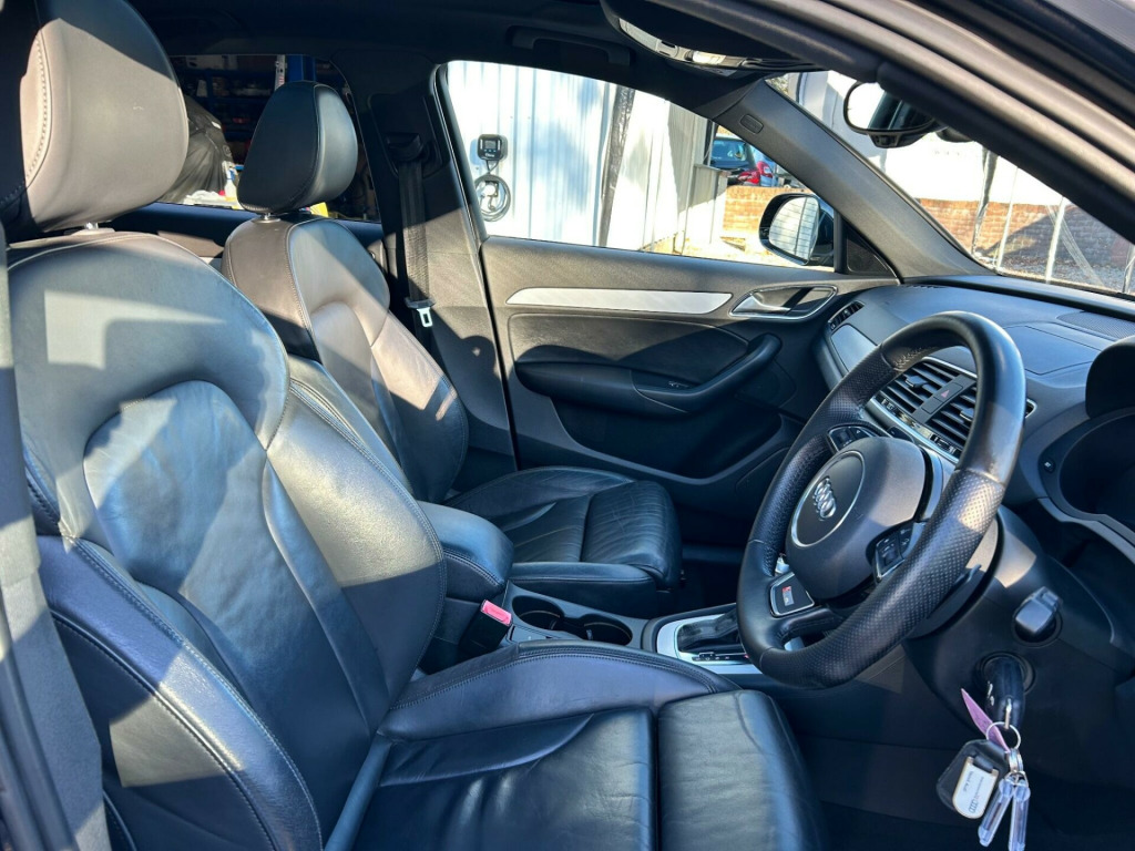 This Audi Q3 TDI S line Plus from 2015 boasts a clear vehicle history, offering you peace of mind. This stylish SUV features a powerful 2.0 litre diesel engine paired with Four Wheel Drive for confident handling in various conditions. As a Euro 6 compliant vehicle, it meets modern emissions standards. The S line Plus trim enhances its appeal, and you'll appreciate the convenience of Dual Zone Electronic Climate Control, Rear Parking Sensors, Front Parking Sensors, and Bluetooth connectivity for hands-free calls. Automatic headlights further add to the ease of driving.Experience impressive efficiency with a highlighted fuel economy of 53 miles per gallon, making this Q3 an economical choice. Its acceleration from 0 to 60 miles per hour in just 9.0 seconds demonstrates a good balance of performance and economy. Furthermore, its low insurance group rating indicates that running costs are kept to a minimum, setting it apart from many other vehicles in its class. se surround sound system, audi side assist, 19in alloy wheels - 5-double-spoke off-road design, audi exclusive black styling package, panoramic glass sunroof, heated front seats, led interior light package, 12v power socket - rear centre console, 19in alloy wheels - 5-segment-spoke design, 6.5in display screen, 7-digit postcode recognition, abs - anti-lock braking system, ami - audi music interface, asr - anti slip regulation, airbags - driver, airbags - front passenger, airbags - front side, airbags - head system, alarm - thatcham category 1, all weather led headlights, aluminium-effect door mirror housings, anti theft locking wheel bolts, audi drive select, audi parking system plus, auto-dimming rear-view mirror, automatic wipers with rain sensor, brake lights - led, bumpers - front and rear - s line design, car jack, cloth headlining in black, comfort package, concert radio - mp3/cd player, cruise control, dab digital radio, dashboard - black, diffuser insert and centre front spoiler lip painted in platinum grey, door mirrors - automatic kerb view dipping function when reversing, door mirrors - body coloured with integrated led indicators, door mirrors - heated-electrically adjustable-folding, door sill trims with s line logo, drivers information system - dis, dual-zone electronic climate control, dynamic rear indicators, dynamic suspension, ebd - electronic brakeforce distribution, edl - electronic differential lock, esp - electronic stability programme, electric windows - front and rear, electrically adjustable 4-way lumbar support, electromechanical parking brake, electromechanical power steering, exhaust tailpipe - chrome plated, first aid kit, floor mats - front and rear in velour, folding storage compartment in front centre armrest, front centre armrest - adjustable, front fog lights, front passenger airbag deactivation switch, full european map data, full paint finish, gear knob - perforated leather, headlights - automatic activation, headlights - automatic adjustment, headlights - automatic dynamic range control, headlights - coming-leaving home function, headlights - high-beam assist, headlights washers, heated windscreen washer jets, isofix child seat mounting for front passenger, isofix child seat preparation for rear seats with top tether, inlays - matt brushed aluminium, led daytime running lights, led rear indicators, led rear lights, manual front seat adjustment, mobile telephone preparation - bluetooth interface, parking sensors - front, power operated tailgate, privacy glass, radiator grille - with vertical chrome bars, rear parking sensors, remote central locking with 2 fold away keys, reversible luggage compartment floor, roof rails - aluminium, s line badges on front wings, s line body styling, sdhc card reader x2, satellite navigation system - sd card based, seat belt reminder, seats - front sports - s line embossed, secondary collision brake assist, smoking package, space saver spare wheel, speakers x8, split-folding rear seats, stainless steel loading sill protector, steering wheel - 3-spoke leather-multifunction-shift paddles-q-design, steering wheel - gear-shift paddles, steering wheel - height and reach adjustable, steering wheel - multi-function, sunband for windscreen, tp memo - automatically saves traffic news, tool kit, towbar preparation, trip computer, tyre pressure monitoring system, voice control - telephone, warning triangle, washer fluid level indicator, window surrounds - aluminium