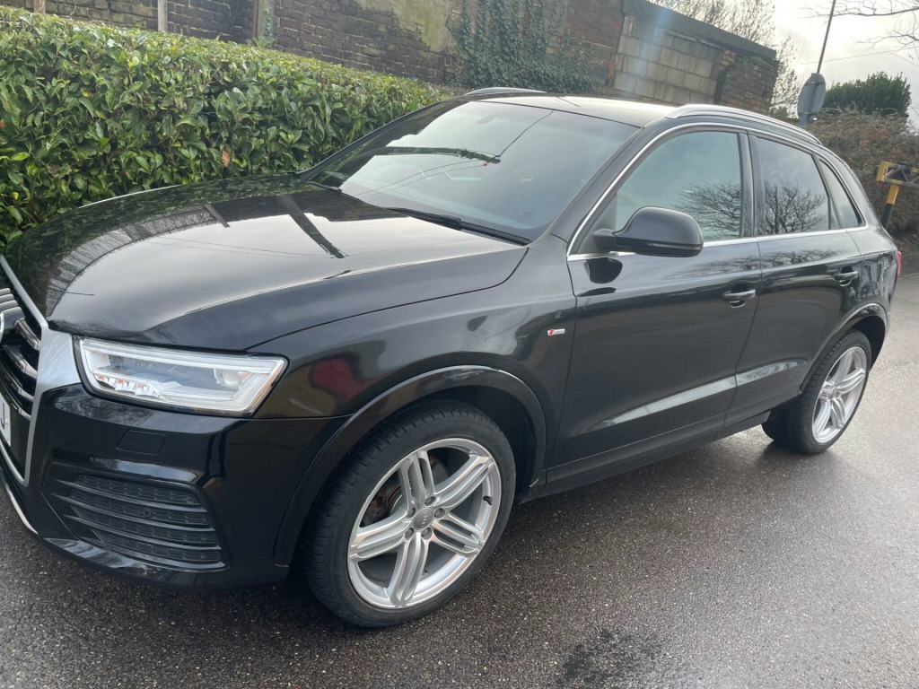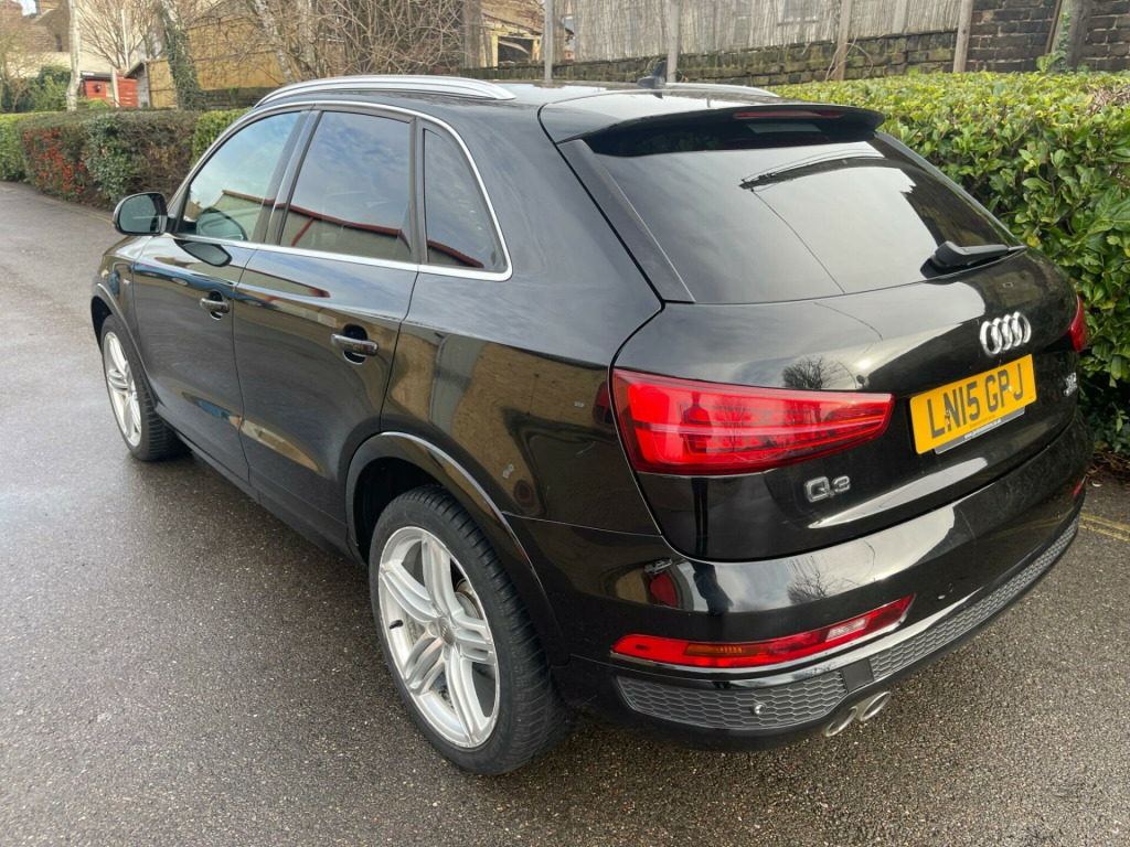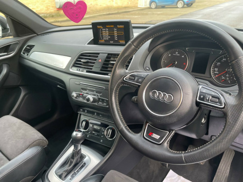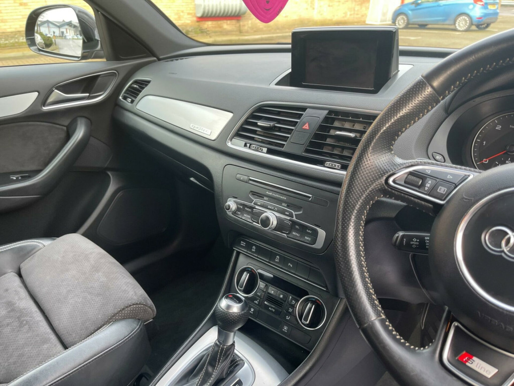 This Audi Q3 TDI S line Plus from 2015 boasts a single owner from new, offering excellent provenance. This stylish SUV features a powerful 2.0 litre diesel engine paired with four wheel drive for confident handling in all conditions. It meets Euro 6 emissions standards, ensuring efficient performance. Notable features include all weather LED headlights with automatic activation, front parking sensors for easier manoeuvring, and a Bluetooth interface for seamless mobile phone connectivity. Inside, you'll find dual zone electronic climate control to keep everyone comfortable.The Q3 TDI S line Plus is designed for a dynamic driving experience, highlighted by its impressive 0-60mph acceleration time of just 7.6 seconds. This performance, combined with its advanced features and the assurance of a single owner, positions this vehicle as a superior choice compared to other similar models on the market. v power socket - rear centre console, 19in alloy wheels - 5-segment-spoke design, 6.5in display screen, 7-digit postcode recognition, abs - anti-lock braking system, ami - audi music interface, asr - anti slip regulation, airbags - driver, airbags - front passenger, airbags - front side, airbags - head system, alarm - thatcham category 1, all weather led headlights, aluminium-effect door mirror housings, anti theft locking wheel bolts, audi drive select, audi parking system plus, auto-dimming rear-view mirror, automatic wipers with rain sensor, brake lights - led, bumpers - front and rear - s line design, car jack, cloth headlining in black, comfort package, concert radio - mp3/cd player, cruise control, dab digital radio, dashboard - black, diffuser insert and centre front spoiler lip painted in platinum grey, door mirrors - automatic kerb view dipping function when reversing, door mirrors - body coloured with integrated led indicators, door mirrors - heated-electrically adjustable-folding, door sill trims with s line logo, drivers information system - dis, dual-zone electronic climate control, dynamic rear indicators, dynamic suspension, ebd - electronic brakeforce distribution, edl - electronic differential lock, esp - electronic stability programme, electric windows - front and rear, electrically adjustable 4-way lumbar support, electromechanical parking brake, electromechanical power steering, exhaust tailpipe - chrome plated, first aid kit, floor mats - front and rear in velour, folding storage compartment in front centre armrest, front centre armrest - adjustable, front fog lights, front passenger airbag deactivation switch, full european map data, full paint finish, gear knob - perforated leather, headlights - automatic activation, headlights - automatic adjustment, headlights - automatic dynamic range control, headlights - coming-leaving home function, headlights - high-beam assist, headlights washers, heated windscreen washer jets, isofix child seat mounting for front passenger, isofix child seat preparation for rear seats with top tether, inlays - matt brushed aluminium, led daytime running lights, led rear indicators, led rear lights, manual front seat adjustment, mobile telephone preparation - bluetooth interface, parking sensors - front, power operated tailgate, privacy glass, radiator grille - with vertical chrome bars, rear parking sensors, remote central locking with 2 fold away keys, reversible luggage compartment floor, roof rails - aluminium, s line badges on front wings, s line body styling, sdhc card reader x2, satellite navigation system - sd card based, seat belt reminder, seats - front sports - s line embossed, secondary collision brake assist, smoking package, space saver spare wheel, speakers x8, split-folding rear seats, stainless steel loading sill protector, steering wheel - 3-spoke leather-multifunction-shift paddles-q-design, steering wheel - gear-shift paddles, steering wheel - height and reach adjustable, steering wheel - multi-function, sunband for windscreen, tp memo - automatically saves traffic news, tool kit, towbar preparation, trip computer, tyre pressure monitoring system, voice control - telephone, warning triangle, washer fluid level indicator, window surrounds - aluminium