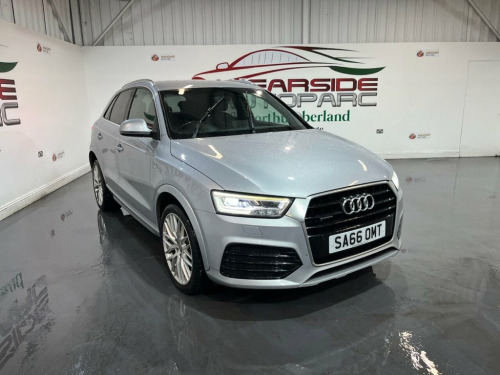 Stunning Audi Q3 2.0 TDI S Line Plus SUV 5dr Diesel Manual Quattro Euro 6 (s/s) (150 ps). This lovely car will come supplied with two keys and and Audi Main Dealer service history with services recorded at 9, 22 and 28 thousand miles. This two owner car has a fantastic specification which includes alloy wheels, rear parking sensors, electric tailgate, privacy glass, automatic lights, heated electric folding door mirrors, cruise control, NAV, DAB radio, bluetooth, climate control and half leather interior. 19in Alloy Wheels - 5-Double-Spoke Off-R, 3-Spoke Multi-Function Q-Design Steering, 4-Way Electric Lumbar Support for Front , 6.5in Display Screen, 8 Passive Speakers, AMI - Audi Music Interface, All Weather LED Headlights, Aluminium Roof Rails, Aluminium Window Trims, Anti Theft Locking Wheel Bolts, Audi Drive Select, Audi Parking System Plus, Auto-Dimming Rear-View Mirror, Bluetooth Interface, Body-Coloured Door Mirrors - Electricall, Bright Moulding, Chrome-Plated Trims for Exhaust System, Cloth Headlining and Dashboard in Black, Concert Radio, Cruise Control, DAB Digital Radio, Door Mirrors - Heated-Electrically Adjus, Door Sill Trims with S Line Logo, Driver - Front Passenger - Front Si