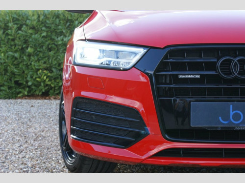 2015/65 Audi Q3 2.0 TDI 184BHP S-Line Plus Quattro finished in the stunning Misano red pearl with black half leather/alcantara interior. Specification includes exterior black styling package, black badges, black roof rails, 19 inch gloss black alloys, privacy glass, front and rear parking sensors, Bi-Xenon headlights with LED daytime running lights, electric tailgate, electric folding door mirrors, satellite navigation, DAB radio, Audi music interface, bluetooth, SD connection, CD player, dual zone climate control, multi-function steering wheel, cruise control, voice control, electric lumbar support for front seats, sliding centre armrest with storage, Audi drive select and auto lights. Full service history having had a total of 5 services and has just been freshly serviced in September 2025. 12V Power Socket - Rear Centre Console, 19in Alloy Wheels - 5-Double-Spoke Off-R, 19in Alloy Wheels - 5-Segment-Spoke Desi, 6.5in Display Screen, 7-Digit Postcode Recognition, ABS - Anti-Lock Braking System, Airbags - Driver, Airbags - Front Passenger, Airbags - Front Side, Airbags - Head System, Alarm - Thatcham Category 1, All Weather LED Headlights, AMI - Audi Music Interface, Anti Theft Locking Wheel Bolts, ASR - Anti Slip Regulation, Audi Drive Select, Audi Exclusive Black Styling Package, Audi Parking System Plus, Auto-Dimming Rear-View Mirror, Automatic Wipers with Rain Sensor, Black Roof Rails, Brake Lights - LED, Bumpers - Front and Rear - S Line Design, Car Jack, Cloth Headlining i