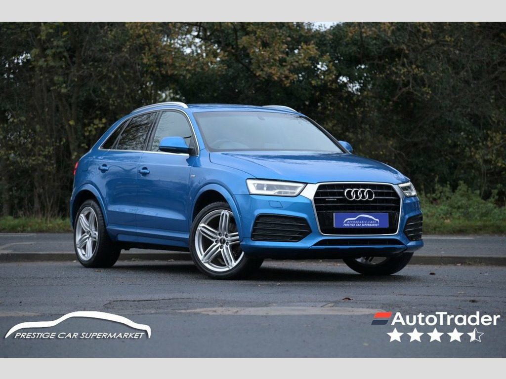 Prestige Car Supermarket in York presents this highly specified and capable 2015 Audi Q3 2.0 TDI S line Plus SUV. Finished in Hainan Blue paintwork, this five-door diesel model delivers 184 horsepower through a manual transmission and features quattro All-Wheel Drive, being Euro 6 compliant. The S line Plus specification boasts aggressive S line Body Styling, 19in 5-Segment-Spoke Design Alloy Wheels, Aluminium Roof Rails, and Privacy Glass. The interior features optional Black Perforated Alcantara and Leather Sports Seats with S Line Embossing, optional Heated Front Seats, Black Cloth Headlining, and Matt Brushed Aluminium Inlays. Technology includes the 6.5in Display Screen, DAB Digital Radio, All Weather LED Headlights with High-Beam Assist, and Dual-Zone Electronic Climate Control. Driver assistance and practicality are excellent, featuring the optional Audi Parking System Advanced with a Reversing Camera, Audi Parking System Plus, Cruise Control, Power Operated Tailgate, and Audi Drive Select, ensuring a connected, secure, and commanding driving experience. Heated Front Seats, Audi Parking System Advanced with Revers, Perforated Alcantara-Leather - Sports Se, Hainan Blue, 12V Power Socket - Rear Centre Console, 19in Alloy Wheels - 5-Segment-Spoke Desi, 6.5in Display Screen, 7-Digit Postcode Recognition, ABS - Anti-Lock Braking System, AMI - Audi Music Interface, ASR - Anti Slip Regulation, Airbags - Driver, Airbags - Front Passenger, Airbags - Front Side, Airbags - Head System, Alarm - Thatcham Category 1, All Weather LED Headlights, Anti Theft Locking Wheel Bolts, Audi Drive Select, Audi Parking System Plus, Auto-Dimming Rear-View Mirror, Automatic Wipers with Rain Sensor, Brake Lights - LED, Bumpers - Front and Rear - S Line Design, Cloth Hea