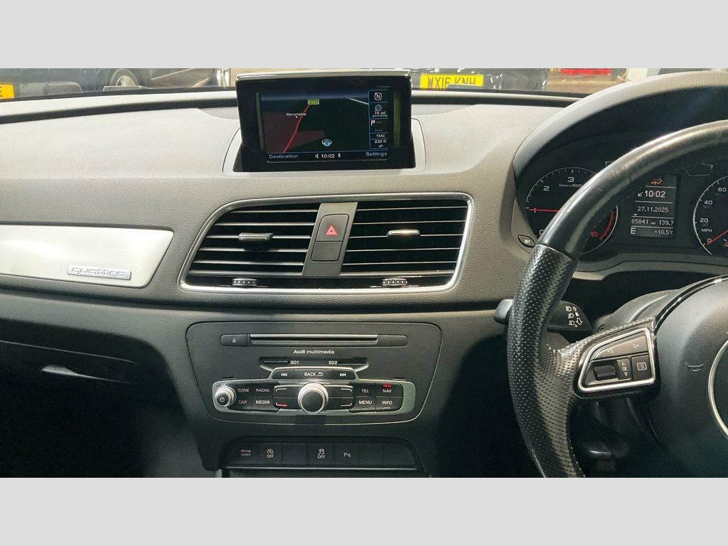 2016 AUDI Q3 2.0 TDI S LINE PLUS QUATTRO — AVAILABLE IN KIRKHAM This well-presented 2016 Audi Q3 2.0 TDI S line Plus Quattro is a refined, capable and economical premium SUV, offering strong performance alongside everyday practicality. It is an ideal choice for buyers seeking Audi build quality, a higher driving position and confident all-weather capability, whether for commuting, family use or longer motorway journeys. Powered by the Euro 6 compliant 2.0-litre TDI diesel engine, the Q3 delivers a smooth and assured driving experience with excellent efficiency, achieving up to 54 MPG combined. Performance is well balanced for real-world driving, with a 0–60 mph time of 9.0 seconds, while Audi's renowned Quattro all-wheel drive system provides additional grip and reassurance in all conditions. This example benefits from verified mileage and part service history and will be supplied with a full service completed on sale, ensuring it is fully prepared mechanically for its next owner. It is also supplied with a fresh 12 months MOT on sale, offering additional peace of mind from day one. The desirable S line Plus specification enhances both the interior and exterior, giving the Q3 a sportier, more premium presence. Inside, the cabin is finished to a high standard with quality materials and thoughtful design throughout. Features include a flat-bottom perforated leather steering wheel and upgraded S line detailing, creating a driver-focused and comfortable envir Flat-Bottomed Q3 3-Spoke Perforated Leat, Comfort Package Advanced, 19in Alloy Wheels - 5-Double-Spoke Off-R, 3-Spoke Multi-Function Q-Design Steering, 4-Way Electric Lumbar Support for Front , 6.5in Display Screen, 8 Passive Speakers, AMI - Audi Music Interface, All Weather LED Headlights, Aluminium Roof Rails, Aluminium Window Trims, Anti Theft Locking Wheel Bolts, Audi Drive Select, Audi Parking System Plus, Auto-Dimming Rear-View Mirror, Bluetooth Interface, Body-Coloured Door Mirrors - Electricall, Bright Moulding, Chrome-Plated Trims for Exhaust System, Cloth Headlining and Dashboard in Black, Concert Radio, Cruise Control, DAB Digital Radio, Door Mirrors - Heated-Electrically Adjus, D