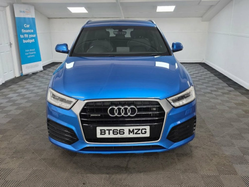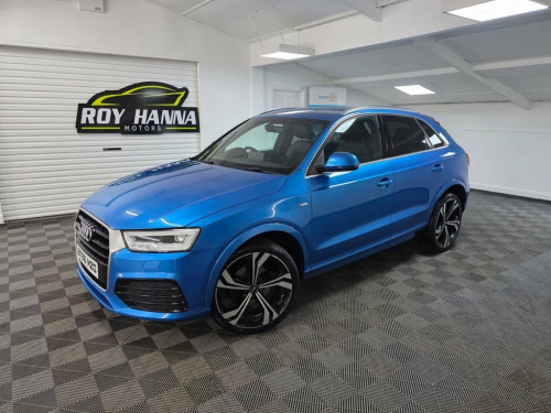 A truly beautiful 2016 Audi Q3 Quattro S Line Plus ready for viewing at Roy Hanna Motors! This car will be sold with a full years MOT! 3 services on service history 2 owners & 2 keys we have fully serviced this car and put 1 years mot on it, getting new brakes fitted etc, lovely motor in lovely colour **Brand new Alloy Wheels & Tyres shown in pictures are an optional extra ** * We have a variety of wheels to chose from for each vehicle* This model is packed full of factory extras like - ~ MMI - Multi Media Interface control system. ~ Front & rear parking sensors. ~ 6.5" colour display screen ~ Information display system. ~ Audi music interface. ~ Optional rear tinted windows. ~ Front fog lights. ~ Front sports seats. ~ Twin exhaust tailpipe. ~ Multi Media Interface control system. ~ Remote electric boot opening/closing. ~ Voice control system. ~ Remote central locking. ~ Climate and traction controls. ~ Steering wheel mounted controls. ~ AUX & USB connectivity. ~ CD/Radio Player. ~ Body Coloured Bumpers. ~ Electric windows. *We Have Many Different Finance HP & PCP Deals Available To Suit Your Budget, You Can Drive Away In Your New Car With £0 Deposit & Pay Nothing For 2 Full Months! *For A Personalised Quote Give Us A PM / Text / Call Or Propose Yourself For Finance On Our Website *All Usual Dealer Facilities Available. *Credit/Debit Cards Accepted. *Trade Ins Welcome. *Every Vehicle Comes With Warranty. *Every Vehicle Comes 19in Alloy Wheels - 5-Double-Spoke Off-R, 3-Spoke Multi-Function Q-Design Steering, 4-Way Electric Lumbar Support for Front , 6.5in Display Screen, 8 Passive Speakers, All Weather LED Headlights, Aluminium Roof Rails, Aluminium Window Trims, AMI - Audi Music Interface, Anti Theft Locking Wheel Bolts, Audi Drive Select, Audi Parking System Plus, Auto-Dimming Rear-View Mirror, Bluetooth Interface, Body-Coloured Door Mirrors - Electricall, Bright Moulding, Chrome-Plated Trims for Exhaust System, Cloth Headlining and Dashboard in Black, Concert Radio, Cruise Control, DAB Digital Radio, Door Mirrors - Heated-Electrically Adjus, Door Sill Trims with S Line Logo, Driver - Front Passenger - Front Si