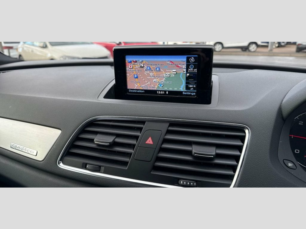 1 Former Keeper AUDI Q3 2.0 TDI S line in Glacier White with Black Half Leather / Alcantara S-line Sport Seats, Full Colour Satellite Navigation, Bluetooth Phone Connectivity, Multi - Function Steering Wheel with Cruise Control, Dual Climate Control with Air Conditioning. To the Exterior there is Acoustic Colour Coded Parking Sensors Front and Rear, Electric Folding and Heated Door Mirrors, Rear Sunscreen Privacy Glass and sits on 19" Five Spoke Silver Alloy Wheels. Complemented with Full Service History - Last Service Aug 2025, Cam Belt Replaced, Haldex Service Completed, 12 Month MOT with No Advisories, 2 Keys and 3 Month Warranty for your peace of mind. ***** We have over 650 Five Star Reviews on Auto Trader ***** and Highly Rated Award Winner for the 8th Year Running for Customer Service. Call Adrian on 07831 695 637 Door Mirrors - Heated-Electrically Adjus, 12V Power Socket - Rear Centre Console, 19in Alloy Wheels - 5-Segment-Spoke Desi, 6.5in Display Screen, 7-Digit Postcode Recognition, ABS - Anti-Lock Braking System, AMI - Audi Music Interface, ASR - Anti Slip Regulation, Airbags - Driver, Airbags - Front Passenger, Airbags - Front Side, Airbags - Head System, Alarm - Thatcham Category 1, Anti Theft Locking Wheel Bolts, Audi Parking System Plus, Auto-Dimming Rear-View Mirror, Automatic Wipers with Rain Sensor, Brake Lights - LED, Bumpers - Front and Rear - S Line Design, Car Jack, Cloth Headlining in Black, Concert Radio - MP3/CD Player, Cruise Control, DAB Digital Radio, Diffuser Insert and Centre F