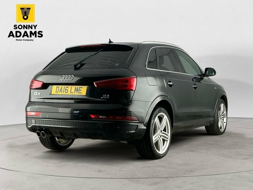 This Audi Q3 2.0 TDI S line Plus quattro is a premium SUV that combines strong diesel performance, confident all-wheel-drive capability, and striking S line styling. Powered by a robust 2.0 TDI engine producing 150 PS and paired with a smooth manual gearbox, this Euro 6–compliant model delivers excellent efficiency alongside assured traction in all driving conditions thanks to Audi's renowned quattro system. The exterior is enhanced by S line body styling, a high-gloss black S line radiator grille, 19-inch 5-double-spoke off-road alloy wheels, aluminium roof rails, aluminium window trims, privacy glass, LED tail lights, and chrome-plated exhaust trims. Practical touches such as a power-operated tailgate, towbar preparation, and reversible luggage compartment floor make it ideal for both family life and active lifestyles. Inside, the cabin offers a refined and sporty atmosphere with front sports seats, black cloth headlining, matt brushed aluminium inlays, and S line door sill trims. Comfort is enhanced by dual-zone electronic climate control, cruise control, electric windows front and rear, a front centre armrest, and 4-way electric lumbar support for the front seats. The adjustable 3-spoke multifunction Q-design steering wheel ensures a comfortable driving position on every journey. Technology and infotainment are well covered with a satellite navigation system, 6.5-inch display screen, Audi Music Interface, Bluetooth connectivity, DAB digital radio, voice cont 19in Alloy Wheels - 5-Double-Spoke Off-R, 3-Spoke Multi-Function Q-Design Steering, 4-Way Electric Lumbar Support for Front , 6.5in Display Screen, 8 Passive Speakers, AMI - Audi Music Interface, All Weather LED Headlights, Aluminium Roof Rails, Aluminium Window Trims, Anti Theft Locking Wheel Bolts, Audi Drive Select, Audi Parking System Plus, Auto-Dimming Rear-View Mirror, Bluetooth Interface, Body-Coloured Door Mirrors - Electricall, Bright Moulding, Chrome-Plated Trims for Exhaust System, Cloth Headlining and Dashboard in Black, Concert Radio, Cruise Control, DAB Digital Radio, Door Mirrors - Heated-Electrically Adjus, Door Sill Trims with S Line Logo, Driver - Front Passenger - Front Si