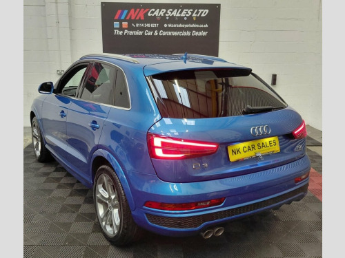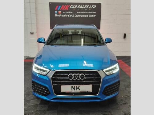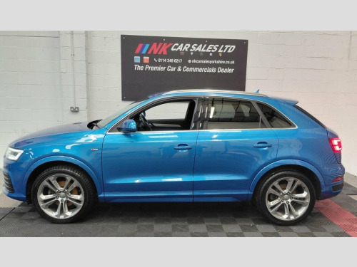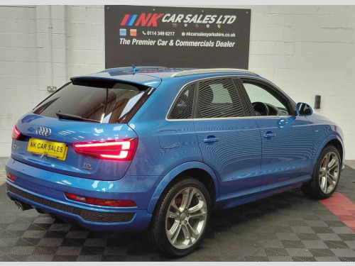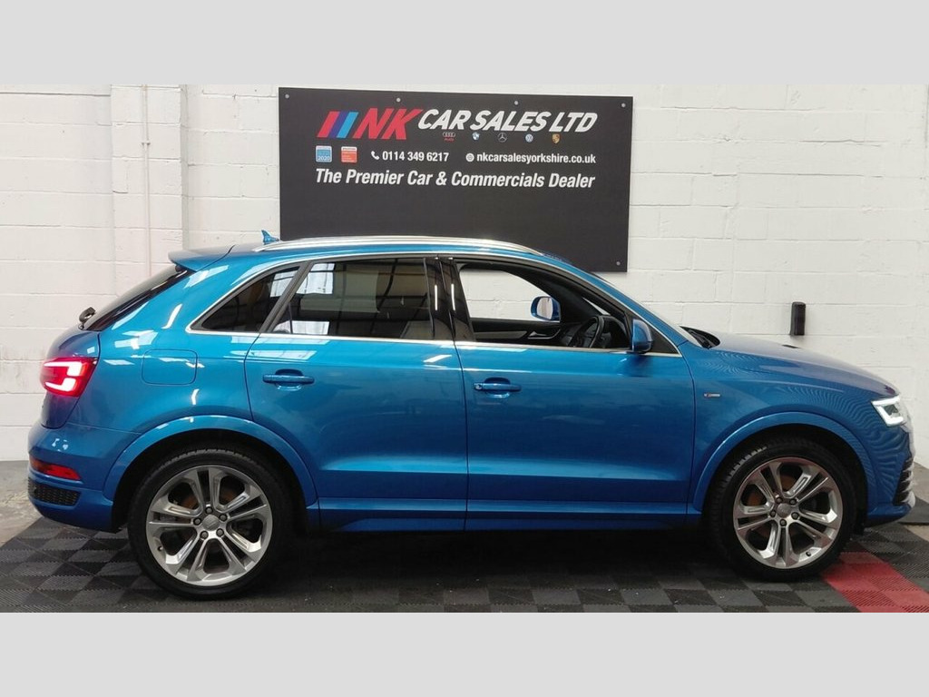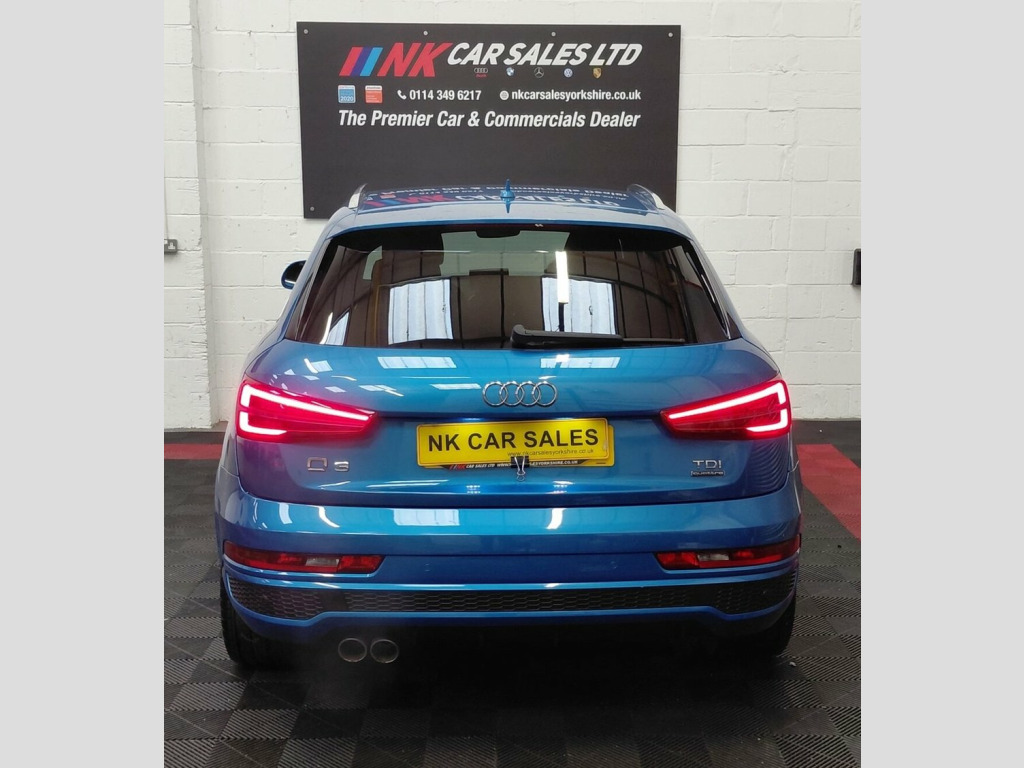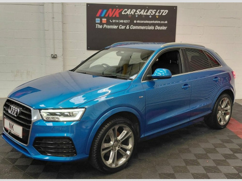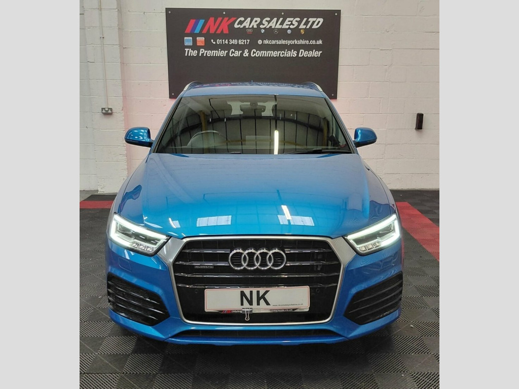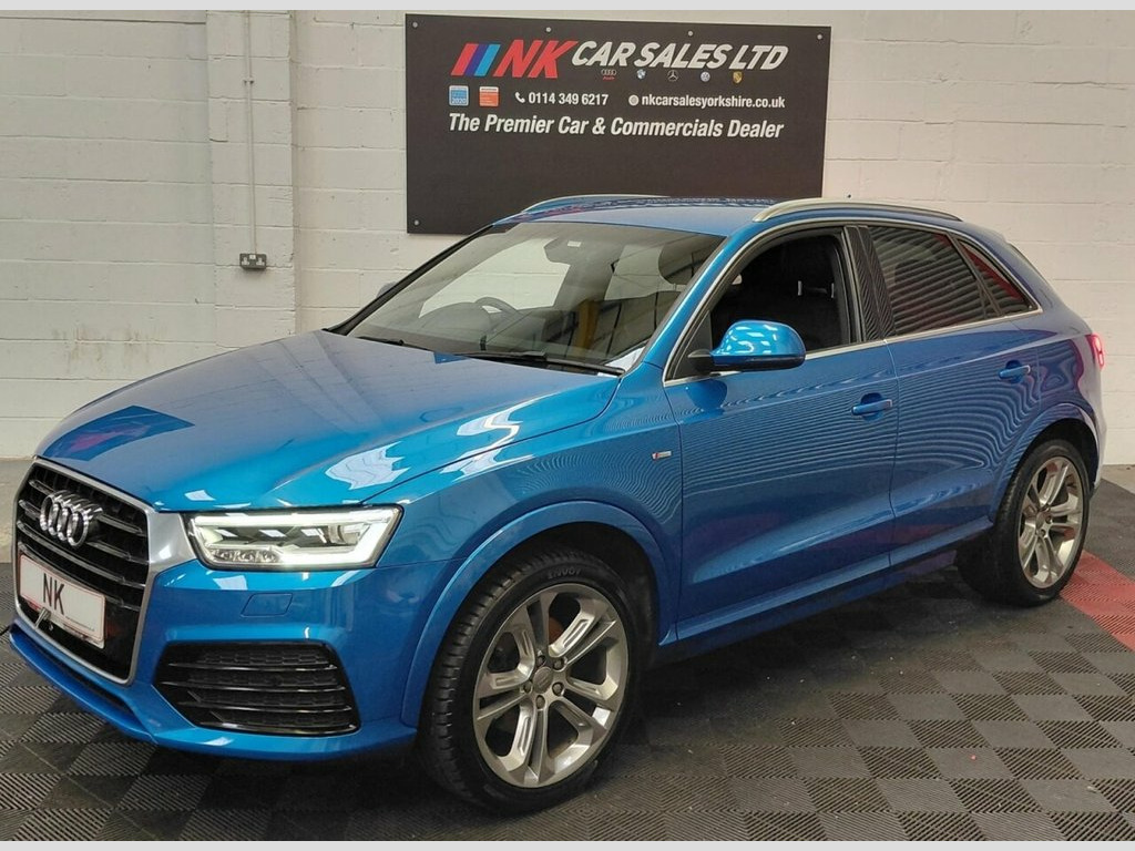 2016 AUDI Q3 2.0 TDI S line Plus SUV 5dr is offered to you for sale in Sheffield, South Yorkshire, finished in blue this AUDI Q3 2.0 TDI S line Plus SUV 5dr is one of many handpicked used cars that used car dealer, NK Car Sales, Sheffield, South Yorkshire have available for sale. We are a family-owned company that prides itself on the quality of vehicles and all of them are carefully chosen, handpicked examples that are always HPI Clear for your peace of mind. We have an indoor showroom where you can view any potential purchase in total comfort and away from the elements. We offer all the usual used Car Dealer facilities such as Low-rate finance and extended warranties and operate a no-pressure environment where you can relax and enjoy good old-fashioned service with a smile. 19in Alloy Wheels - 5-Double-Spoke Off-R, 3-Spoke Multi-Function Q-Design Steering, 4-Way Electric Lumbar Support for Front , 6.5in Display Screen, 8 Passive Speakers, All Weather LED Headlights, Aluminium Roof Rails, Aluminium Window Trims, AMI - Audi Music Interface, Anti Theft Locking Wheel Bolts, Audi Drive Select, Audi Parking System Plus, Auto-Dimming Rear-View Mirror, Bluetooth Interface, Body-Coloured Door Mirrors - Electricall, Bright Moulding, Chrome-Plated Trims for Exhaust System, Cloth Headlining and Dashboard in Black, Concert Radio, Cruise Control, DAB Digital Radio, Door Mirrors - Heated-Electrically Adjus, Door Sill Trims with S Line Logo, Driver - Front Passenger - Front Si