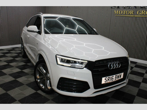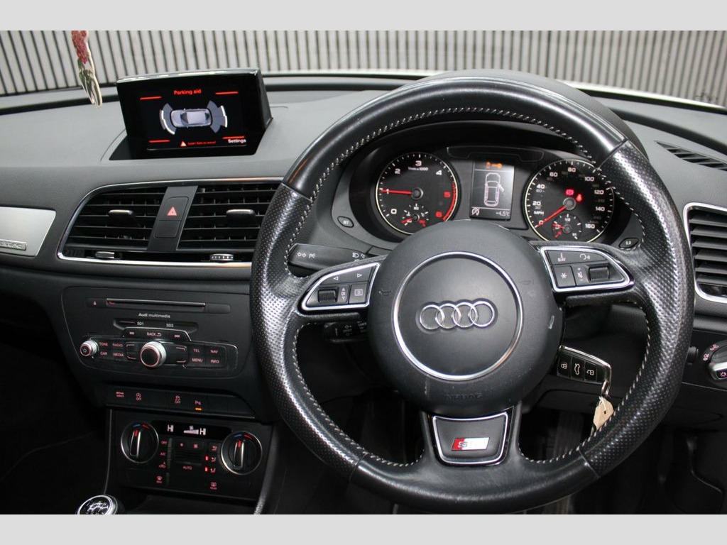 This 2016 Audi Q3 TDI S line Plus boasts an exceptionally low mileage, having last been serviced at just 15,468 miles on 4th April 2026, offering excellent provenance. This Four Wheel Drive model features a 2.0 litre Euro 6 diesel engine and comes equipped with All Weather LED Headlights, automatic headlight activation, and a Bluetooth interface for mobile telephone preparation. For added convenience, it includes front and rear parking sensors, making manoeuvring in tight spaces straightforward. The Audi Q3 TDI S line Plus is designed to be economical and efficient, achieving an impressive fuel economy of 54 miles per gallon. Its low CO2 emissions and low insurance group rating further highlight its cost effectiveness compared to similar vehicles. This combination of practical features, strong provenance, and economic benefits makes this Q3 a compelling choice. 12V Power Socket - Rear Centre Console, 19in Alloy Wheels - 5-Segment-Spoke Desi, 6.5in Display Screen, 7-Digit Postcode Recognition, ABS - Anti-Lock Braking System, AMI - Audi Music Interface, ASR - Anti Slip Regulation, Airbags - Driver, Airbags - Front Passenger, Airbags - Front Side, Airbags - Head System, Alarm - Thatcham Category 1, All Weather LED Headlights, Anti Theft Locking Wheel Bolts, Audi Drive Select, Audi Parking System Plus, Auto-Dimming Rear-View Mirror, Automatic Wipers with Rain Sensor, Brake Lights - LED, Bumpers - Front and Rear - S Line Design, Car Jack, Cloth Headlining in Black, Comfort Package, Concert Radio - MP3/CD Player, Cruise Control, DAB Digital Radio, Dashbo