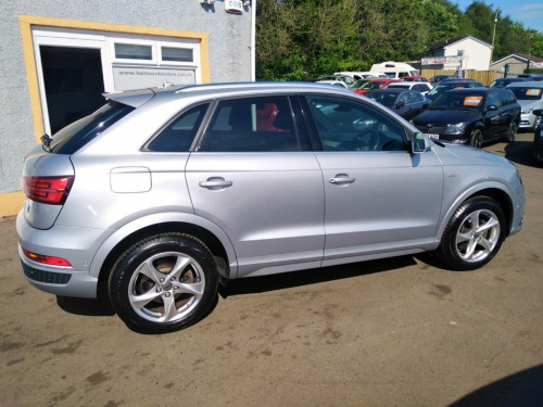 With only one owner from new, this 2015 Audi Q3 2.0L Diesel TDI S line Plus is a great example of a well-cared-for vehicle. Boasting low mileage for its age, with only 67299 miles, this Four Wheel Drive vehicle comes with a 3-month warranty and a clear vehicle history check for added peace of mind.. The S line Plus trim includes Audi Parking System Plus with Park Assist, featuring front and rear parking sensors to make parking a breeze. All Weather LED Headlights, including automatic activation, provide excellent visibility in all conditions. Stay connected on the go with Mobile Telephone Preparation via Bluetooth Interface. This Euro 6 emission class vehicle offers a blend of performance and practicality. The acceleration, reaching 0-60mph in just 7.6 seconds, indicates how this vehicle is better than other similar vehicles, offering a responsive and engaging driving experience. Rear Parking Sensors further enhance the ease of parking and manoeuvring in tight spaces.The car will be offered with a Free RAC inspection, Free 1 Yr MOT, Free RAC Warranty and Free 1Yr RAC Recovery package. We also offer finance packages to suit most credit profiles, for a free finance check apply online now at www.belmontautos.co.uk Please see our terms and conditions and status disclosure. 12V Power Socket - Rear Centre Console, 19in Alloy Wheels - 5-Segment-Spoke Desi, 6.5in Display Screen, 7-Digit Postcode Recognition, ABS - Anti-Lock Braking System, Airbags - Driver, Airbags - Front Passenger, Airbags - Front Side, Airbags - Head System, Alarm - Thatcham Category 1, All Weather LED Headlights, AMI - Audi Music Interface, Anti Theft Locking Wheel Bolts, ASR - Anti Slip Regulation, Audi Drive Select, Audi Parking System Plus, Audi Parking System Plus with Park Assis, Auto-Dimming Rear-View Mirror, Automatic Wipers with Rain Sensor, Brake Lights - LED, Bumpers - Front and Rear - S Line Design, Car Jack, Cloth Headlining in Black, Comfort Package, Concert Radio - MP3/CD Player,