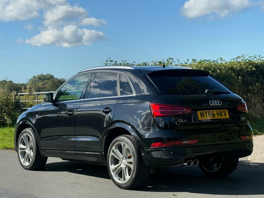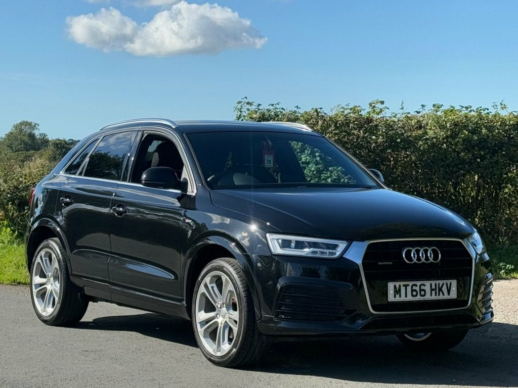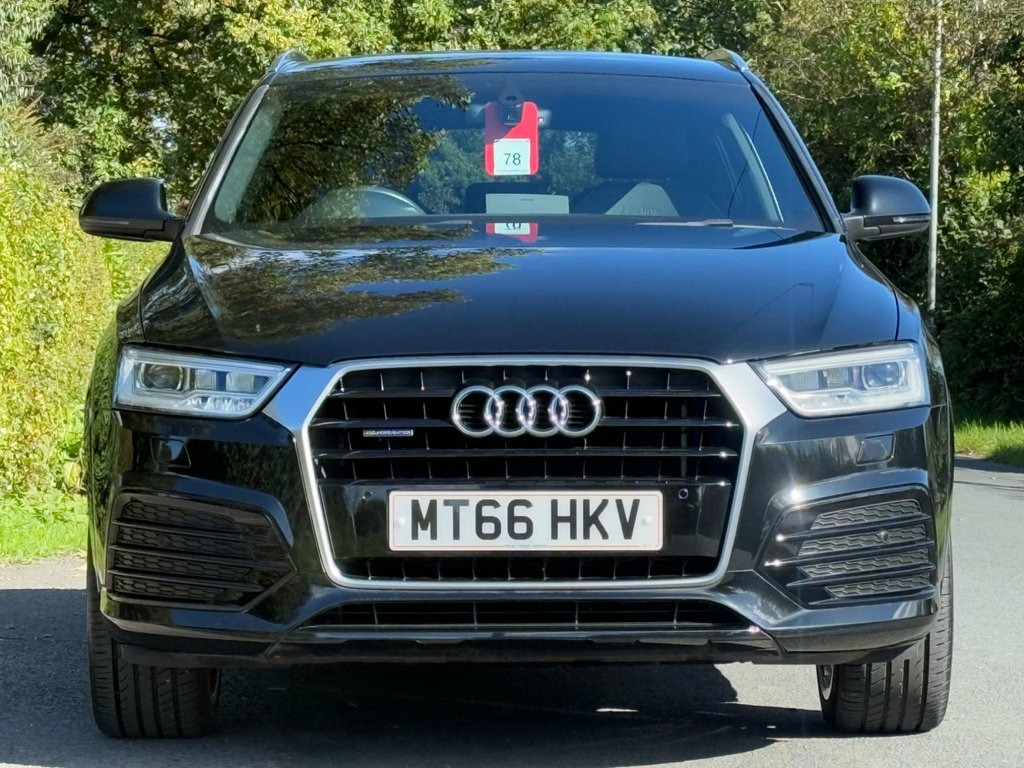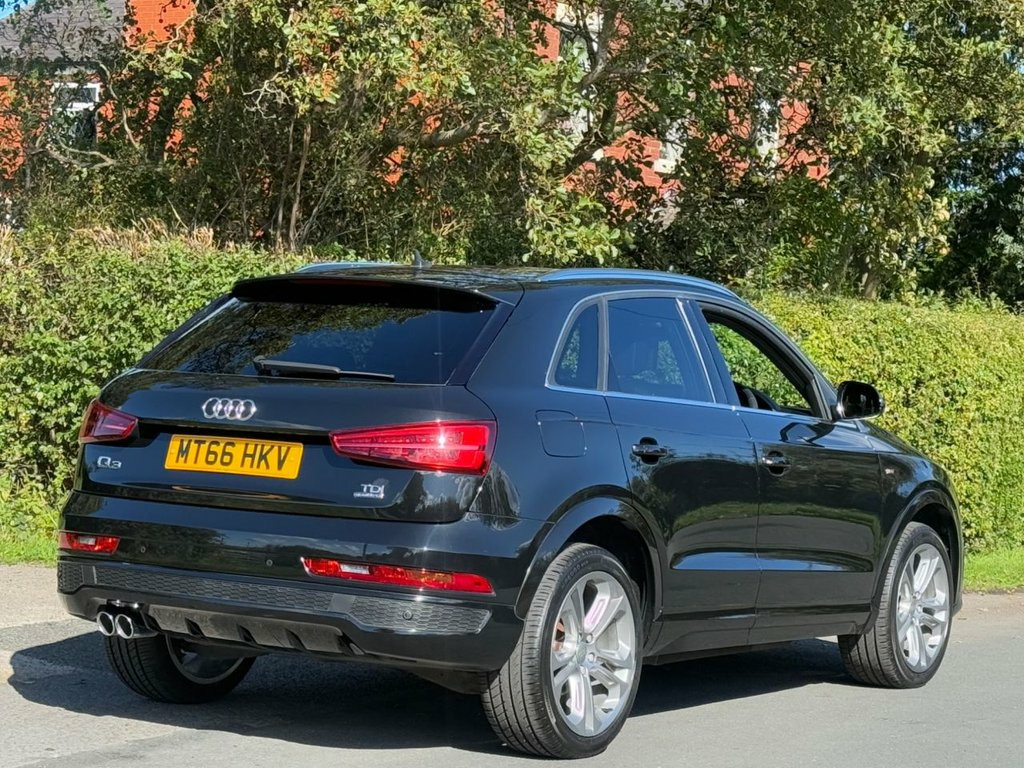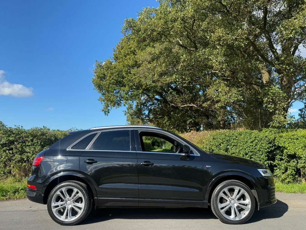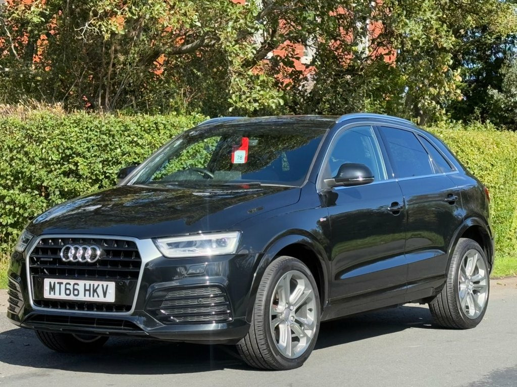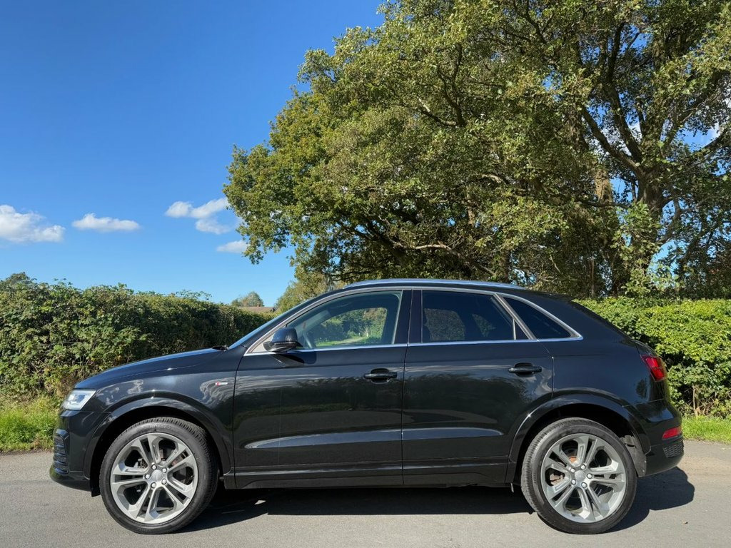 Great service history on this low mileage Audi Q3 2.0TDI S Line Plus S Tronic Quattro and having had 6 services 65 Audi 1 independent garage it has been very well maintained . Spec includes satellite navigation/ DAB radio/ leather/ Alcantara seats/ leather trimmed multi function steering wheel with paddle shift for gears/ climate control/ Audi drive select/ front + rear park sensors/ electric folding door mirrors/ cruise control/ spare wheel/ auto lights rain sense wipers/ power tailgate. privacy glass/ it is in excellent condition and supplied with a full MOT pre delivery inspection and warranty.. Mythos Black, Perforated Alcantara-Leather - Sports Se, Technology Package, Door Mirrors - Heated-Electrically Adjus, 19in Alloy Wheels - 10-Spoke Design in M, 19in Alloy Wheels - 5-Double-Spoke Off-R, 3-Spoke Multi-Function Q-Design Steering, 4-Way Electric Lumbar Support for Front , 6.5in Display Screen, 8 Passive Speakers, AMI - Audi Music Interface, All Weather LED Headlights, Aluminium Roof Rails, Aluminium Window Trims, Anti Theft Locking Wheel Bolts, Audi Drive Select, Audi Parking System Plus, Auto-Dimming Rear-View Mirror, Bluetooth Interface, Body-Coloured Door Mirrors - Electricall, Bright Moulding, Chrome-Plated Trims for Exhaust System, Cloth Headlining and Dashboard in Black, C
