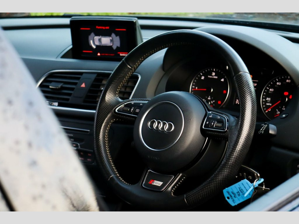 2017 Audi Q3 2.0 TDI S-Line Plus Quattro S-Tronic 184BHP Daytona Grey with Black Edition Styling No additional Duty to ROI, VRT is €6800 - MOT until September 2026 - Cruise Control - Sat Nav - Auto Headlights - Parking Sensors - Self Opening / Closing Boot Alloy Wheels are Optional Extra £895 No additional Duty to ROI, VRT is €6800 Finance options available with £0 deposit Part exchange welcome Check us out on Facebook, Instagram and Google reviews 19in Alloy Wheels - 5-Double-Spoke Off-R, 3-Spoke Multi-Function Q-Design Steering, 4-Way Electric Lumbar Support for Front , 6.5in Display Screen, 8 Passive Speakers, All Weather LED Headlights, Aluminium Roof Rails, Aluminium Window Trims, AMI - Audi Music Interface, Anti Theft Locking Wheel Bolts, Audi Drive Select, Audi Parking System Plus, Auto-Dimming Rear-View Mirror, Bluetooth Interface, Body-Coloured Door Mirrors - Electricall, Bright Moulding, Chrome-Plated Trims for Exhaust System, Cloth Headlining and Dashboard in Black, Concert Radio, Cruise Control, DAB Digital Radio, Door Mirrors - Heated-Electrically Adjus, Door Sill Trims with S Line Logo, Driver - Front Passenger - Front Si