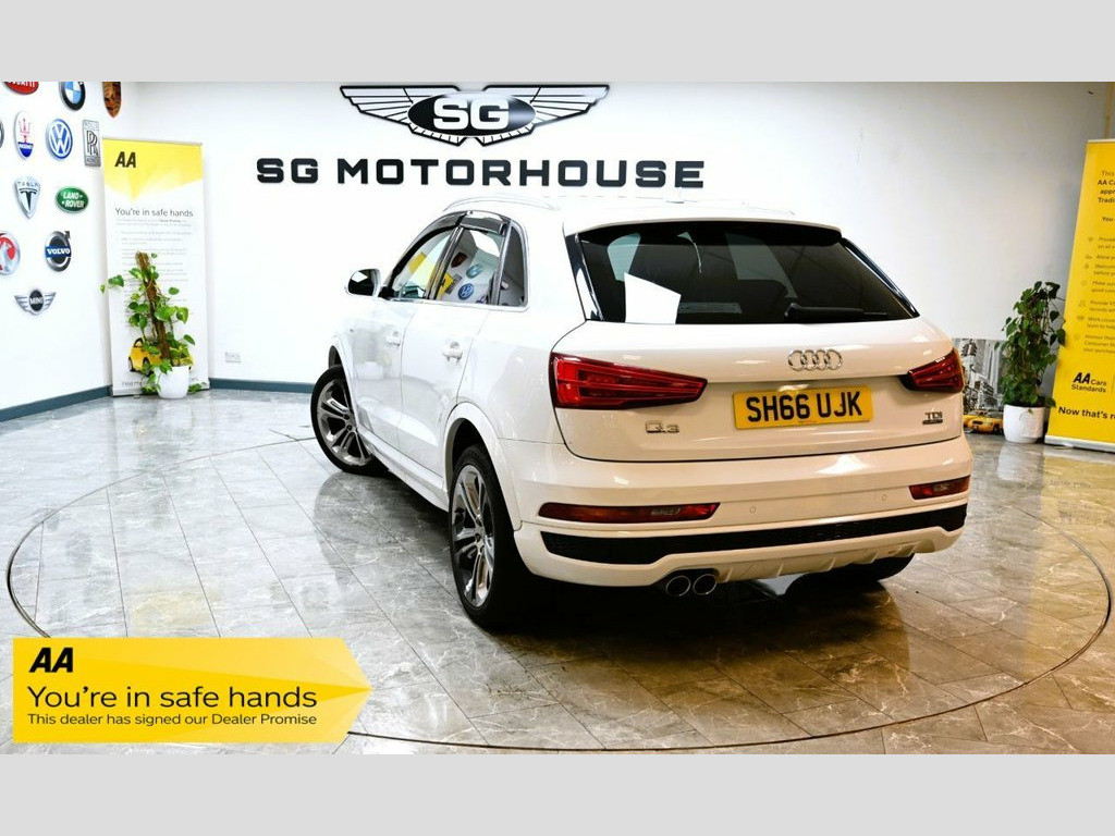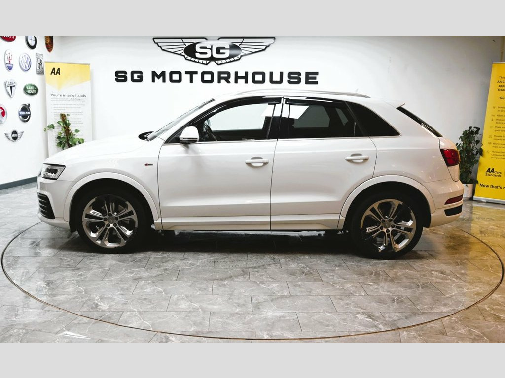 TOP SPEC - AUDI Q3 2.0 TDI S LINE PLUS / ULEZ # SERVICE HISTORY + SATELLITE NAVIGATION + HEATED SEATS + FRONT & REAR PARKING AID + HALF LEATHER INTERIOR + CRUISE CONTROL + AUDI MULTIMEDIA SCREEN / BLUETOOTH / BT AUDIO / RADIO / AUX + ECO FRIENDLY + START/STOP TECHNOLOGY + AUTOMATIC GEARBOX WITH PADDLE SHIFT + ELECTRIC PARKING BRAKE + AUTO LIGHTS + STEERING CONTROLS + ELECTRIC WINDOWS + ELECTRIC FOLDING DOOR MIRRORS + REAR HEATED SCREEN ##### FRESH SERVICE + 12 MONTHS MOT # CHECKED & INSPECTED ##### FREE 6 MONTHS NATIONWIDE WARRANTY (ALL MECHANICAL & ELECTRICAL - PARTS AND LABOUR INCLUDED) +++ FREE 12 MONTHS AA BREAKDOWN COVER ##### 0% DEPOSIT FINANCE AVAILABLE ##### ALL HPI CLEAR +++ ANY P/X WELCOME. Road Tax Opt, We accept all major CREDIT & DEBIT Cards, 5 Days Drive Away Insurance OPTIONAL, Located 5 mins from Hoddesdon OR Broxbourne train station, 21 High Street, EN11 8SX 19in Alloy Wheels - 5-Double-Spoke Off-R, 3-Spoke Multi-Function Q-Design Steering, 4-Way Electric Lumbar Support for Front , 6.5in Display Screen, 8 Passive Speakers, All Weather LED Headlights, Aluminium Roof Rails, Aluminium Window Trims, AMI - Audi Music Interface, Anti Theft Locking Wheel Bolts, Audi Drive Select, Audi Parking System Plus, Auto-Dimming Rear-View Mirror, Bluetooth Interface, Body-Coloured Door Mirrors - Electricall, Bright Moulding, Chrome-Plated Trims for Exhaust System, Cloth Headlining and Dashboard in Black, Concert Radio, Cruise Control, DAB Digital Radio, Door Mirrors - Heated-Electrically Adjus, Door Sill Trims with S Line Logo, Driver - Front Passenger - Front Si