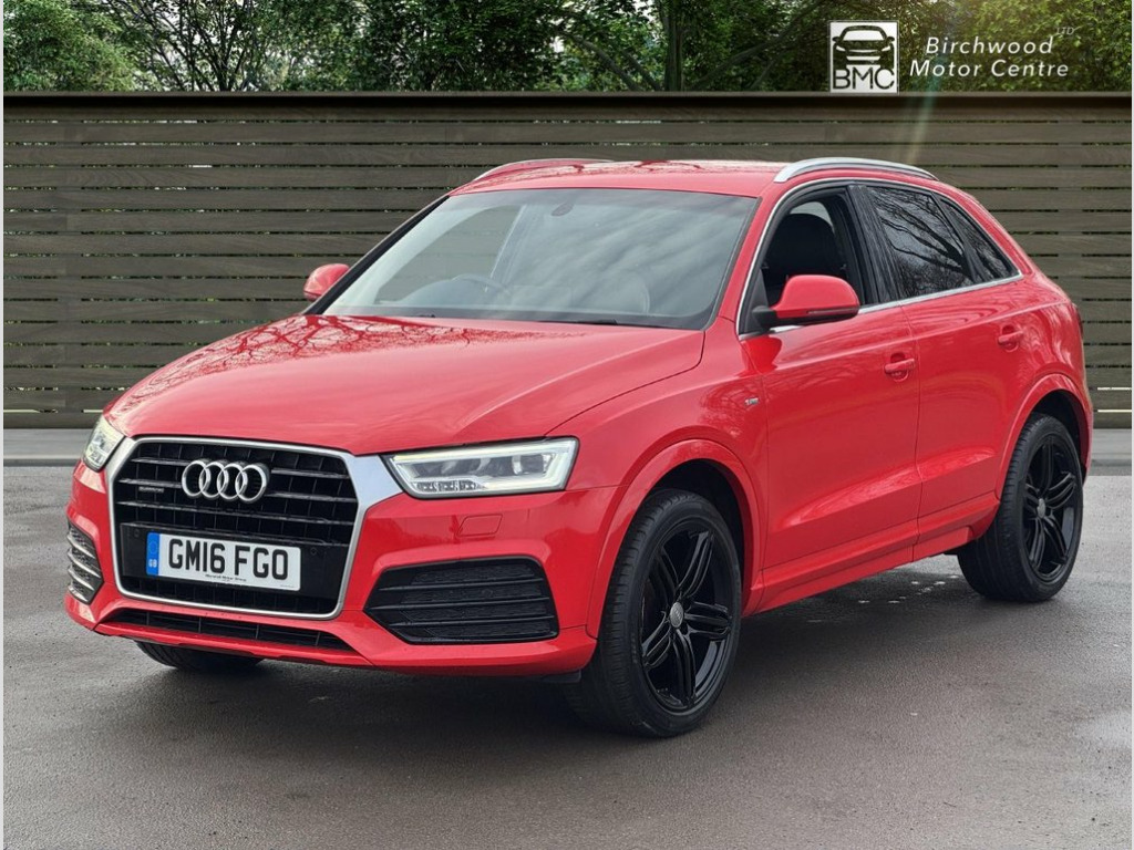 This 2016 Audi Q3 TDI S line Plus boasts exceptionally low mileage for its age, having covered just 52,000 miles. This desirable four wheel drive model is powered by an efficient 2.0 litre Euro 6 diesel engine, offering an impressive fuel economy of up to 53 miles per gallon. The S line Plus trim level is enhanced by the Audi Exclusive Black Styling Package, giving it a distinctive look. Inside, you'll find comfortable heated front seats, dual zone electronic climate control for personalised comfort, and a light and rain sensor that automatically adjusts headlights and wipers. The Bluetooth interface ensures seamless connectivity for your devices. This Audi Q3 is also in a low insurance group, making it an economical choice for many drivers. The combination of its fuel efficiency, low running costs, and the premium S line Plus specification with the sought after Black Styling Package clearly sets this vehicle apart from others in its class. It represents a well maintained and thoughtfully equipped example of the popular Q3 model. 19in Alloy Wheels - 5-Double-Spoke Off-R, 3-Spoke Multi-Function Q-Design Steering, 4-Way Electric Lumbar Support for Front , 6.5in Display Screen, 8 Passive Speakers, All Weather LED Headlights, Aluminium Roof Rails, Aluminium Window Trims, AMI - Audi Music Interface, Anti Theft Locking Wheel Bolts, Audi Drive Select, Audi Exclusive Black Styling Package, Audi Parking System Plus, Auto-Dimming Rear-View Mirror, Bluetooth Interface, Body-Coloured Door Mirrors - Electricall, Bright Moulding, Chrome-Plated Trims for Exhaust System, Cloth Headlining and Dashboard in Black, Concert Radio, Cruise Control, DAB Digital Radio, Door Mirrors - Heated-Electrically Adjus, Door Sill Trims with S Line Log