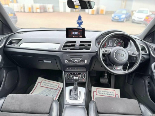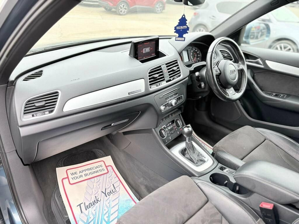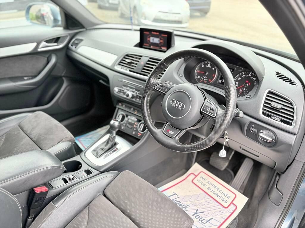 Boasting exceptionally low mileage for its age, this 2015 Audi Q3 TDI S line Plus is a compelling choice. This four wheel drive model features a 2.0 litre diesel engine and meets Euro 6 emissions standards. It comes with a clear vehicle history check and a 6 month warranty for your peace of mind. The Q3 also benefits from a partial service history, with the last service completed at 55,455 miles on 17 October 2025. For added convenience, it includes front and rear parking sensors with parking assistance, a Bluetooth interface for mobile telephone preparation, dual zone electronic climate control, and automatic activation headlights. A 12 month MOT will be provided upon purchase. This Audi Q3 offers impressive performance and economy, with a 0-60mph acceleration time of just 9.0 seconds. Its fuel economy is a notable highlight, achieving an excellent 53 miles per gallon, which is better than many similar vehicles. Furthermore, this Q3 sits in a low insurance group, making it an economical option to own and run. These combined highlights demonstrate the excellent value and desirability of this particular Q3. 1 YEAR MOT INC FULL SERVICE INC 6 MONTHS WARRANTY INC 12 months free breakdown AA cover included FREE TEMPORARY DRIVEAWAY INSURENCE COVER INCLUDED 2 KEYS 19"ALLOYS Half LEATHER INTERIOR HEATED SEATS ELECTRIC WING MIRRORS Sat Nav Privacy Glass Parking Sensors BEST USED CAR DEALS 12V Power Socket - Rear Centre Console, 19in Alloy Wheels - 5-Segment-Spoke Desi, 6.5in Display Screen, 7-Digit Postcode Recognition, ABS - Anti-Lock Braking System, AMI - Audi Music Interface, ASR - Anti Slip Regulation, Airbags - Driver, Airbags - Front Passenger, Airbags - Front Side, Airbags - Head System, Alarm - Thatcham Category 1, All Weather LED Headlights, Anti Theft Locking Wheel Bolts, Audi Drive Select, Audi Parking System Plus, Auto-Dimming Rear-View Mirror, Automatic Wipers with Rain Sensor, Brake Lights - LED, Bumpers - Front and Rear - S Line Design, Car Jack, Cloth Headlining in Black, Comfort Package, Concert Radio - MP3/CD Player, Cruise Control, DAB Digital Radio, Dashbo