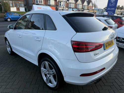 This 2014 Audi Q3 TDI S line offers excellent long term value with its MOT valid until September 2026, a fresh service and a 3 month warranty for your peace of mind. This stylish SUV features a powerful 2.0 litre diesel engine paired with a four wheel drive system, ensuring confident handling in various conditions. Inside, you'll find the comfort of heated front seats and a luxurious black Fine Nappa leather interior, complemented by striking 19 inch alloy wheels in a 5 segment spoke design. The S line trim enhances the vehicle's sporty appeal, while Bi Xenon Plus headlights provide excellent visibility. Experience impressive performance with this Q3, capable of accelerating from 0 to 60mph in just 8.1 seconds, a notable advantage over many similar vehicles. Furthermore, its position in a low insurance group makes it an economical choice for everyday driving. Practicality is also key, with rear parking sensors included to assist with manoeuvring. This Audi Q3 TDI S line combines sophisticated design, engaging performance, and practical features, making it a compelling option. Heated Front Seats, Fine Nappa Leather - Black, 19in Alloy Wheels - 5-Segment-Spoke Desi, Glacier White, 12V Power Socket - Rear Centre Console, 18in Alloy Wheels - 5-Double-Spoke Desig, 6.5in Display Screen, ABS - Anti-Lock Braking System, AMI - Audi Music Interface, ASR - Anti Slip Regulation, Airbags - Driver, Airbags - Front Passenger, Airbags - Front Side, Airbags - Head System, Alarm - Thatcham Category 1, Anti Theft Locking Wheel Bolts, Automatic Wipers with Rain Sensor, Brake Lights - LED, Bumpers - Front and Rear - S Line Design, Car Jack, Cloth Headlining in Black, Concert Radio - MP3/CD Player, DAB Digital Radio, Diffuser Insert and Centre Front Spoiler, Door Mirrors - Body Colour