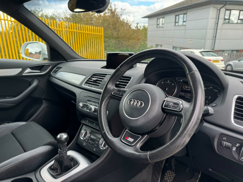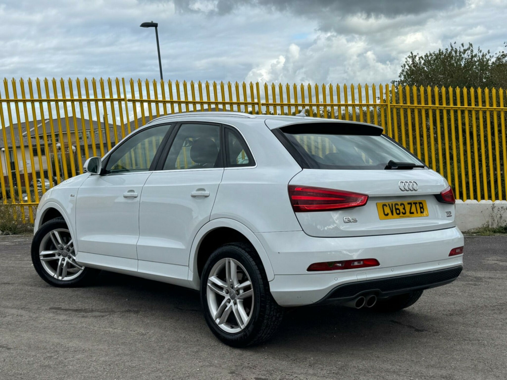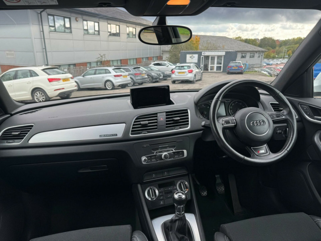 This Audi Q3 TDI S line from 2014 presents a compelling proposition with its remarkably low mileage of 90,000 miles for its age, coupled with a clear vehicle history check. Powered by a 2.0 litre diesel engine and featuring Audi's renowned Four Wheel Drive system, this S line trim model offers a sophisticated driving experience. Notable features include Bi Xenon Plus headlights for enhanced visibility, Dual Zone Electronic Climate Control to ensure comfort for all occupants, Acoustic Parking System for stress free manoeuvring, and Bluetooth interface for seamless mobile telephone connectivity.The Q3 TDI S line is also situated in a low insurance group, making it an economical choice for many drivers. These attributes, including its advanced lighting, climate control, parking assistance, and connectivity options, demonstrate how this particular Q3 stands out from other vehicles in its class, offering a well equipped and practical package. v power socket, 18in alloy wheels - 5-double-spoke design, 6.5in display screen, abs - anti-lock braking system, ami - audi music interface, asr - anti slip regulation, acoustic parking system - rear, airbags - driver, airbags - front passenger, airbags - front side, airbags - head system, alarm - thatcham category 1, aluminium roof rails, anthracite metallic finish on bumpers-wheel arch trims-lower door trims, anti theft locking wheel bolts, automatic wipers with rain sensor, brake lights - led, car jack, cloth headlining in black, concert radio - mp3/cd player, diffuser insert and centre front spoiler lip painted in platinum grey, door mirrors - body coloured with integrated led indicators, door mirrors - electrically adjustable and heated, door sill trims with s line logo, drivers information system - dis, dual-zone electronic climate control, dynamic suspension, ebd - electronic brakeforce distribution, edl - electronic differential lock, esp - electronic stability programme, efficiency program in the drivers information system - dis, electric windows - front and rear, electrically adjustable 4-way lumbar support, electromechanical parking brake, electromechanical power steering, exhaust tailpipe - chrome plated, first aid kit, fog lights - chrome surrounds, folding storage compartment in front centre armrest, front centre armrest - adjustable, front fog lights, front passenger airbag deactivation switch, front sports seats, front and rear floor mats, full paint finish, gear knob - perforated leather, glovebox - ventilated, headlights - automatic adjustment, headlights - automatic dynamic range control, headlights - bi-xenon plus, headlights - coming-leaving home function, headlights washers, heated windscreen washer jets, isofix child seat mounting for front passenger and rear outer seats, inlays - matt brushed aluminium, led daytime running lights, led rear indicators, led rear lights, mobile telephone preparation - bluetooth interface, preparation for sd card-based navigation system, radiator grille - with vertical chrome bars, rear air vents in rear centre console, remote central locking with 2 fold away keys, s line badges on wings, s line body styling, sdhc card reader x2, seat belt reminder, seats - drivers manual height adjustment, smoking package, speakers x8, split-folding rear seats, stainless steel loading sill protector, steering wheel - 3-spoke leather - multi-function - sports, steering wheel - height and reach adjustable, steering wheel - multi-function, sunband for windscreen, tp memo - automatically saves traffic news, thatcham category 1 immobiliser, tool kit, towbar preparation, tyre mobility system, voice control - telephone, warning triangle, washer fluid level indicator, window surrounds - aluminium