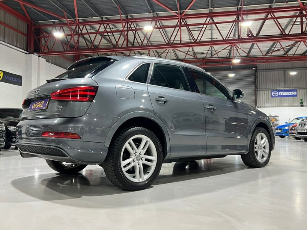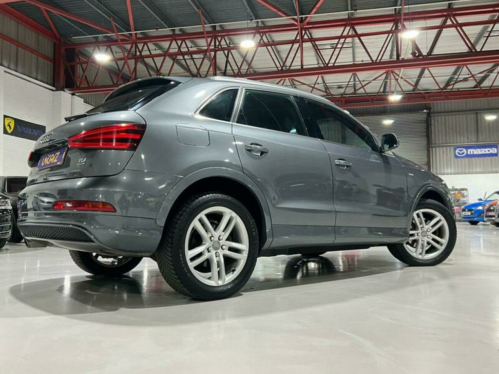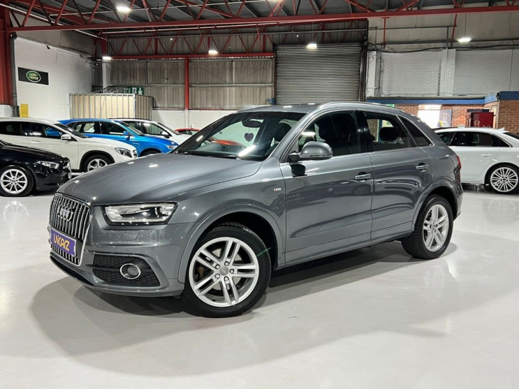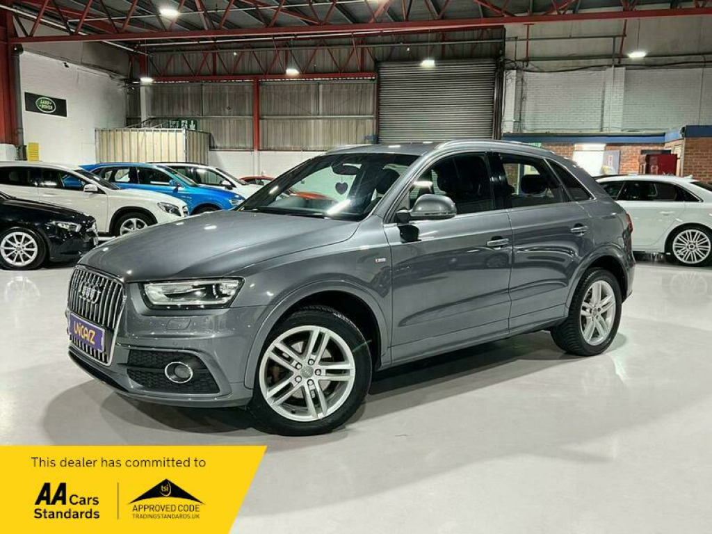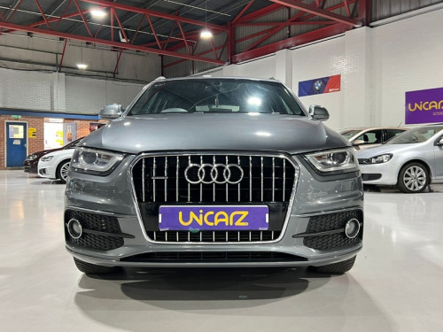 WELCOME TO UNICARZ LTD, WE ARE PLEASED TO OFFER YOU THIS 2014 AUDI Q3 2.0 TDI S-TRONIC S LINE QUATTRO, SERVICE HISTORY, 2KEYS,TIMING BELT AND WATER PUMP REPLACED, 12 MONTHS BASIC ROADSIDE ASSISTANCE, 3 MONTHS STANDARD NATIONWIDE WARRANTY, NAVIGATION SYSTEM, MOT WILL BE JUNE 2026, XENON HEADLIGHTS, LED DAYTIME RUNNING LIGHTS, HALF LEATHER, AIR CONDITIONING, MULTIFUNCTION STEERING WHEEL, CRUISE CONTROL, DRIVES EXCELLENT, PART EXCHANGE WELCOME, FINANCE AVAILABLE 12V Power Socket - Rear Centre Console, 18in Alloy Wheels - 5-Double-Spoke Design, 6.5in Display Screen, ABS, ABS - Anti-Lock Braking System, AMI - Audi Music Interface, ASR - Anti Slip Regulation, Airbags - Driver, Airbags - Front Passenger, Airbags - Front Side, Airbags - Head System, Alarm - Thatcham Category 1, Anti Theft Locking Wheel Bolts, Automatic Wipers with Rain Sensor, Bluetooth, Brake Assist, Brake Lights - LED, Bumpers - Front and Rear - S Line Design, Car Jack, Central Locking, Climate Control, Cloth Headlining in Black, Concert Radio - MP3/CD Player, DAB Digital Radio, Daytime Running Lights, Diffuser Insert and Centre Front Spoiler Lip Painted in Platinum Grey, Door Mirrors - Body Coloured with Integrated LED Indicators, Door Mirrors - Electrically Adjustable and Heated, Door Sill Trims with S Line Logo, Drivers Information System - DIS, Dual-Zone Electronic Climate Control, Dynamic Suspension, EBD - Electronic Brakeforce Distribution, EDL - Electronic Differential Lock, ESP, ESP - Electronic Stability Programme, Efficiency Program in the Drivers Information System - DIS, Electric Windows, Electric Windows - Front and Rear, Electrically Adjustable 4-Way Lumbar Support, Electromechanical Parking Brake, Electromechanical Power Steering, Exhaust Tailpipe - Chrome Plated, First Aid Kit, Fog Lights - Chrome Surrounds, Folding Rear Seats, Folding Storage Compartment in Front Centre Armrest, Front Airbags, Front Centre Armrest - Adjustable, Front Fog Lights, Front Passenger Airbag Deactivation Switch, Front Sports Seats, Front and Rear Floor Mats, Full Paint Finish, Gear Knob - Perforated Leather, Glovebox - Ventilated, Headlights - Automatic Activation, Headlights - Automatic Adjustment, Headlights - Automatic Dynamic Range Control, Headlights - Bi-Xenon Plus, Headlights - Coming-Leaving Home Function, Headlights Washers, Heated Door Mirrors, Heated Windscreen, Heated Windscreen Washer Jets, ISOFIX Child Seat Mounting for Front Passenger, ISOFIX Child Seat Preparation for Rear Seats with Top Tether, Inlays - Matt Brushed Aluminium, LED Daytime Running Lights, LED Lights, LED Rear Indicators, LED Rear Lights, Mobile Telephone Preparation - Bluetooth Interface, Parking Assistance, Power Assisted Steering, Preparation for SD Card-Based Navigation System, Radiator Grille - with Vertical Chrome Bars, Radio, Rain Sensor, Rear Parking Sensors, Rear air vents in rear centre console, Remote Central Locking with 2 Fold Away Keys, Reversible Luggage Compartment Floor, Roof Rails - Aluminium, S Line Badges on Front Wings, S Line Body Styling, SDHC Card Reader x2, Safety Belts, Seat Belt Reminder, Seats - Drivers Manual Height Adjustment, Seats - Front Sports - S Line Embossed, Seats - Sports, Side Impact Airbags, Smoking Package, Space Saver Spare Wheel, Spare Wheel, Speakers x8, Split-Folding Rear Seats, Sports Seats, Stainless Steel Loading Sill Protector, Steering Wheel - 3-Spoke Leather Trimmed Sports, Steering Wheel - Gear-Shift Paddles, Steering Wheel - Height and Reach Adjustable, Steering Wheel - Multi-function, Sunband for Windscreen, TP Memo - Automatically Saves Traffic News, Thatcham Category 1 Immobiliser, Tool Kit, Towbar Preparation, Traction Control, Tyre Pressure Monitoring System, Voice Control - Telephone, Warning Triangle, Washer Fluid Level Indicator, Window Surrounds - Aluminium