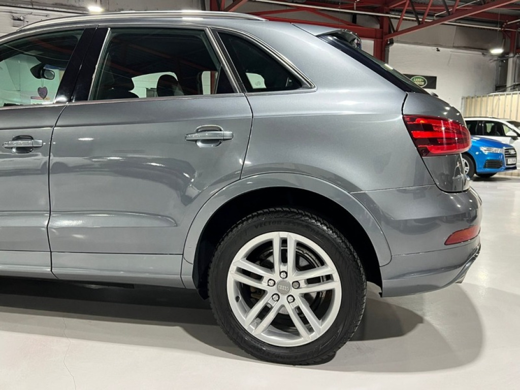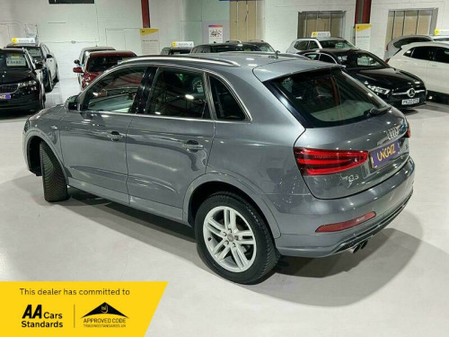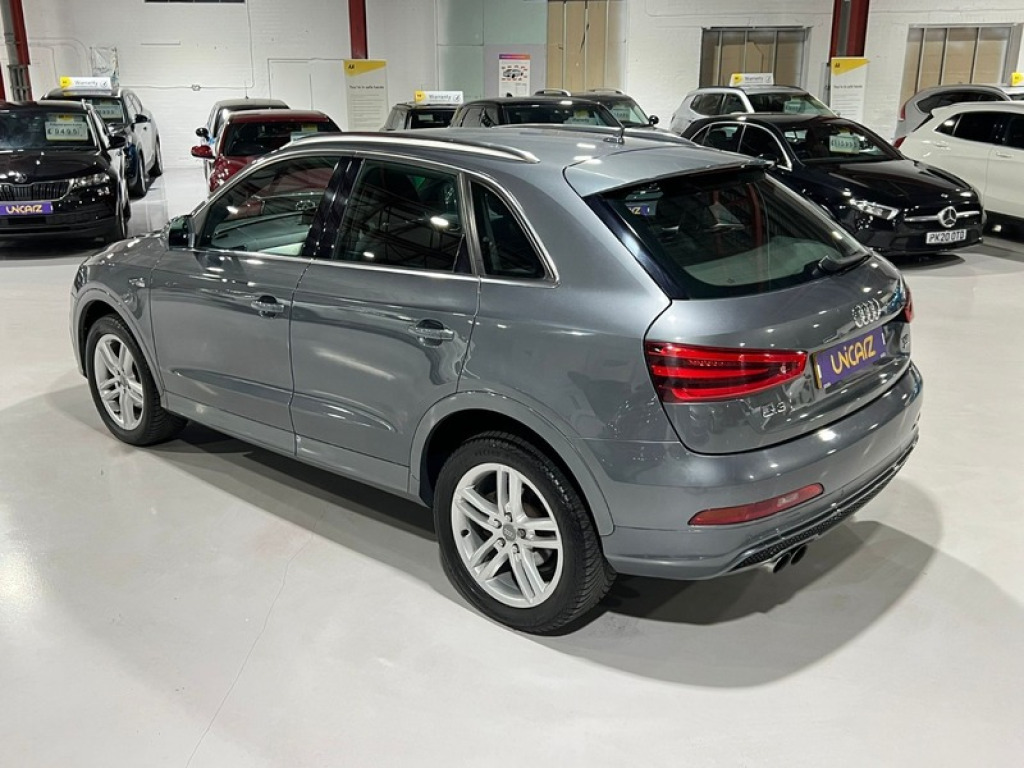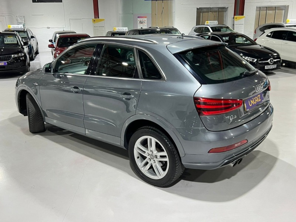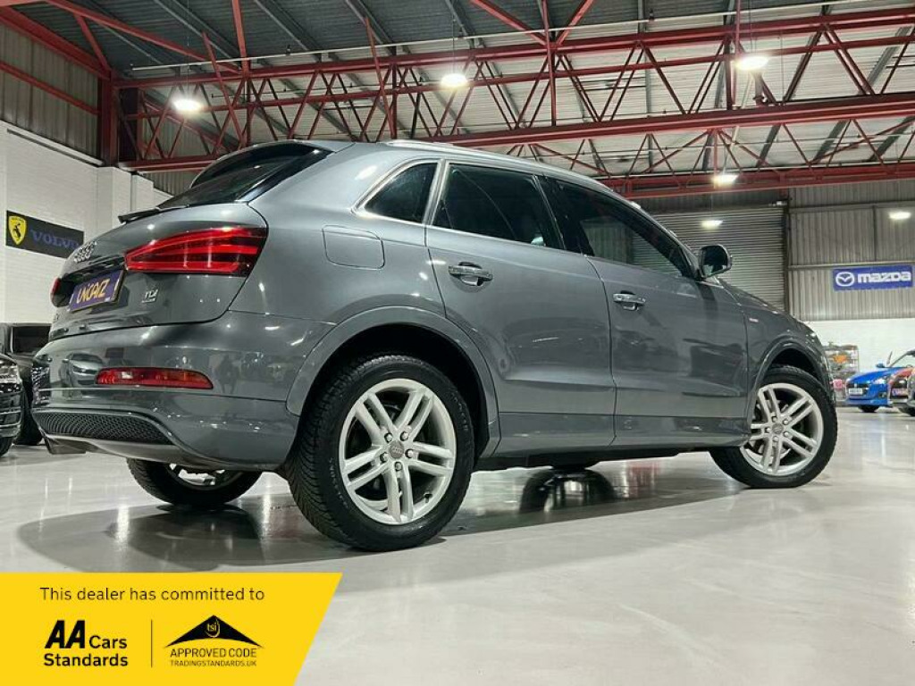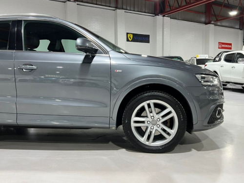 WELCOME TO UNICARZ LTD, WE ARE PLEASED TO OFFER YOU THIS 2014 AUDI Q3 2.0 TDI S-TRONIC S LINE QUATTRO, SERVICE HISTORY, 2KEYS,TIMING BELT AND WATER PUMP REPLACED, 12 MONTHS BASIC ROADSIDE ASSISTANCE, 3 MONTHS STANDARD NATIONWIDE WARRANTY, NAVIGATION SYSTEM, MOT WILL BE JUNE 2026, XENON HEADLIGHTS, LED DAYTIME RUNNING LIGHTS, HALF LEATHER, AIR CONDITIONING, MULTIFUNCTION STEERING WHEEL, CRUISE CONTROL, DRIVES EXCELLENT, PART EXCHANGE WELCOME, FINANCE AVAILABLE 12V Power Socket - Rear Centre Console, 18in Alloy Wheels - 5-Double-Spoke Design, 6.5in Display Screen, ABS, ABS - Anti-Lock Braking System, AMI - Audi Music Interface, ASR - Anti Slip Regulation, Airbags - Driver, Airbags - Front Passenger, Airbags - Front Side, Airbags - Head System, Alarm - Thatcham Category 1, Anti Theft Locking Wheel Bolts, Automatic Wipers with Rain Sensor, Bluetooth, Brake Assist, Brake Lights - LED, Bumpers - Front and Rear - S Line Design, Car Jack, Central Locking, Climate Control, Cloth Headlining in Black, Concert Radio - MP3/CD Player, DAB Digital Radio, Daytime Running Lights, Diffuser Insert and Centre Front Spoiler Lip Painted in Platinum Grey, Door Mirrors - Body Coloured with Integrated LED Indicators, Door Mirrors - Electrically Adjustable and Heated, Door Sill Trims with S Line Logo, Drivers Information System - DIS, Dual-Zone Electronic Climate Control, Dynamic Suspension, EBD - Electronic Brakeforce Distribution, EDL - Electronic Differential Lock, ESP, ESP - Electronic Stability Programme, Efficiency Program in the Drivers Information System - DIS, Electric Windows, Electric Windows - Front and Rear, Electrically Adjustable 4-Way Lumbar Support, Electromechanical Parking Brake, Electromechanical Power Steering, Exhaust Tailpipe - Chrome Plated, First Aid Kit, Fog Lights - Chrome Surrounds, Folding Rear Seats, Folding Storage Compartment in Front Centre Armrest, Front Airbags, Front Centre Armrest - Adjustable, Front Fog Lights, Front Passenger Airbag Deactivation Switch, Front Sports Seats, Front and Rear Floor Mats, Full Paint Finish, Gear Knob - Perforated Leather, Glovebox - Ventilated, Headlights - Automatic Activation, Headlights - Automatic Adjustment, Headlights - Automatic Dynamic Range Control, Headlights - Bi-Xenon Plus, Headlights - Coming-Leaving Home Function, Headlights Washers, Heated Door Mirrors, Heated Windscreen, Heated Windscreen Washer Jets, ISOFIX Child Seat Mounting for Front Passenger, ISOFIX Child Seat Preparation for Rear Seats with Top Tether, Inlays - Matt Brushed Aluminium, LED Daytime Running Lights, LED Lights, LED Rear Indicators, LED Rear Lights, Mobile Telephone Preparation - Bluetooth Interface, Parking Assistance, Power Assisted Steering, Preparation for SD Card-Based Navigation System, Radiator Grille - with Vertical Chrome Bars, Radio, Rain Sensor, Rear Parking Sensors, Rear air vents in rear centre console, Remote Central Locking with 2 Fold Away Keys, Reversible Luggage Compartment Floor, Roof Rails - Aluminium, S Line Badges on Front Wings, S Line Body Styling, SDHC Card Reader x2, Safety Belts, Seat Belt Reminder, Seats - Drivers Manual Height Adjustment, Seats - Front Sports - S Line Embossed, Seats - Sports, Side Impact Airbags, Smoking Package, Space Saver Spare Wheel, Spare Wheel, Speakers x8, Split-Folding Rear Seats, Sports Seats, Stainless Steel Loading Sill Protector, Steering Wheel - 3-Spoke Leather Trimmed Sports, Steering Wheel - Gear-Shift Paddles, Steering Wheel - Height and Reach Adjustable, Steering Wheel - Multi-function, Sunband for Windscreen, TP Memo - Automatically Saves Traffic News, Thatcham Category 1 Immobiliser, Tool Kit, Towbar Preparation, Traction Control, Tyre Pressure Monitoring System, Voice Control - Telephone, Warning Triangle, Washer Fluid Level Indicator, Window Surrounds - Aluminium