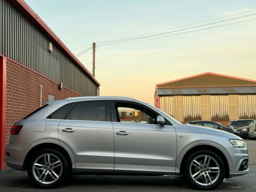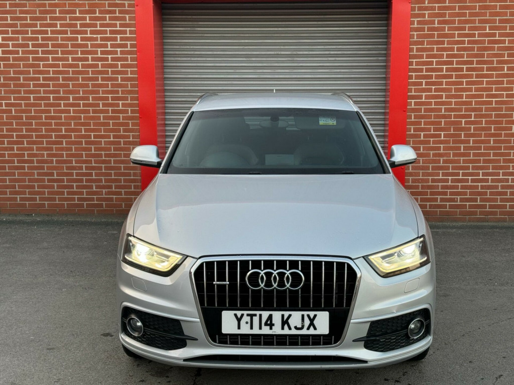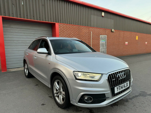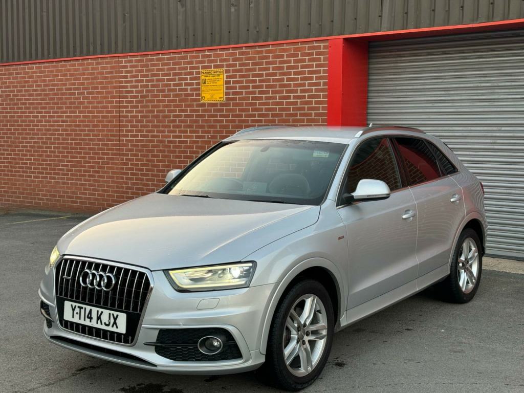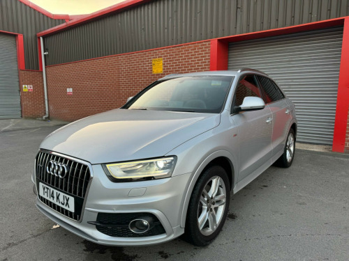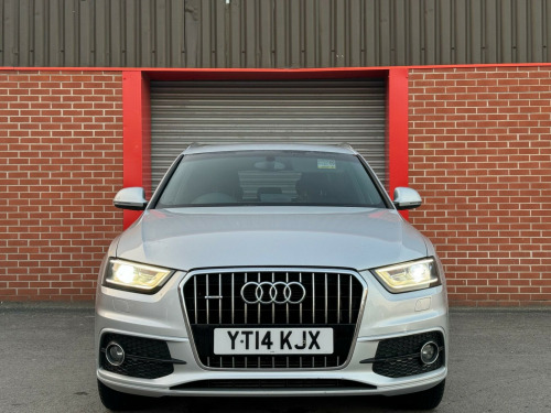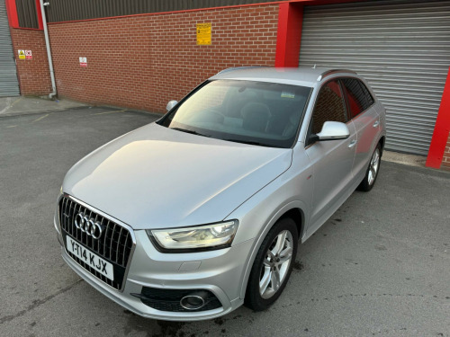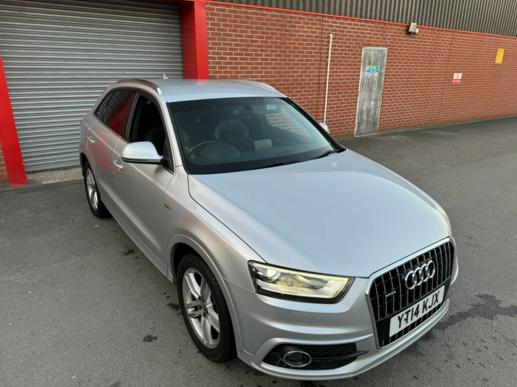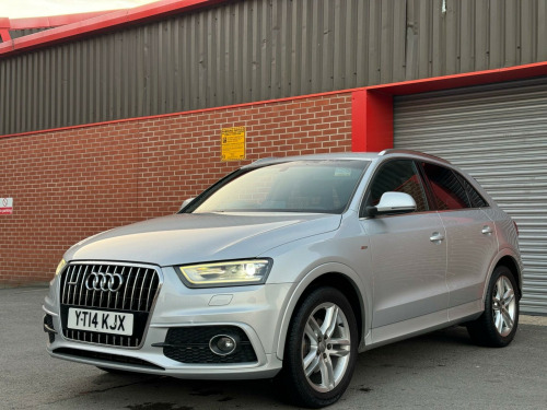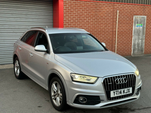Unbeatable deals at affordable prices buy with confidence.very good condition for its age come with 12 months mot fresh service half leather interior sat nav This Audi Q3 TDI S line from 2014 boasts a clear vehicle history, offering you peace of mind. As a 2.0 litre diesel model with Four Wheel Drive, this S line trim vehicle combines efficiency with capability. Inside, you'll find comfort and convenience with Dual Zone Electronic Climate Control and a Bluetooth interface for mobile telephone preparation. Driving is made easier and safer with automatic activation of Bi Xenon Plus headlights and rear parking sensors.The combination of its advanced features and strong performance makes this Audi Q3 a compelling option, many more extras!!!!, v power socket - rear centre console, 18in alloy wheels - 5-double-spoke design, 6.5in display screen, abs - anti-lock braking system, ami - audi music interface, asr - anti slip regulation, airbags - driver, airbags - front passenger, airbags - front side, airbags - head system, alarm - thatcham category 1, anti theft locking wheel bolts, automatic wipers with rain sensor, brake lights - led, bumpers - front and rear - s line design, car jack, cloth headlining in black, concert radio - mp3/cd player, dab digital radio, diffuser insert and centre front spoiler lip painted in platinum grey, door mirrors - body coloured with integrated led indicators, door mirrors - electrically adjustable and heated, door sill trims with s line logo, drivers information system - dis, dual-zone electronic climate control, dynamic suspension, ebd - electronic brakeforce distribution, edl - electronic differential lock, esp - electronic stability programme, efficiency program in the drivers information system - dis, electric windows - front and rear, electrically adjustable 4-way lumbar support, electromechanical parking brake, electromechanical power steering, exhaust tailpipe - chrome plated, first aid kit, fog lights - chrome surrounds, folding storage compartment in front centre armrest, front centre armrest - adjustable, front fog lights, front passenger airbag deactivation switch, front sports seats, front and rear floor mats, full paint finish, gear knob - perforated leather, glovebox - ventilated, headlights - automatic activation, headlights - automatic adjustment, headlights - automatic dynamic range control, headlights - bi-xenon plus, headlights - coming-leaving home function, headlights washers, heated windscreen washer jets, isofix child seat mounting for front passenger, isofix child seat preparation for rear seats with top tether, inlays - matt brushed aluminium, led daytime running lights, led rear indicators, led rear lights, mobile telephone preparation - bluetooth interface, preparation for sd card-based navigation system, radiator grille - with vertical chrome bars, rear parking sensors, rear air vents in rear centre console, remote central locking with 2 fold away keys, reversible luggage compartment floor, roof rails - aluminium, s line badges on front wings, s line body styling, sdhc card reader x2, seat belt reminder, seats - drivers manual height adjustment, seats - front sports - s line embossed, seats - sports, smoking package, space saver spare wheel, speakers x8, split-folding rear seats, stainless steel loading sill protector, steering wheel - 3-spoke leather trimmed sports, steering wheel - gear-shift paddles, steering wheel - height and reach adjustable, steering wheel - multi-function, sunband for windscreen, tp memo - automatically saves traffic news, thatcham category 1 immobiliser, tool kit, towbar preparation, tyre pressure monitoring system, voice control - telephone, warning triangle, washer fluid level indicator, window surrounds - aluminium