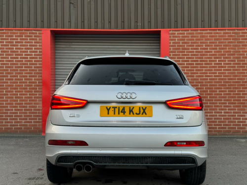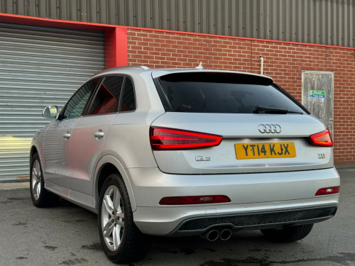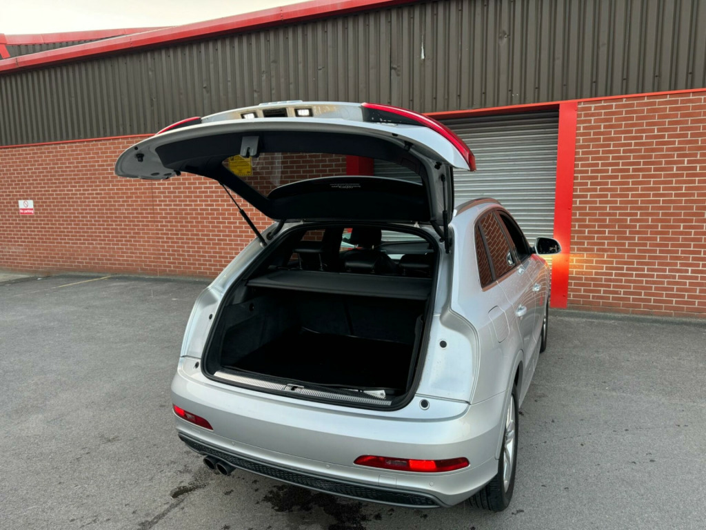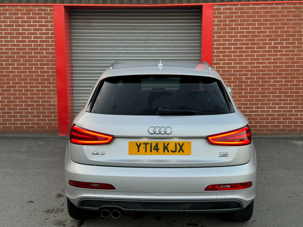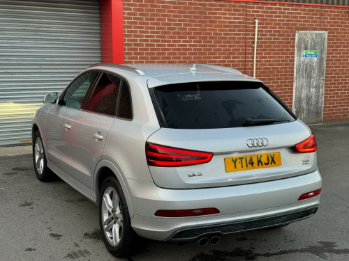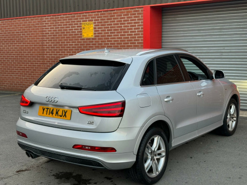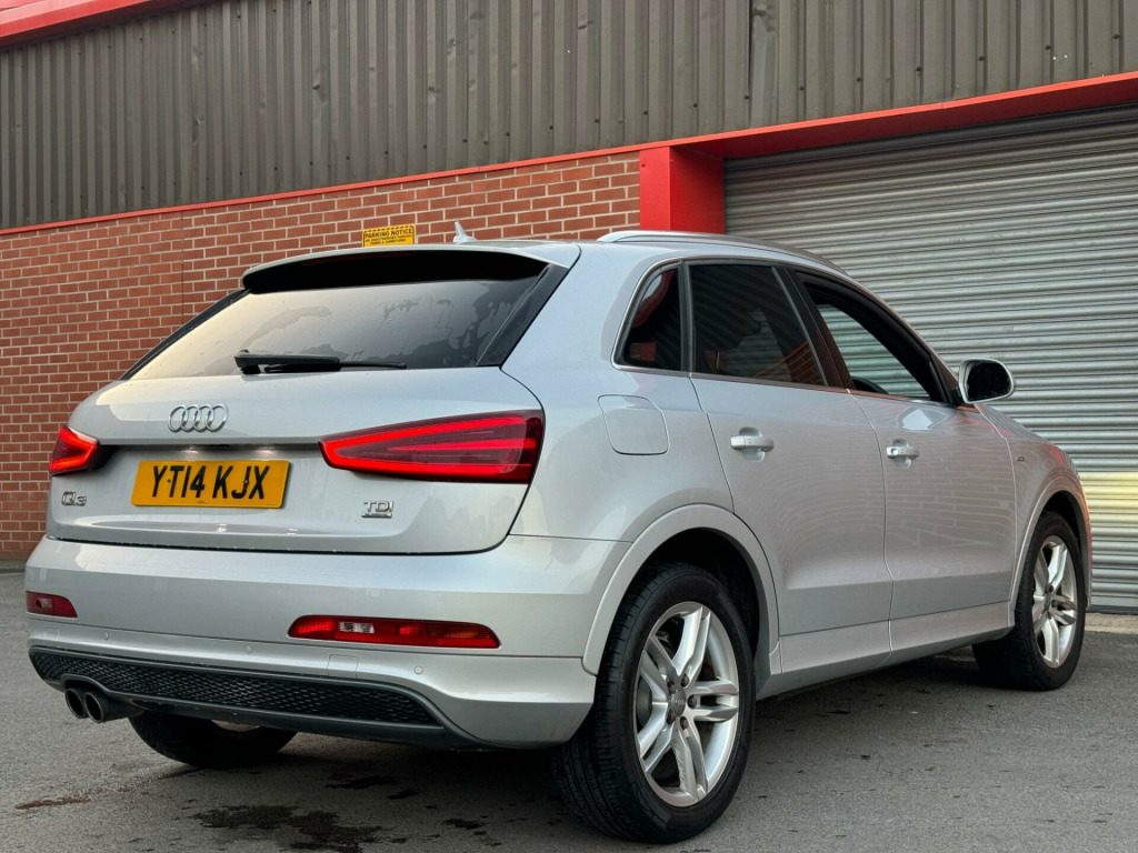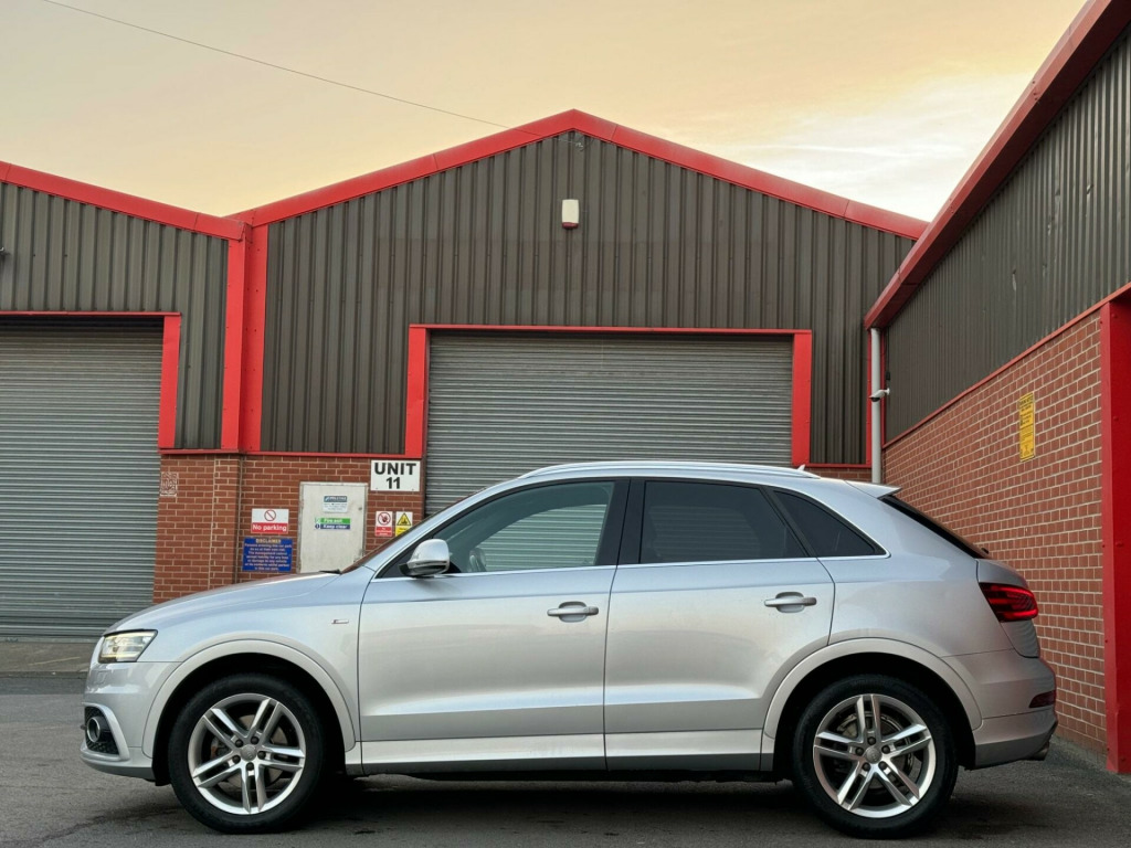 Unbeatable deals at affordable prices buy with confidence.very good condition for its age come with 12 months mot fresh service half leather interior sat nav This Audi Q3 TDI S line from 2014 boasts a clear vehicle history, offering you peace of mind. As a 2.0 litre diesel model with Four Wheel Drive, this S line trim vehicle combines efficiency with capability. Inside, you'll find comfort and convenience with Dual Zone Electronic Climate Control and a Bluetooth interface for mobile telephone preparation. Driving is made easier and safer with automatic activation of Bi Xenon Plus headlights and rear parking sensors.The combination of its advanced features and strong performance makes this Audi Q3 a compelling option, many more extras!!!!, v power socket - rear centre console, 18in alloy wheels - 5-double-spoke design, 6.5in display screen, abs - anti-lock braking system, ami - audi music interface, asr - anti slip regulation, airbags - driver, airbags - front passenger, airbags - front side, airbags - head system, alarm - thatcham category 1, anti theft locking wheel bolts, automatic wipers with rain sensor, brake lights - led, bumpers - front and rear - s line design, car jack, cloth headlining in black, concert radio - mp3/cd player, dab digital radio, diffuser insert and centre front spoiler lip painted in platinum grey, door mirrors - body coloured with integrated led indicators, door mirrors - electrically adjustable and heated, door sill trims with s line logo, drivers information system - dis, dual-zone electronic climate control, dynamic suspension, ebd - electronic brakeforce distribution, edl - electronic differential lock, esp - electronic stability programme, efficiency program in the drivers information system - dis, electric windows - front and rear, electrically adjustable 4-way lumbar support, electromechanical parking brake, electromechanical power steering, exhaust tailpipe - chrome plated, first aid kit, fog lights - chrome surrounds, folding storage compartment in front centre armrest, front centre armrest - adjustable, front fog lights, front passenger airbag deactivation switch, front sports seats, front and rear floor mats, full paint finish, gear knob - perforated leather, glovebox - ventilated, headlights - automatic activation, headlights - automatic adjustment, headlights - automatic dynamic range control, headlights - bi-xenon plus, headlights - coming-leaving home function, headlights washers, heated windscreen washer jets, isofix child seat mounting for front passenger, isofix child seat preparation for rear seats with top tether, inlays - matt brushed aluminium, led daytime running lights, led rear indicators, led rear lights, mobile telephone preparation - bluetooth interface, preparation for sd card-based navigation system, radiator grille - with vertical chrome bars, rear parking sensors, rear air vents in rear centre console, remote central locking with 2 fold away keys, reversible luggage compartment floor, roof rails - aluminium, s line badges on front wings, s line body styling, sdhc card reader x2, seat belt reminder, seats - drivers manual height adjustment, seats - front sports - s line embossed, seats - sports, smoking package, space saver spare wheel, speakers x8, split-folding rear seats, stainless steel loading sill protector, steering wheel - 3-spoke leather trimmed sports, steering wheel - gear-shift paddles, steering wheel - height and reach adjustable, steering wheel - multi-function, sunband for windscreen, tp memo - automatically saves traffic news, thatcham category 1 immobiliser, tool kit, towbar preparation, tyre pressure monitoring system, voice control - telephone, warning triangle, washer fluid level indicator, window surrounds - aluminium