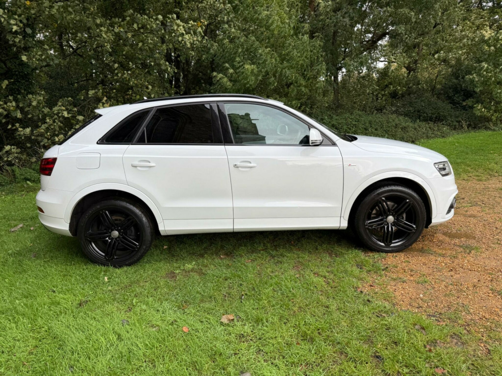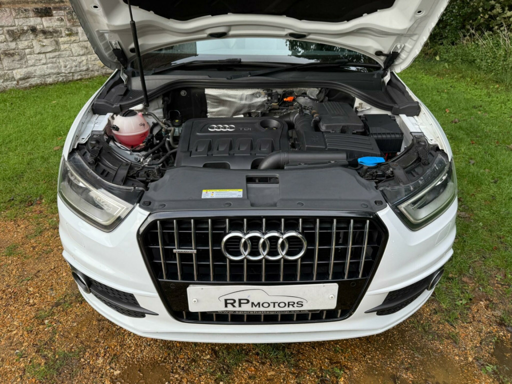 Offered for sale is a very well looked after Q3 2.0 TDI S Line AutomaticThis car has a full up to date service history and a new 12 month MOT with no advisories. It also has 2 keys.Very low running costs- these have excellent MPG figures.Specification includes [art leather S Line interior with aluminium trim, heated front seats, multimedia system including DAB, media input and Bluetooth connectivity with media streaming, front and rear parking sensors, exterior black pack, 19 inch alloy wheels, multifunction steering wheel with paddle-shift, dual zone climate control, cruise control, automatic lights and wipers etcHere at RP Motors we are a family run, independent and trusted used car retailer in Netley, Southampton. We have always taken pride in offering a zero pressure approach, proven by our 5 star AutoTrader dealer rating. All of our vehicles have a full or mostly full service history, minimum of 9 months MOT and a 72 point check, providing our customers with the highest quality used cars. We have a team of in-house technicians allowing us to carry out our own mechanical preparation and remedial work. FOR YOUR PEACE OF MIND ALL OUR CARS COME WARRANTIED, MOT'ed, HPi'ed. PART EXCHANGE WELCOME *** NATIONWIDE DELIVERY AVAILABLE ***Viewings by appointment only, we are open 7 days a week.RP MOTORSGRANGE ROADNETLEYSOUTHAMPTONSO31 8GDFind us at: WWW.RPMOTORSSOUTHAMPTON.CO.UKThis car is presented in beautiful condition throughout, no damage to any of the alloy wheels, excellent tyre condition all round v power socket - rear centre console, 18in alloy wheels - 5-double-spoke design, 6.5in display screen, abs - anti-lock braking system, ami - audi music interface, asr - anti slip regulation, airbags - driver, airbags - front passenger, airbags - front side, airbags - head system, alarm - thatcham category 1, anti theft locking wheel bolts, automatic wipers with rain sensor, brake lights - led, bumpers - front and rear - s line design, car jack, cloth headlining in black, concert radio - mp3/cd player, dab digital radio, diffuser insert and centre front spoiler lip painted in platinum grey, door mirrors - body coloured with integrated led indicators, door mirrors - electrically adjustable and heated, door sill trims with s line logo, drivers information system - dis, dual-zone electronic climate control, dynamic suspension, ebd - electronic brakeforce distribution, edl - electronic differential lock, esp - electronic stability programme, efficiency program in the drivers information system - dis, electric windows - front and rear, electrically adjustable 4-way lumbar support, electromechanical parking brake, electromechanical power steering, exhaust tailpipe - chrome plated, first aid kit, fog lights - chrome surrounds, folding storage compartment in front centre armrest, front centre armrest - adjustable, front fog lights, front passenger airbag deactivation switch, front sports seats, front and rear floor mats, full paint finish, gear knob - perforated leather, glovebox - ventilated, headlights - automatic activation, headlights - automatic adjustment, headlights - automatic dynamic range control, headlights - bi-xenon plus, headlights - coming-leaving home function, headlights washers, heated windscreen washer jets, isofix child seat mounting for front passenger, isofix child seat preparation for rear seats with top tether, inlays - matt brushed aluminium, led daytime running lights, led rear indicators, led rear lights, mobile telephone preparation - bluetooth interface, preparation for sd card-based navigation system, radiator grille - with vertical chrome bars, rear parking sensors, rear air vents in rear centre console, remote central locking with 2 fold away keys, reversible luggage compartment floor, roof rails - aluminium, s line badges on front wings, s line body styling, sdhc card reader x2, seat belt reminder, seats - drivers manual height adjustment, seats - front sports - s line embossed, seats - sports, smoking package, space saver spare wheel, speakers x8, split-folding rear seats, stainless steel loading sill protector, steering wheel - 3-spoke leather trimmed sports, steering wheel - gear-shift paddles, steering wheel - height and reach adjustable, steering wheel - multi-function, sunband for windscreen, tp memo - automatically saves traffic news, thatcham category 1 immobiliser, tool kit, towbar preparation, tyre pressure monitoring system, voice control - telephone, warning triangle, washer fluid level indicator, window surrounds - aluminium, cruise control, audi parking system plus with park assist, audi hill hold assist, rear side airbags, privacy glass, heated front seats