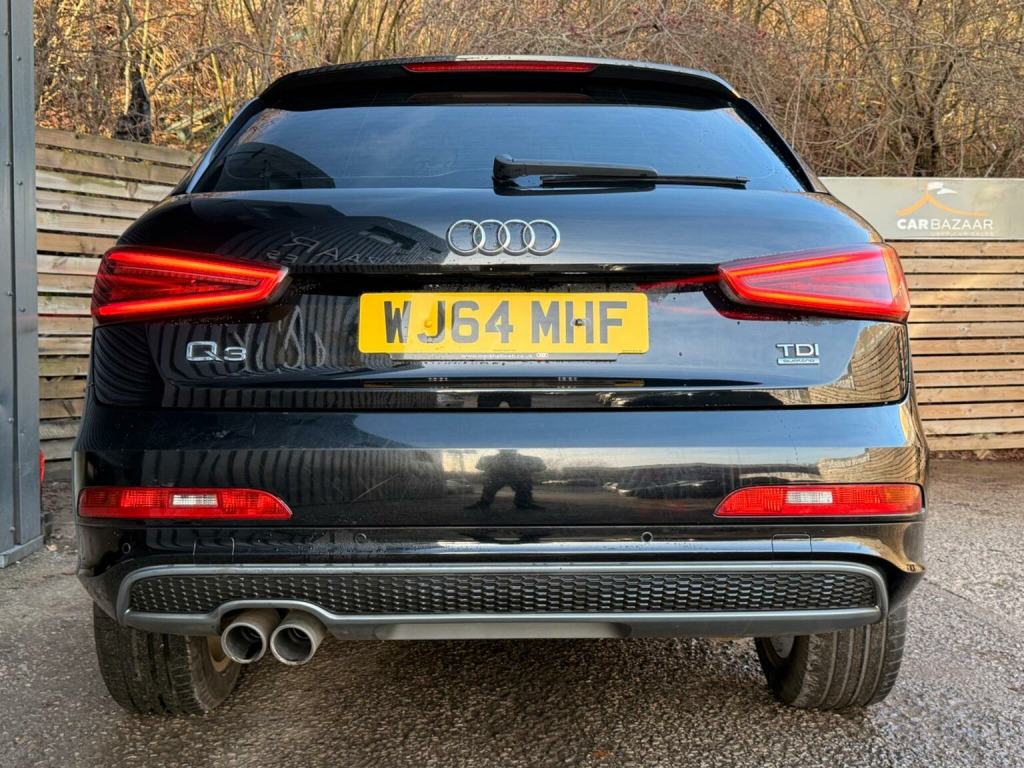 Welcome to Car Bazaar of Sheffield. Explore the perfect blend of stylish looks with the Audi Q3 2.0 TDI S line S Tronic quattro available at Car Bazaar! This vehicle comes with some fantastic features which include, Rear Parking Sensors, Electric Handbrake, Auto Transmission, Sat Nav, Auto Wipers, Auto Lights, Bluetooth, DAB, Dual Climate Control, Voice Commands, Paddle Shift, Extensive Service History, Please call for further details. , ________________________________________, Warranty: This exceptional vehicle comes with a 3-month complimentary warranty from Car Bazaar, with an option for you to extend to 6,9,12,24 months. ________________________________________, Flexible Finance Options: Take advantage of our competitive low-rate finance deals, including zero-deposit options. With access to multiple trusted lenders, we can tailor a finance plan that suits your budget and helps make owning your dream car a reality. ________________________________________, Appointment Only Basis: At Car Bazaar, we prioritise your convenience. We operate on an appointment-only basis to provide personalised attention and a dedicated service experience. . ________________________________________, Free Local Delivery: Enjoy complimentary delivery within a 10-mile radius, with affordable nationwide delivery options also available. ________________________________________, MOT and Service Assurance: If the vehicle has less than 6 months remaining on its MOT, well provide a fresh 12-month MOT. If the car hasnt been serviced in the last 6 months, well ensure its serviced before delivery for your peace of mind. ________________________________________, Reservation: Call today and reserve this vehicle for only £99 which is fully refundable. , ________________________________________, Contact Us: Visit our website at www.thecarbazaar.co.uk to explore our extensive inventory or call us on 0114 399 7040. , ________________________________________